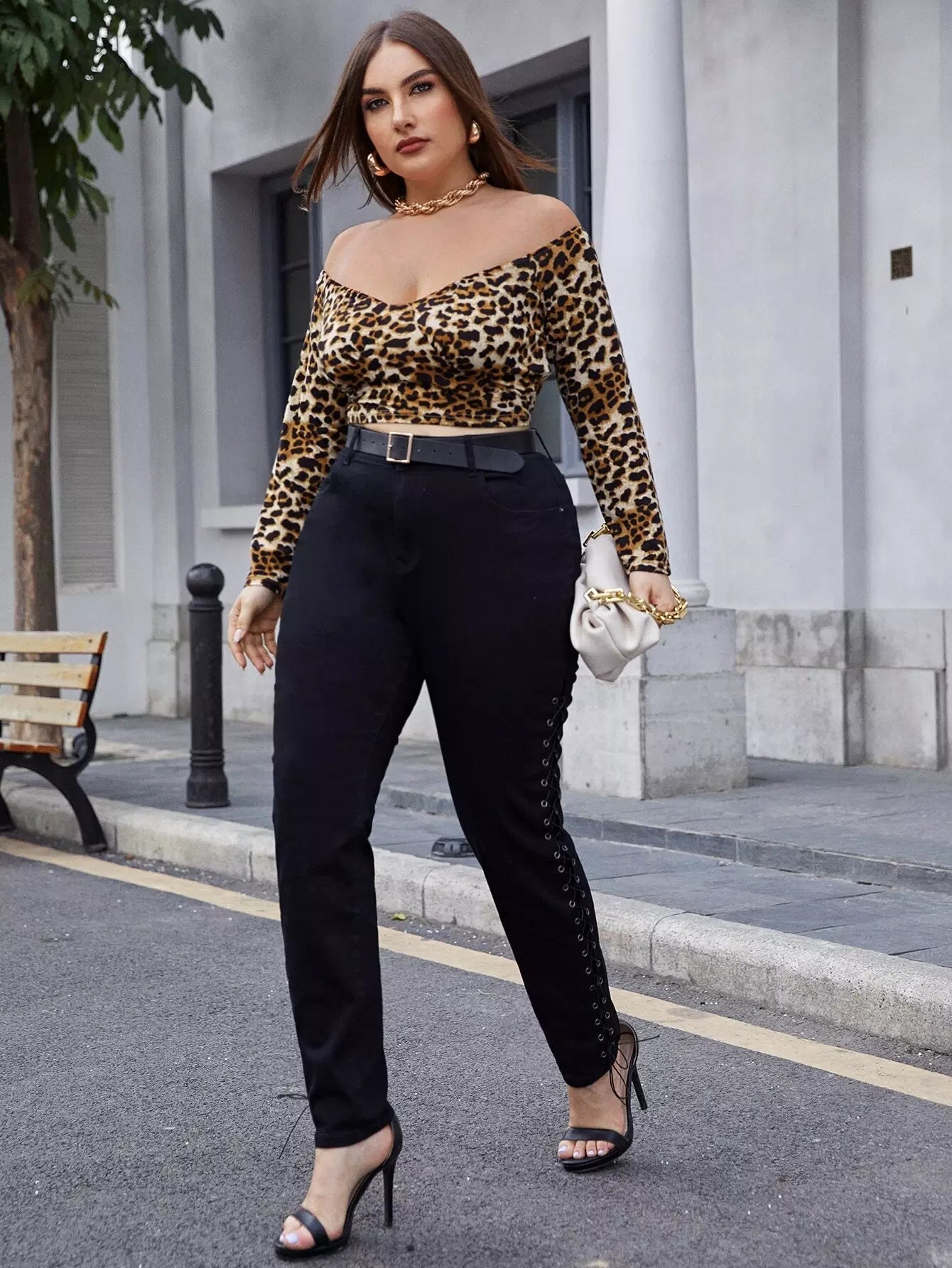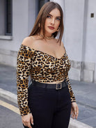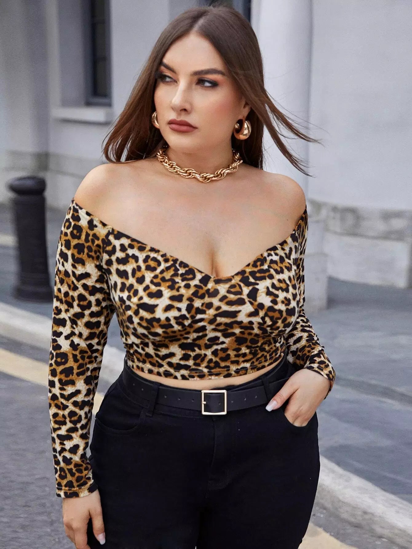 بلوزة قصيرة بدون أكتاف بنقشة جلد النمر الزائد