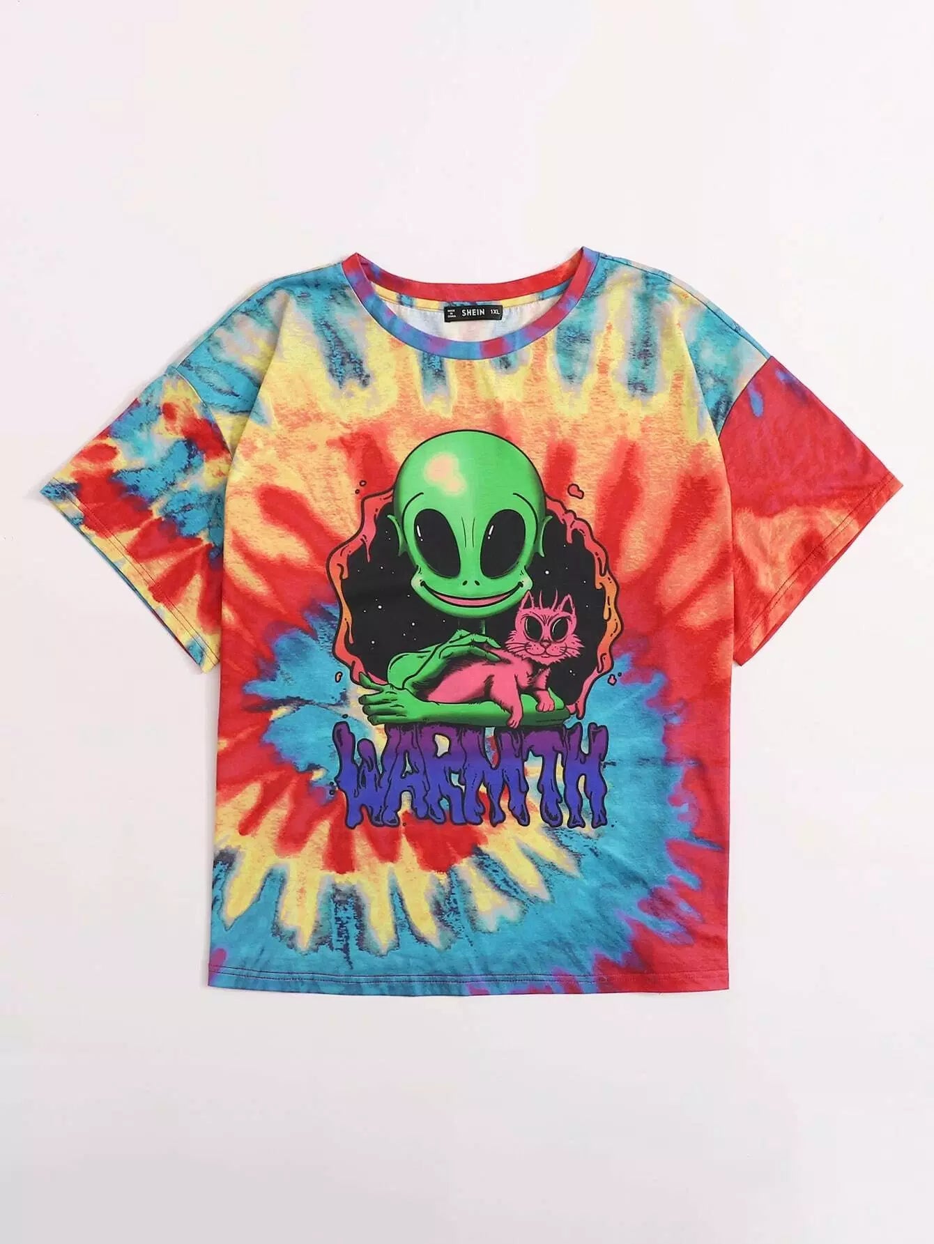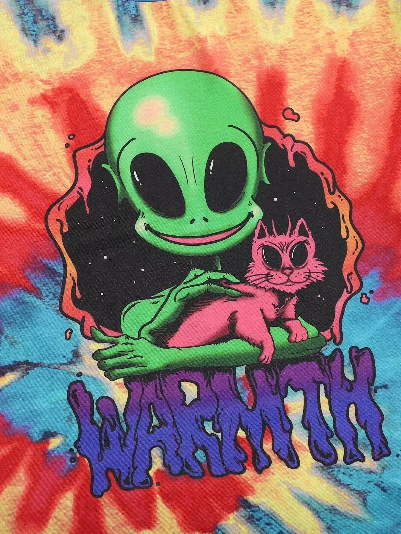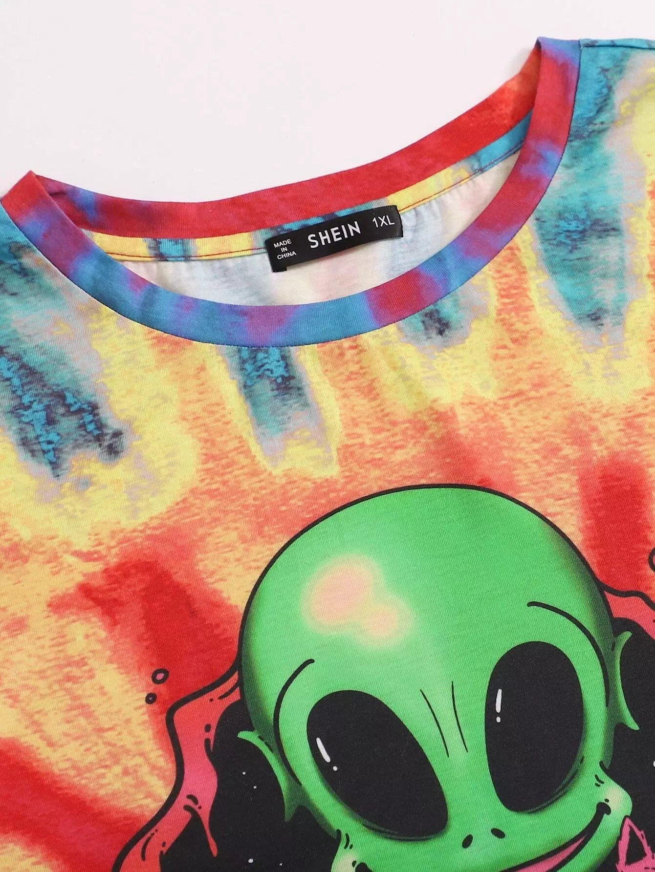 بلوزة بطبعة حروف وكائنات فضائية مطبوع عليها حروف ونقشة كائنات فضائية