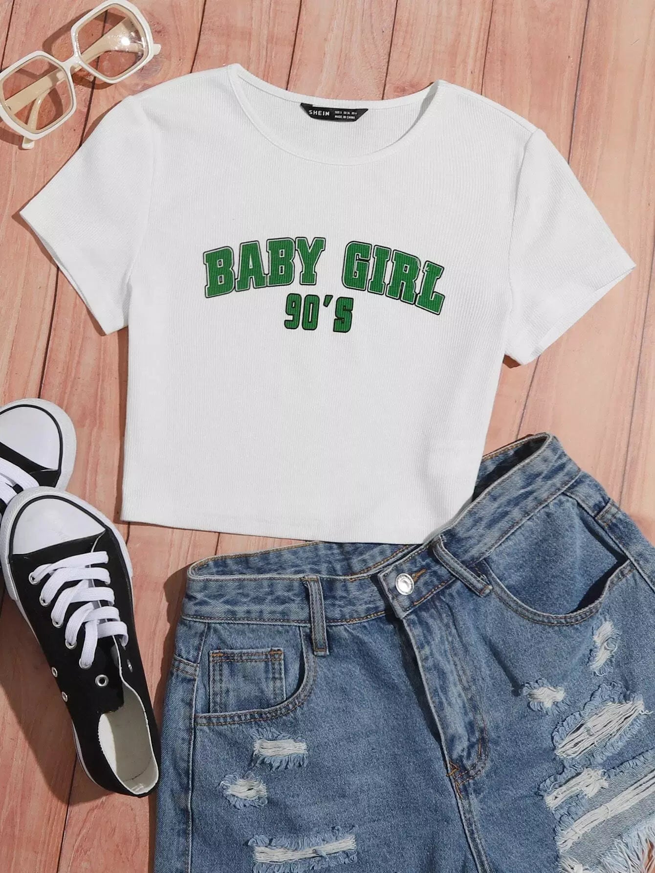 تي شيرت قصير قصير برسومات على شكل حرف زائد