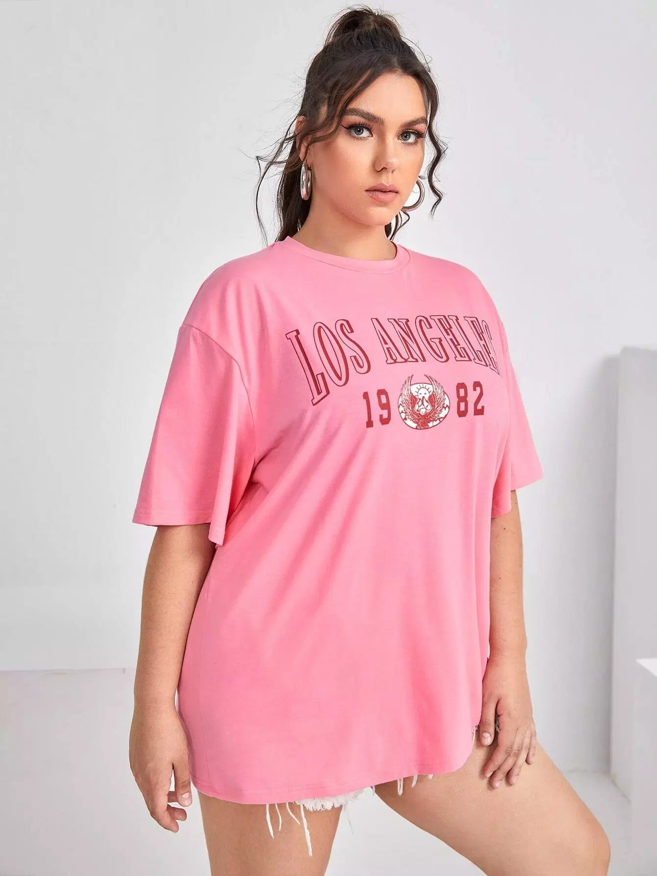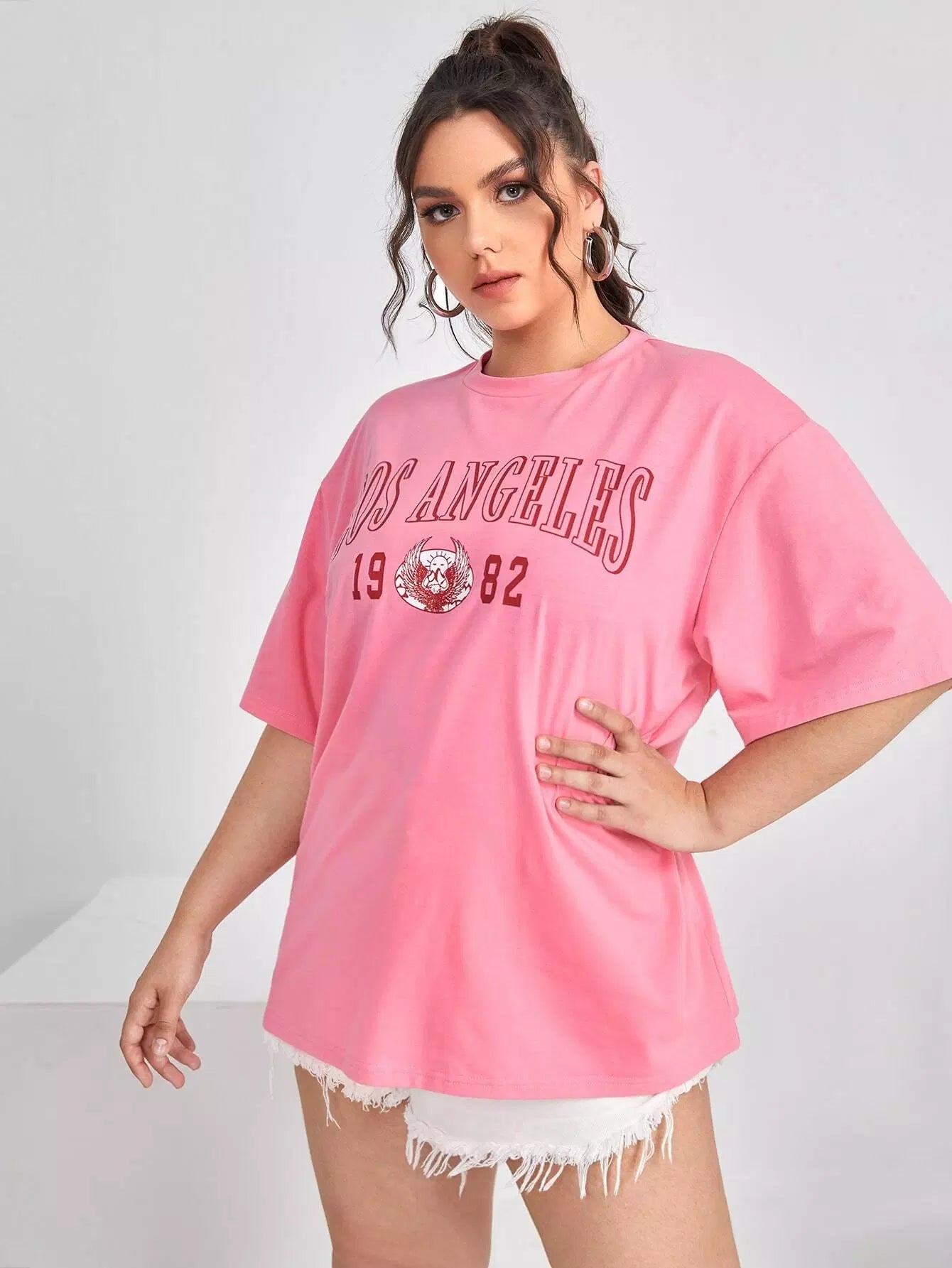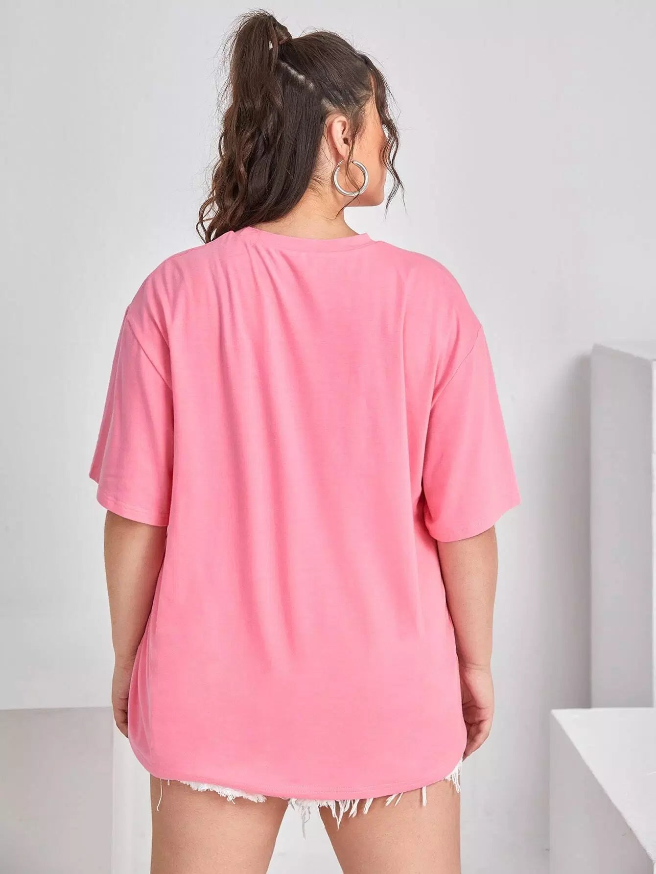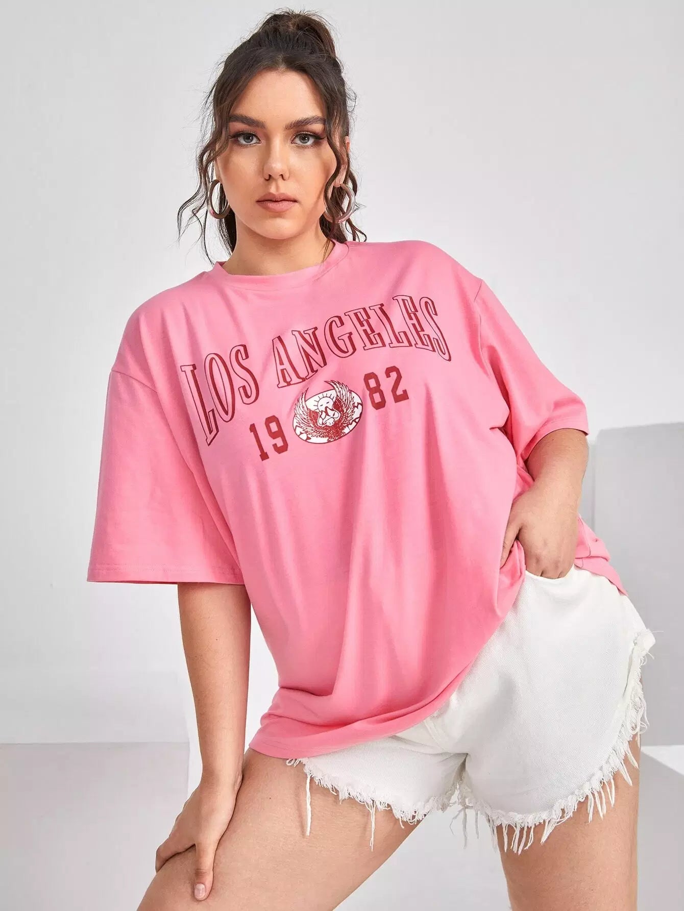 تي شيرت منسدل الكتف برسومات على شكل حرف زائد