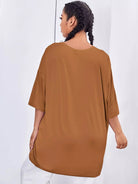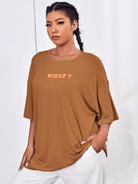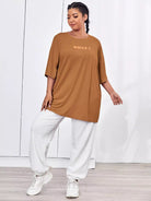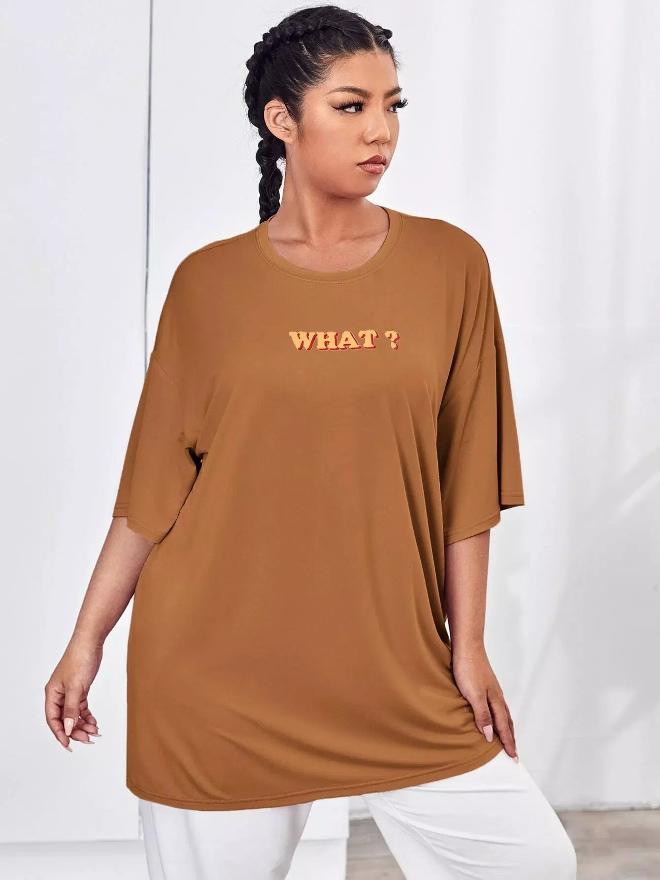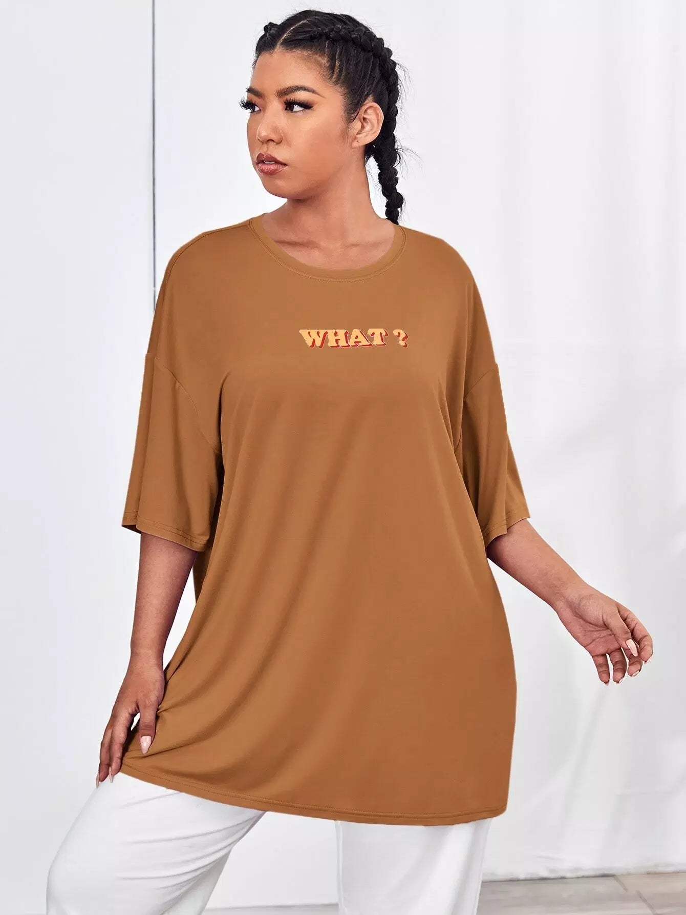 تي شيرت منسدل الكتف برسومات على شكل حرف زائد
