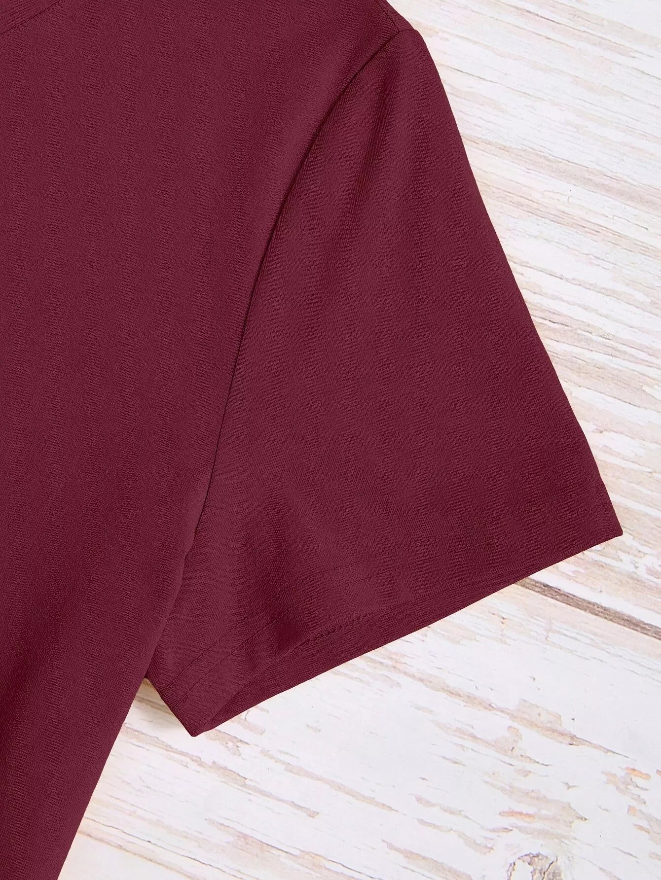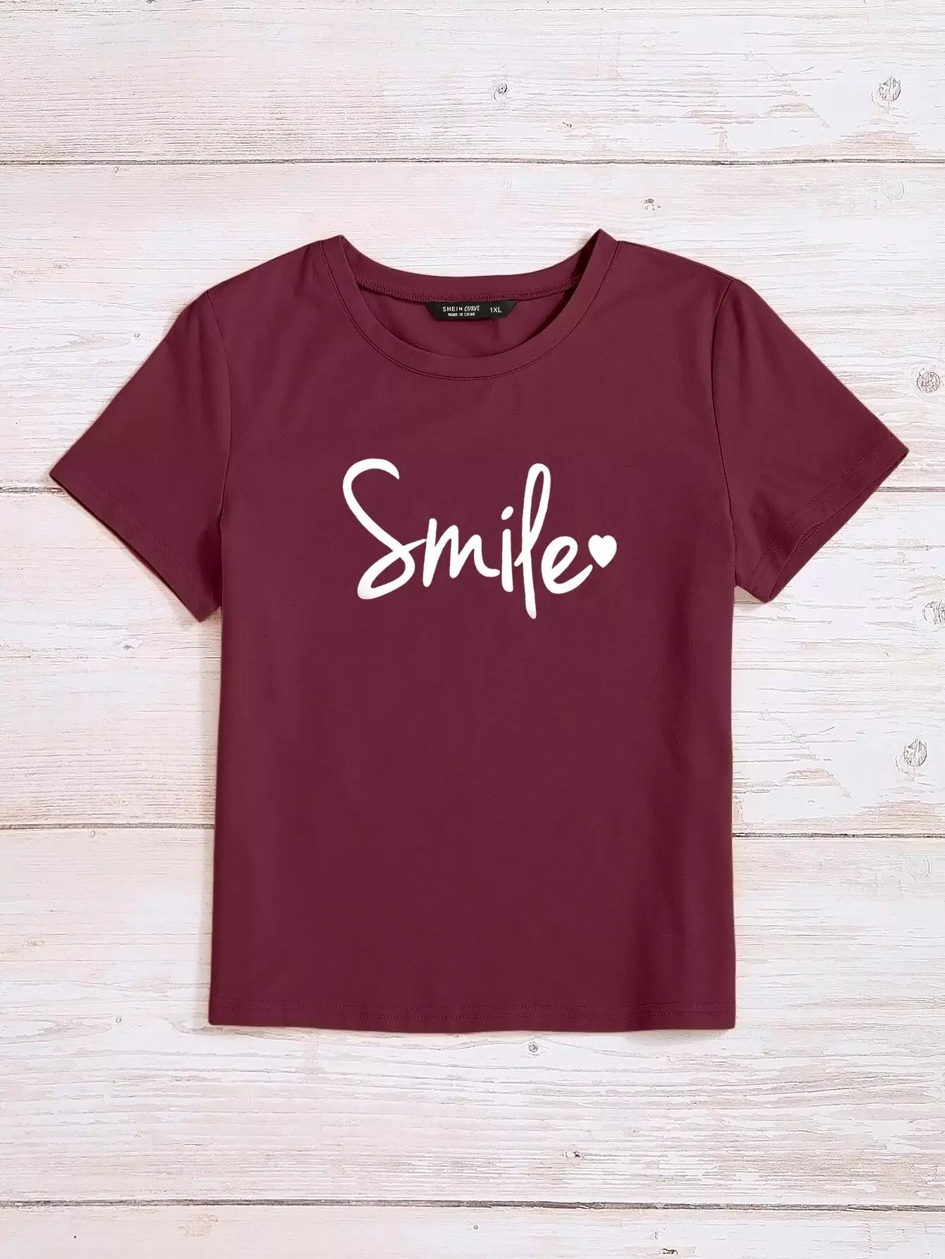 تي شيرت برقبة دائرية مطبوع عليها حروف وقلب