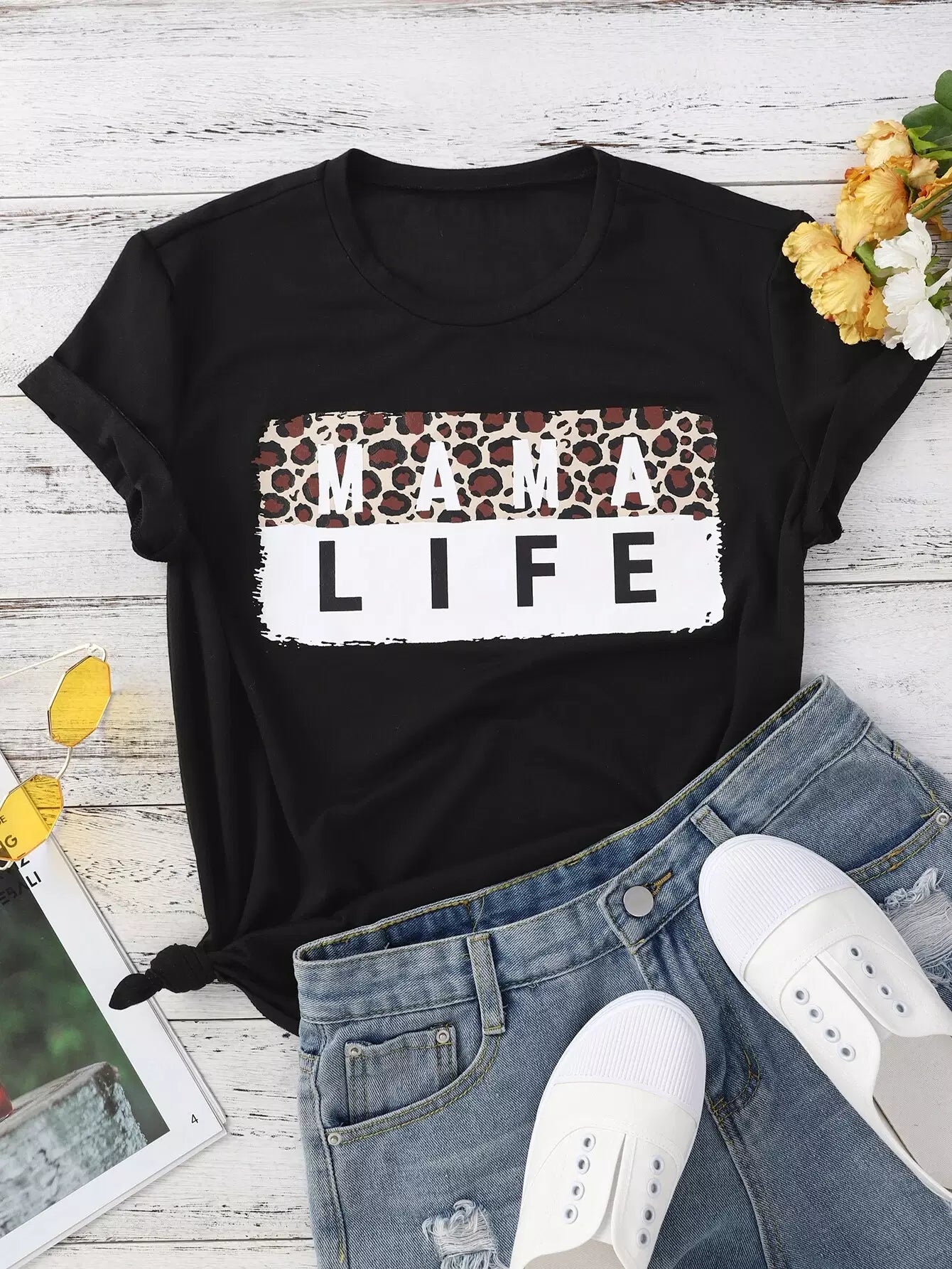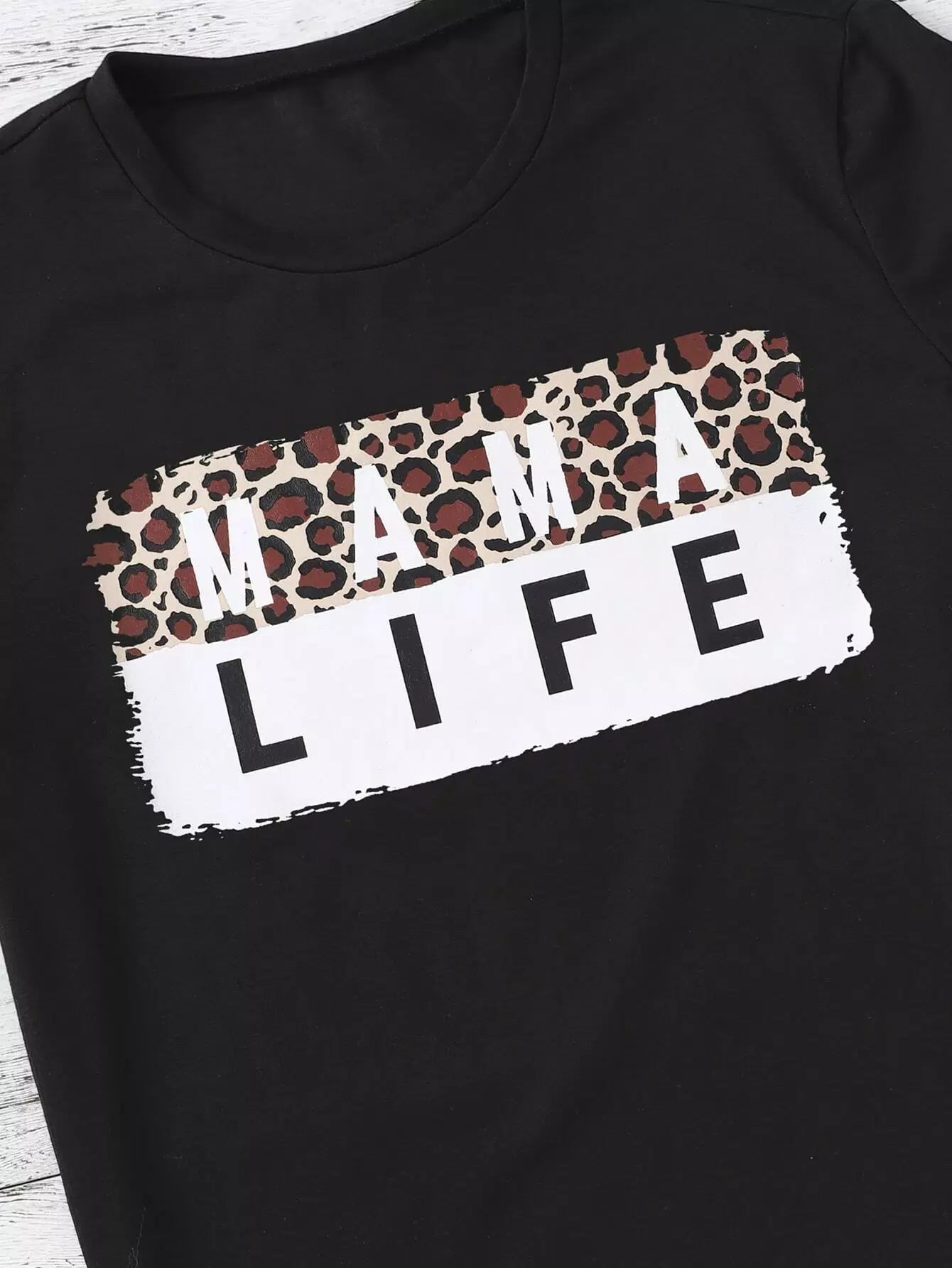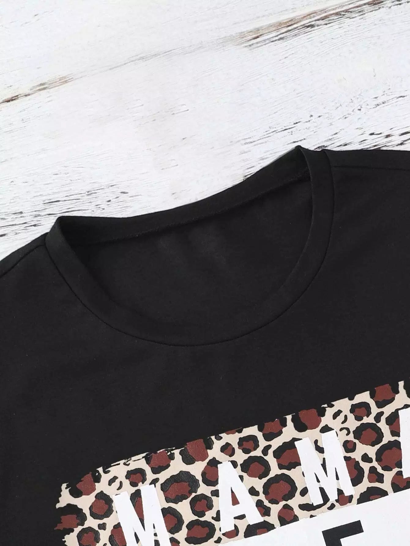 تي شيرت برقبة مستديرة مطبوع عليها حروف ونمر