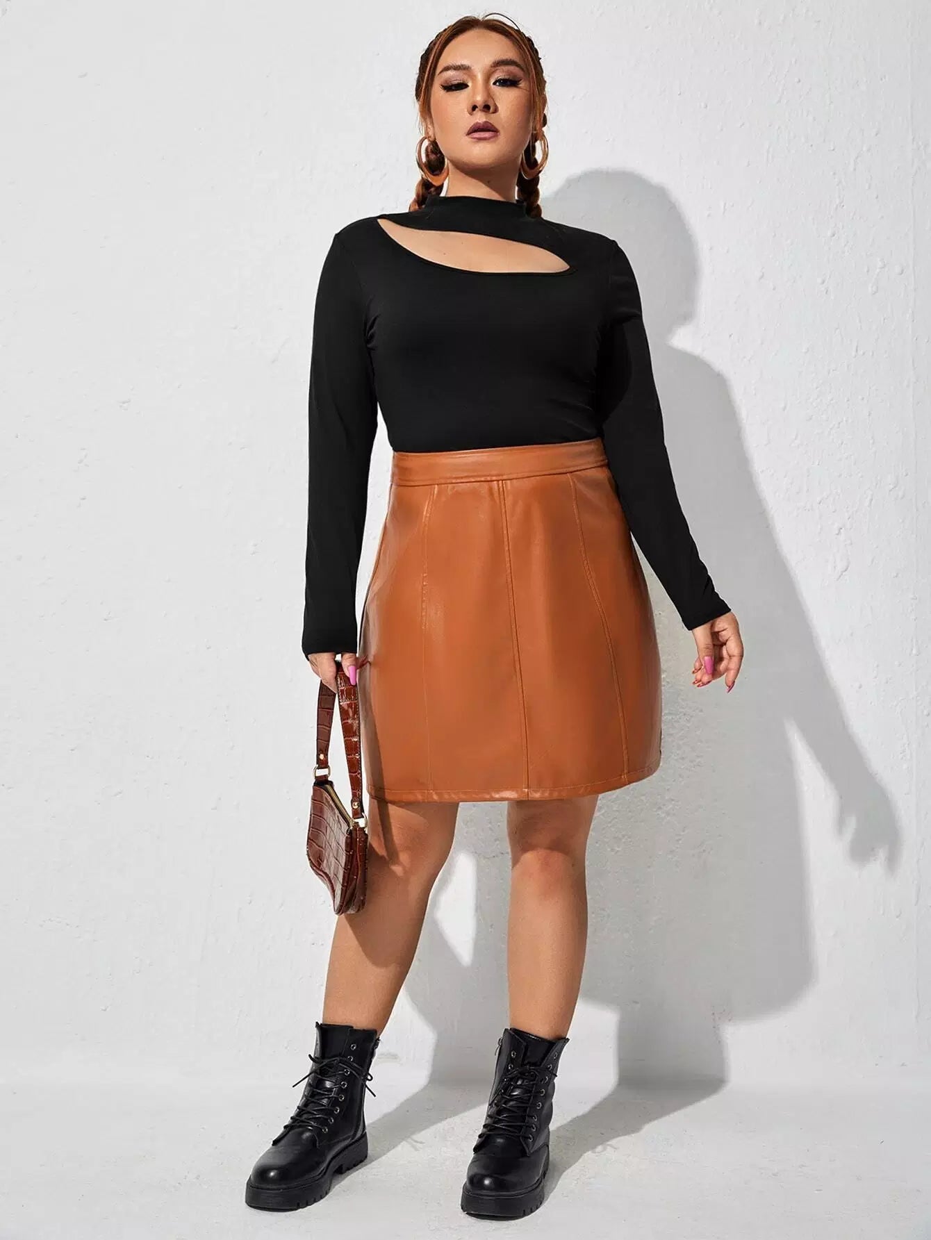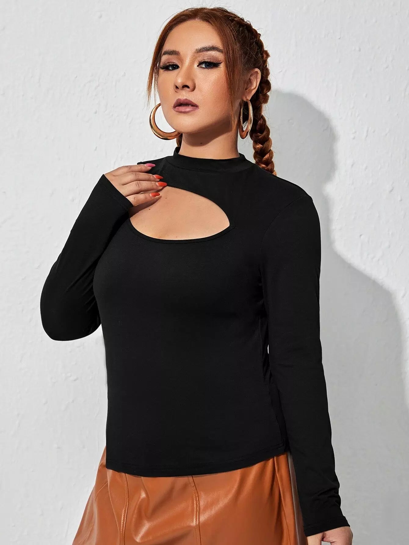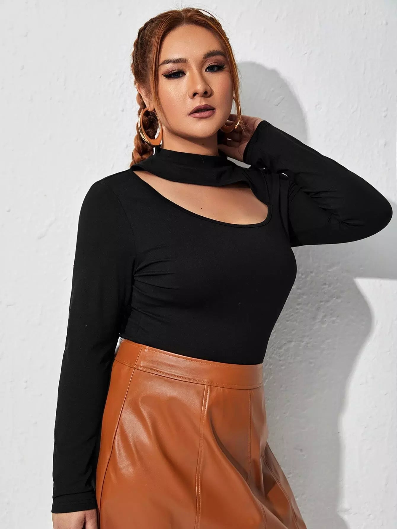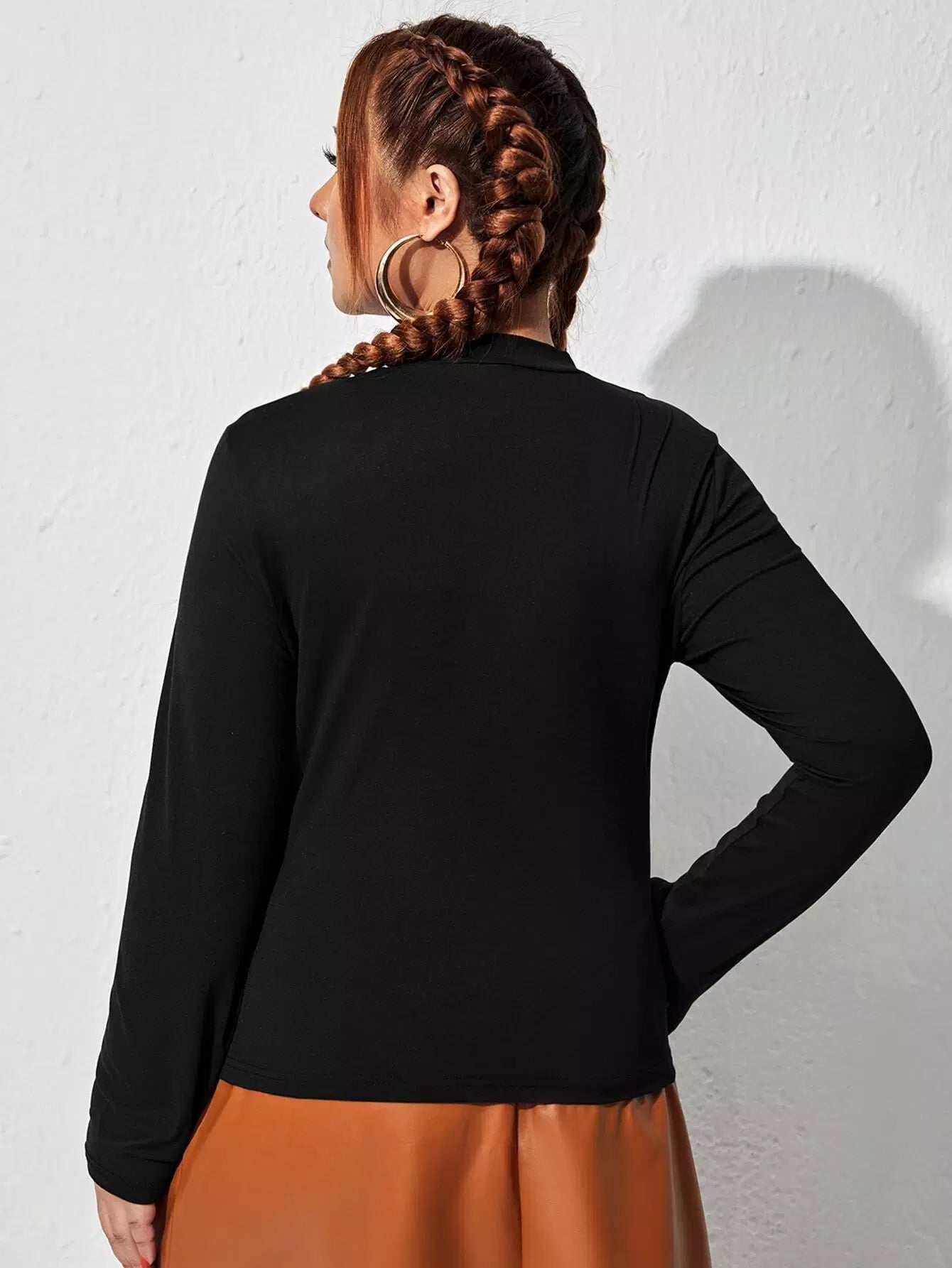 تي شيرت بياقة بقصّة بفتحة من الأمام بقصّة برقبة زائد
