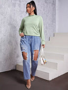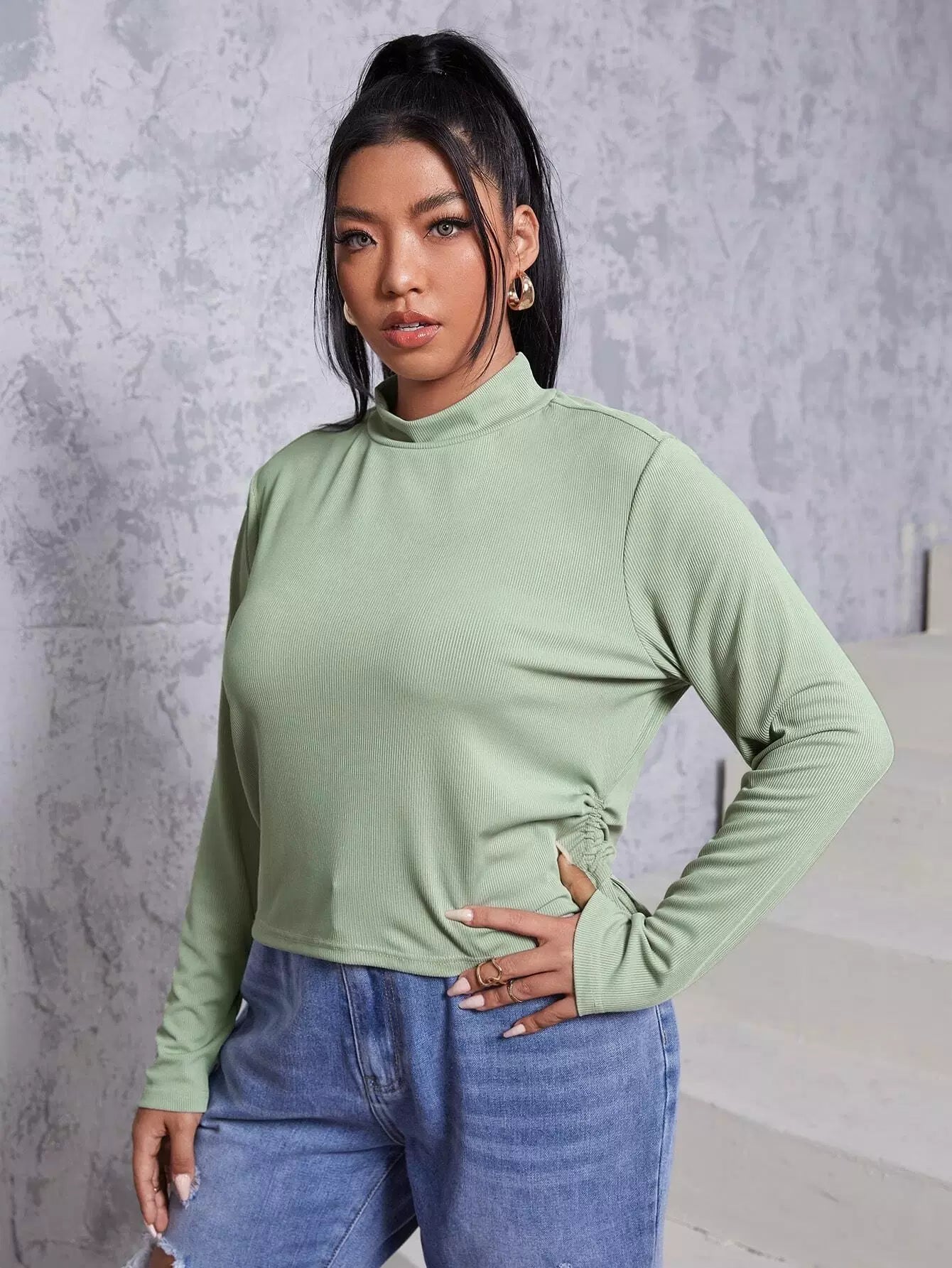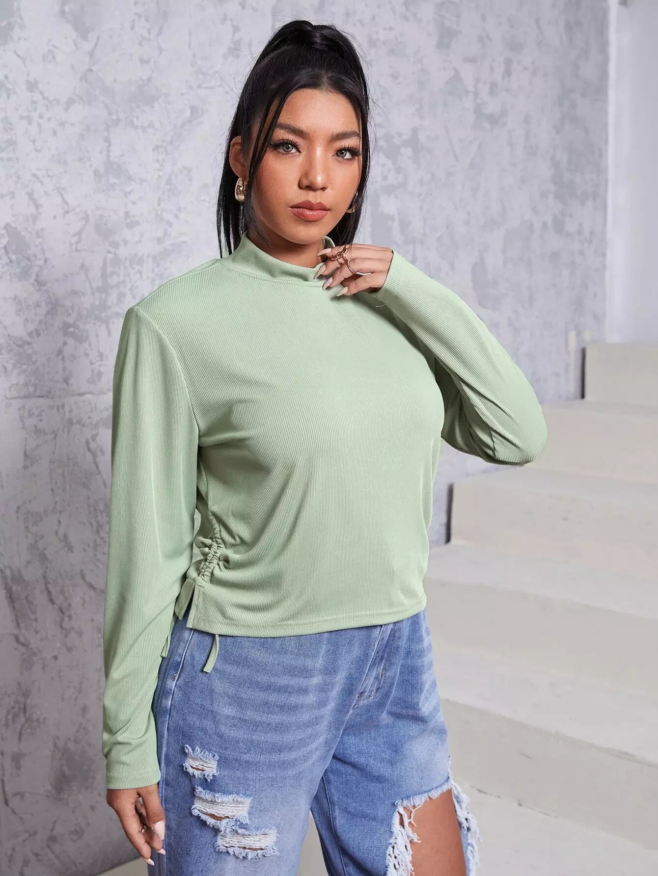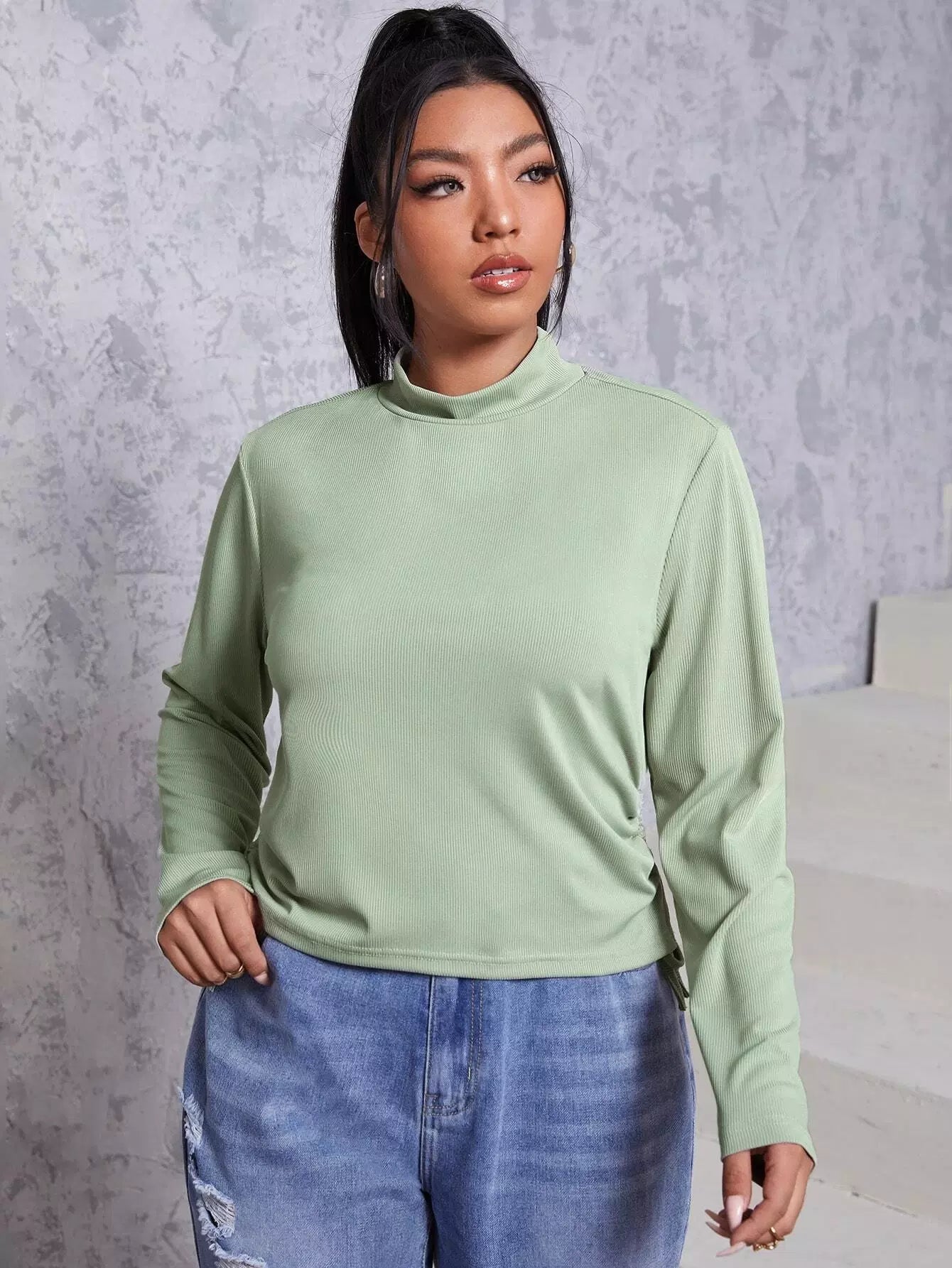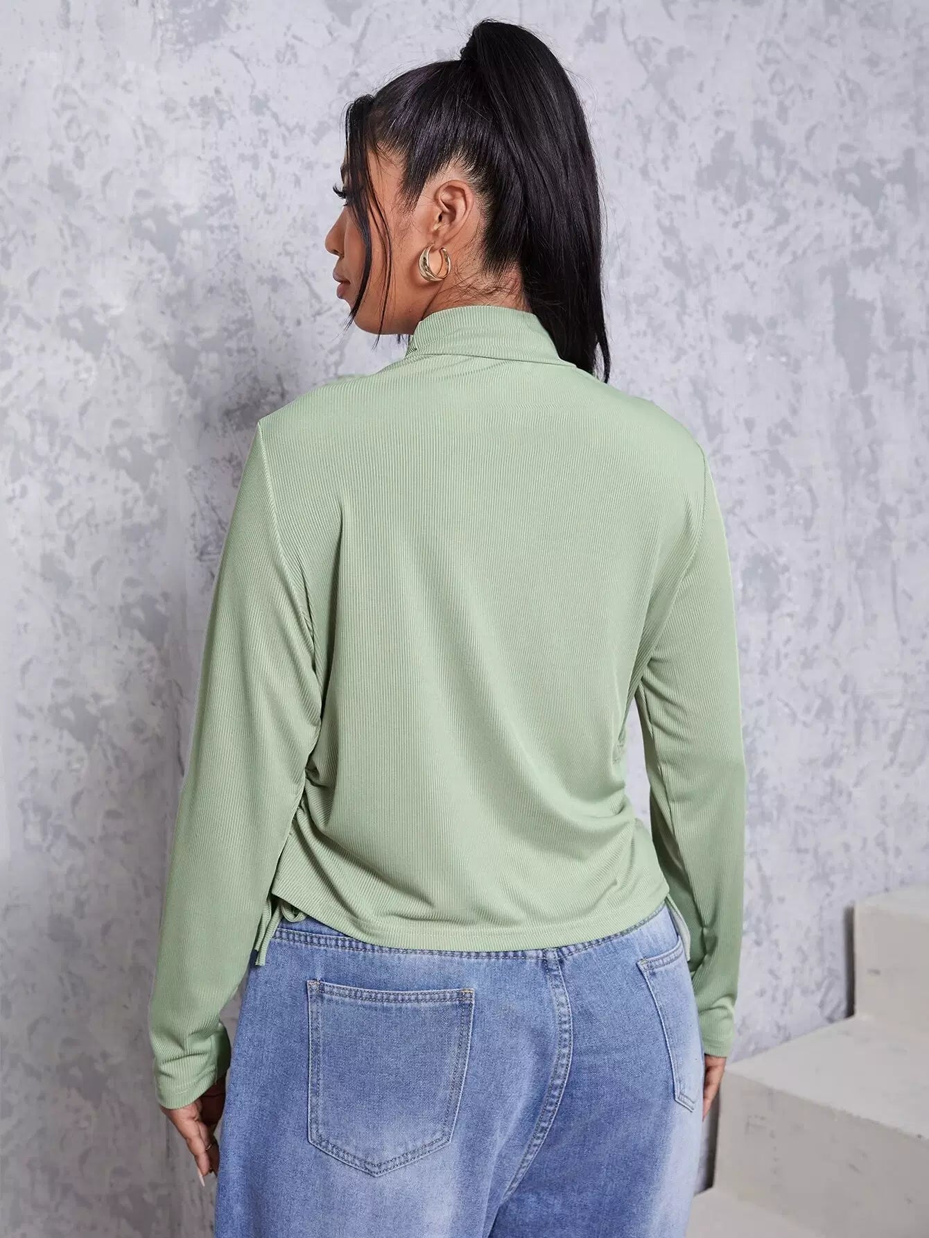 بلوزة برباط جانبي برقبة جانبية برقبة زائد