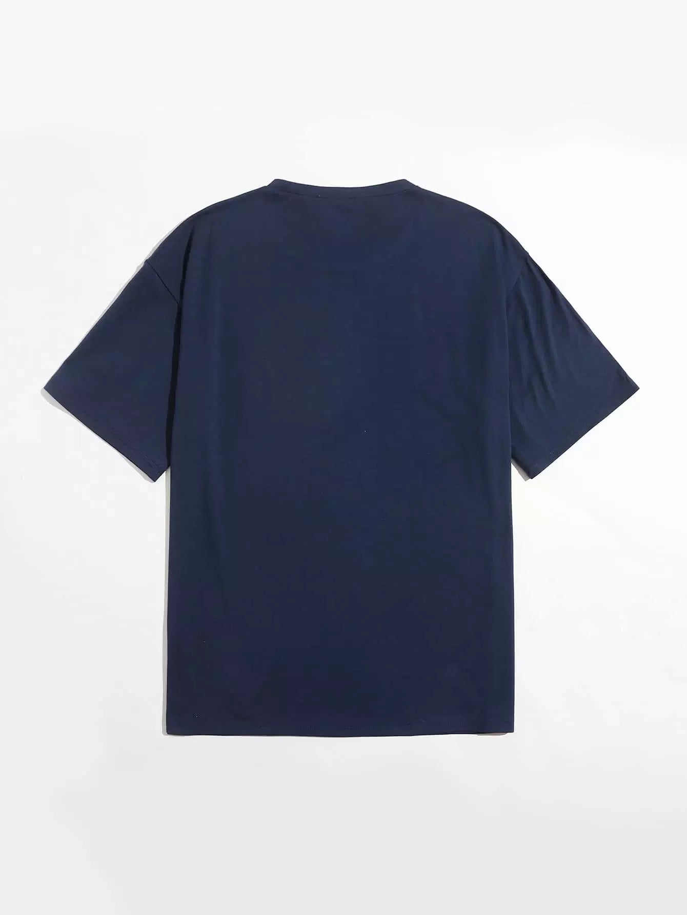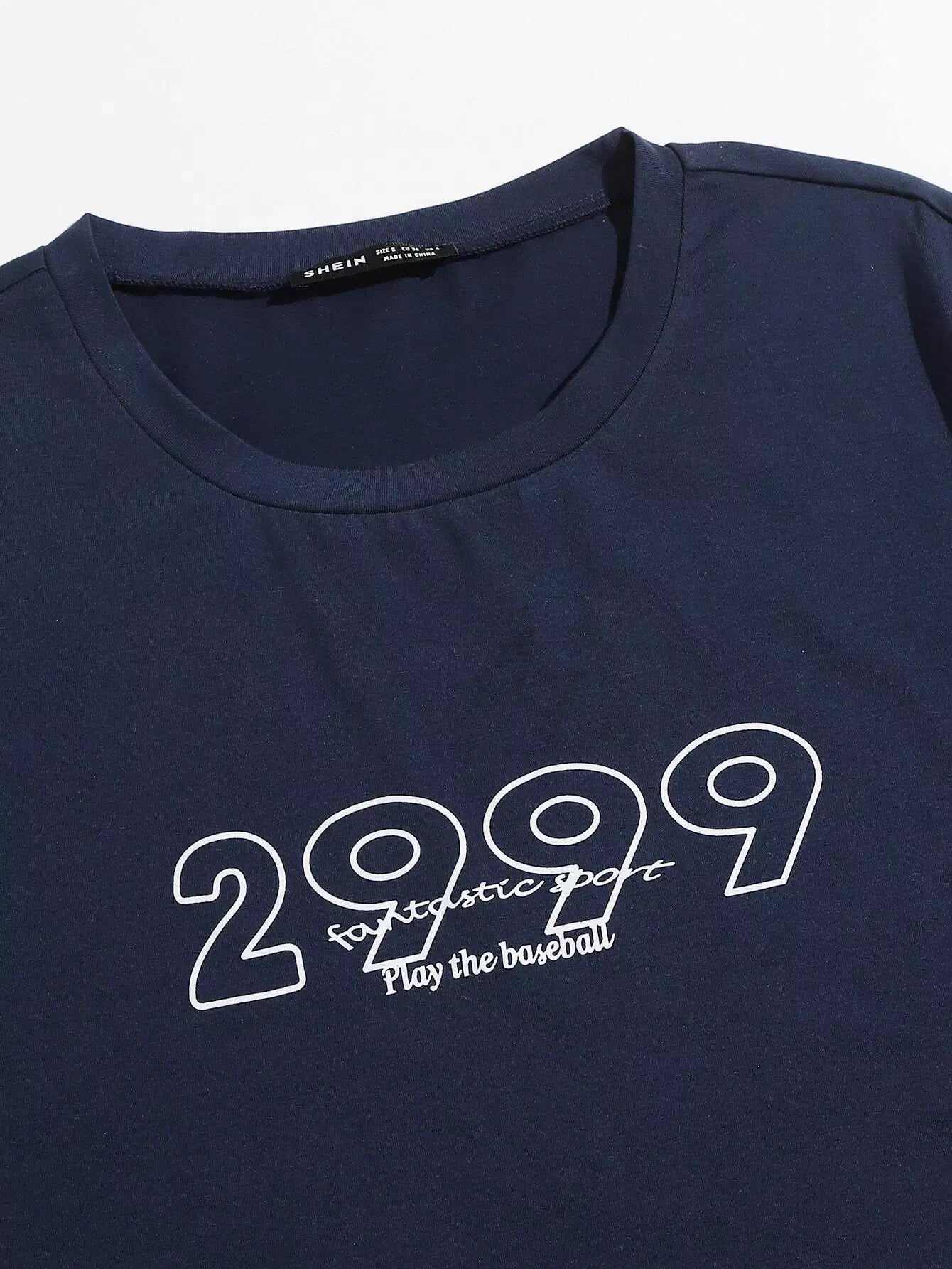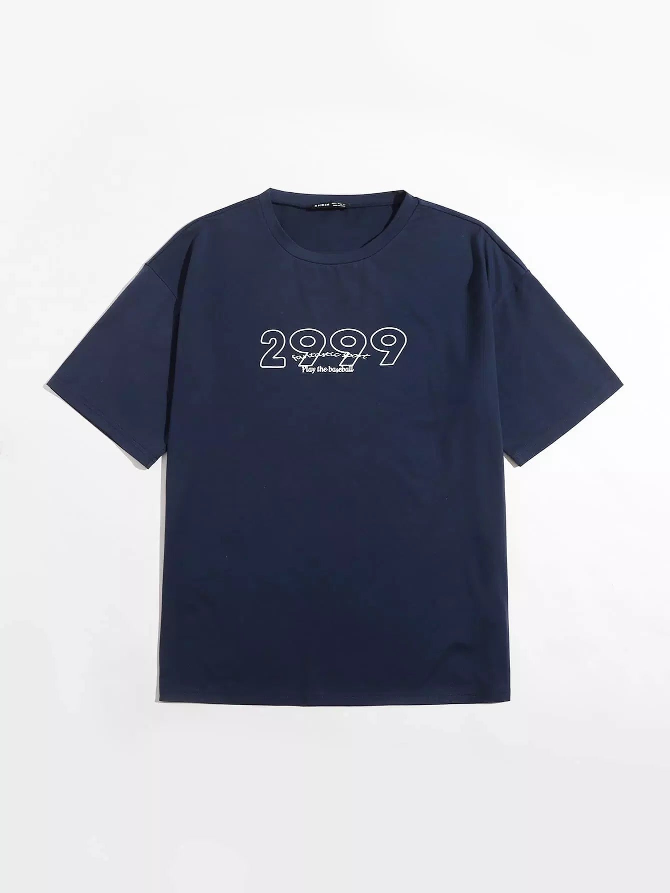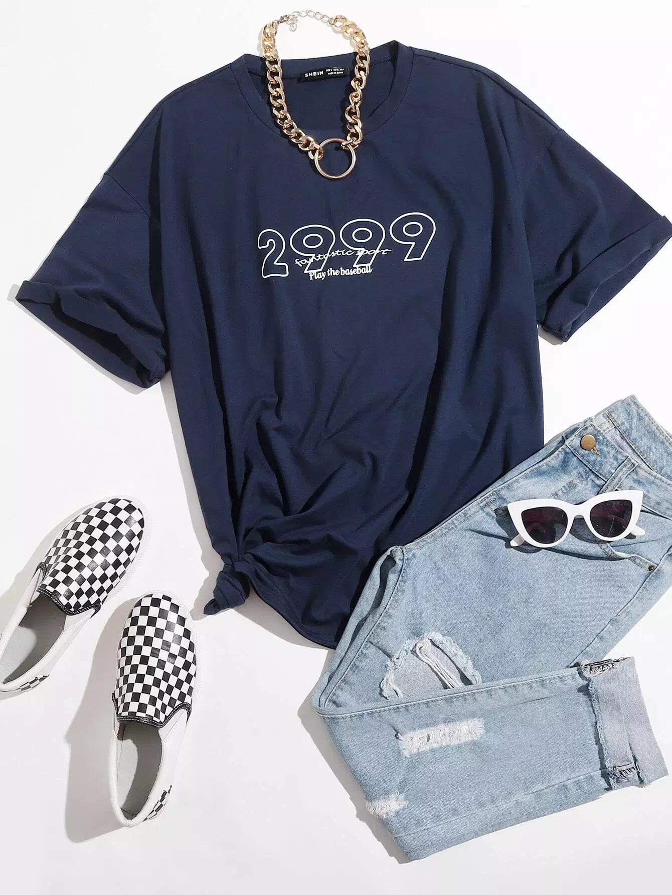 تي شيرت منسدل الكتفين بتصميم رقم زائد