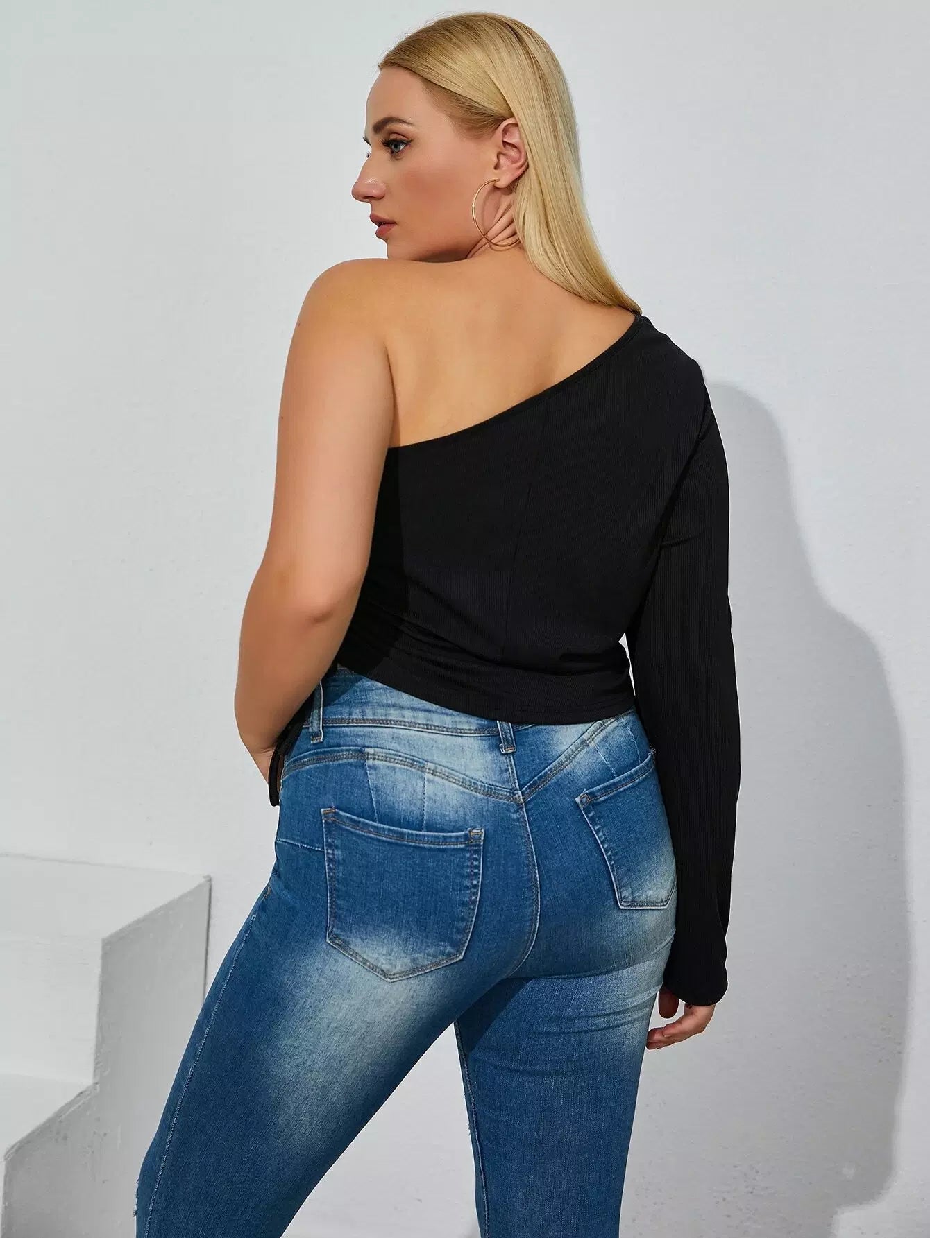 تي شيرت برباط جانبي بأكتاف واحدة زائد