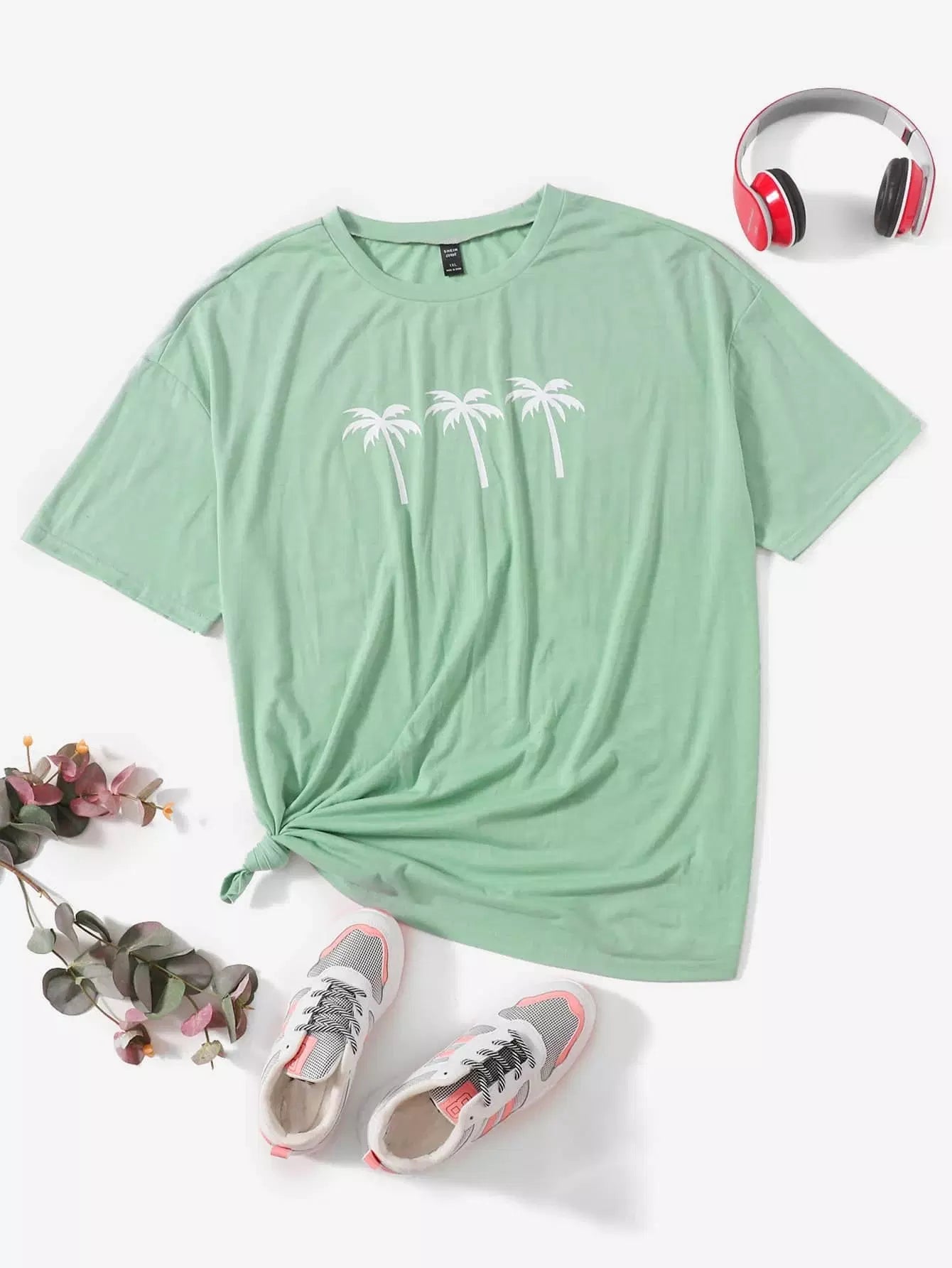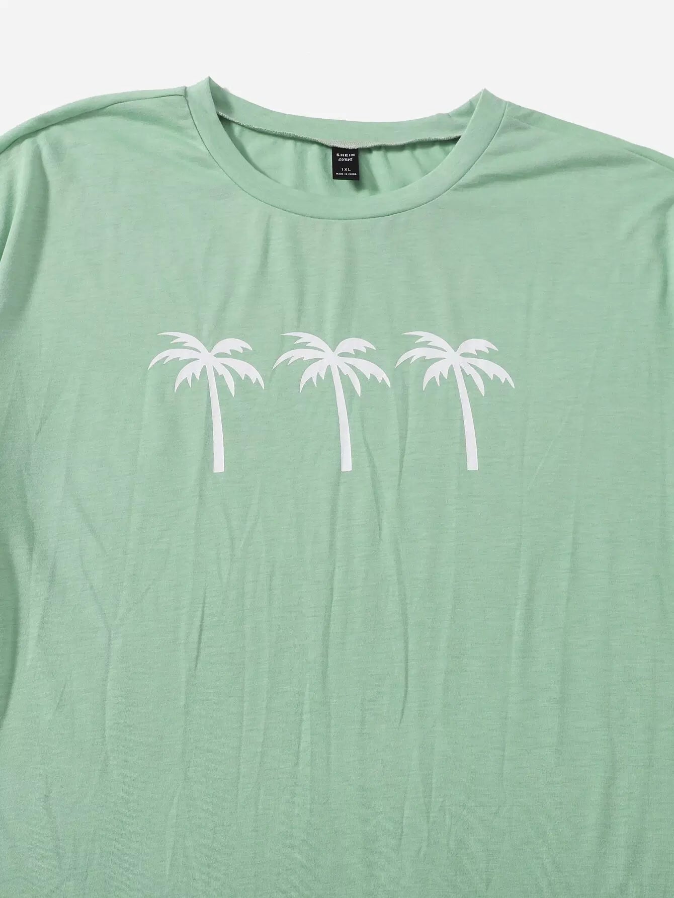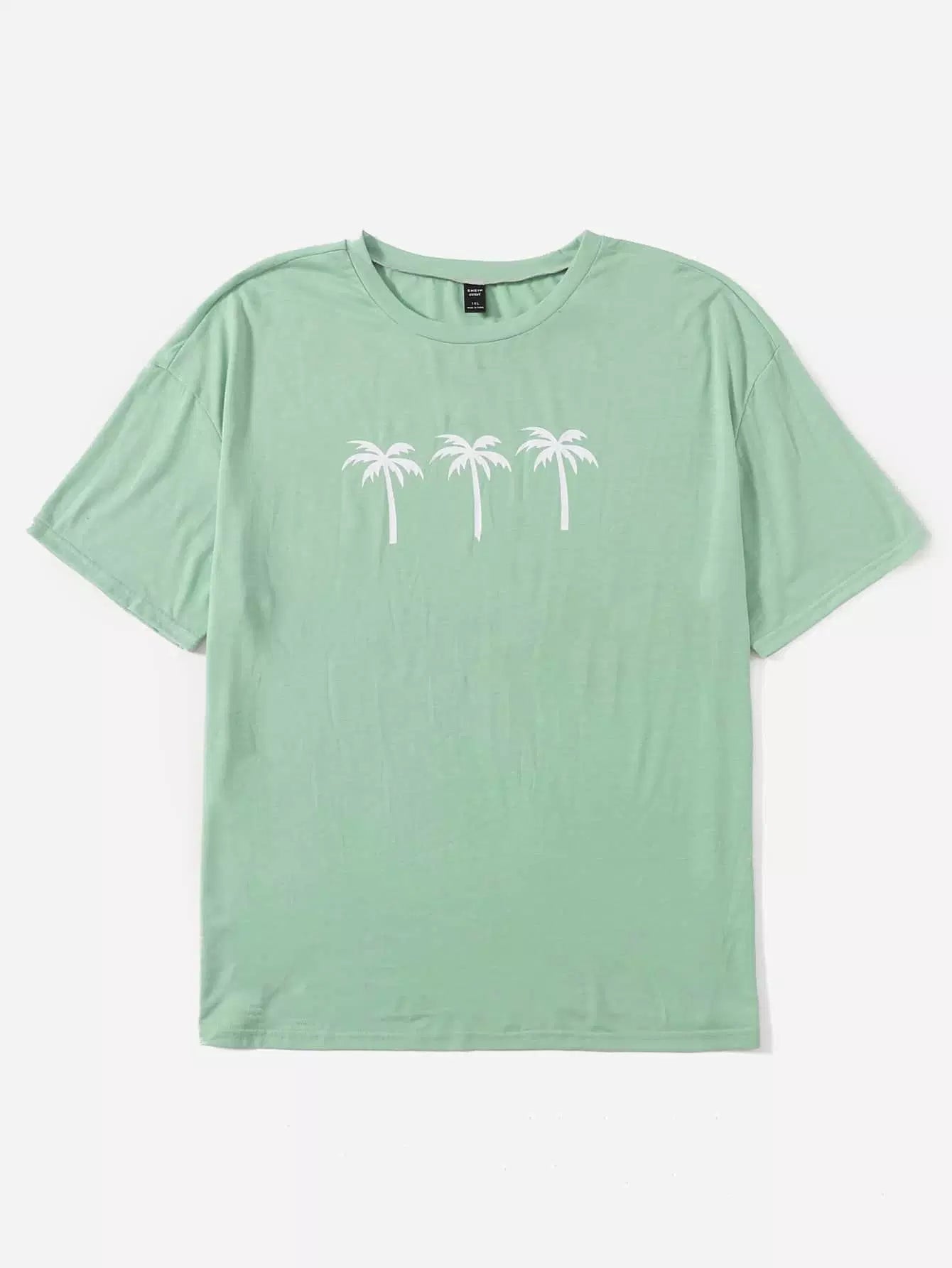 نحيف - مقاس كبير تي شيرت بطباعة شجرة النخيل