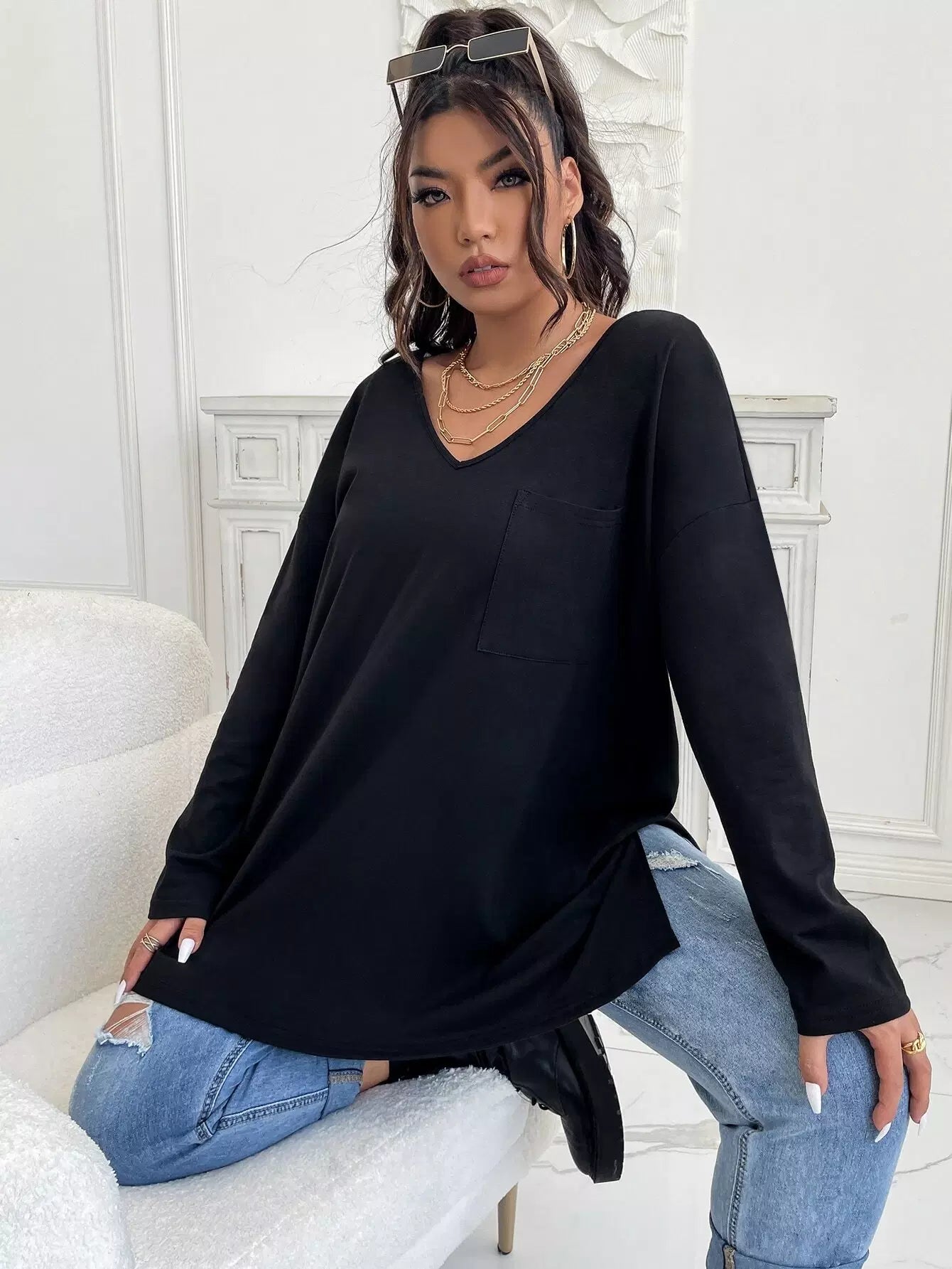 تي شيرت بدون أكتاف منسدل بجيب منسدل منسدل على الكتفين
