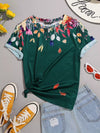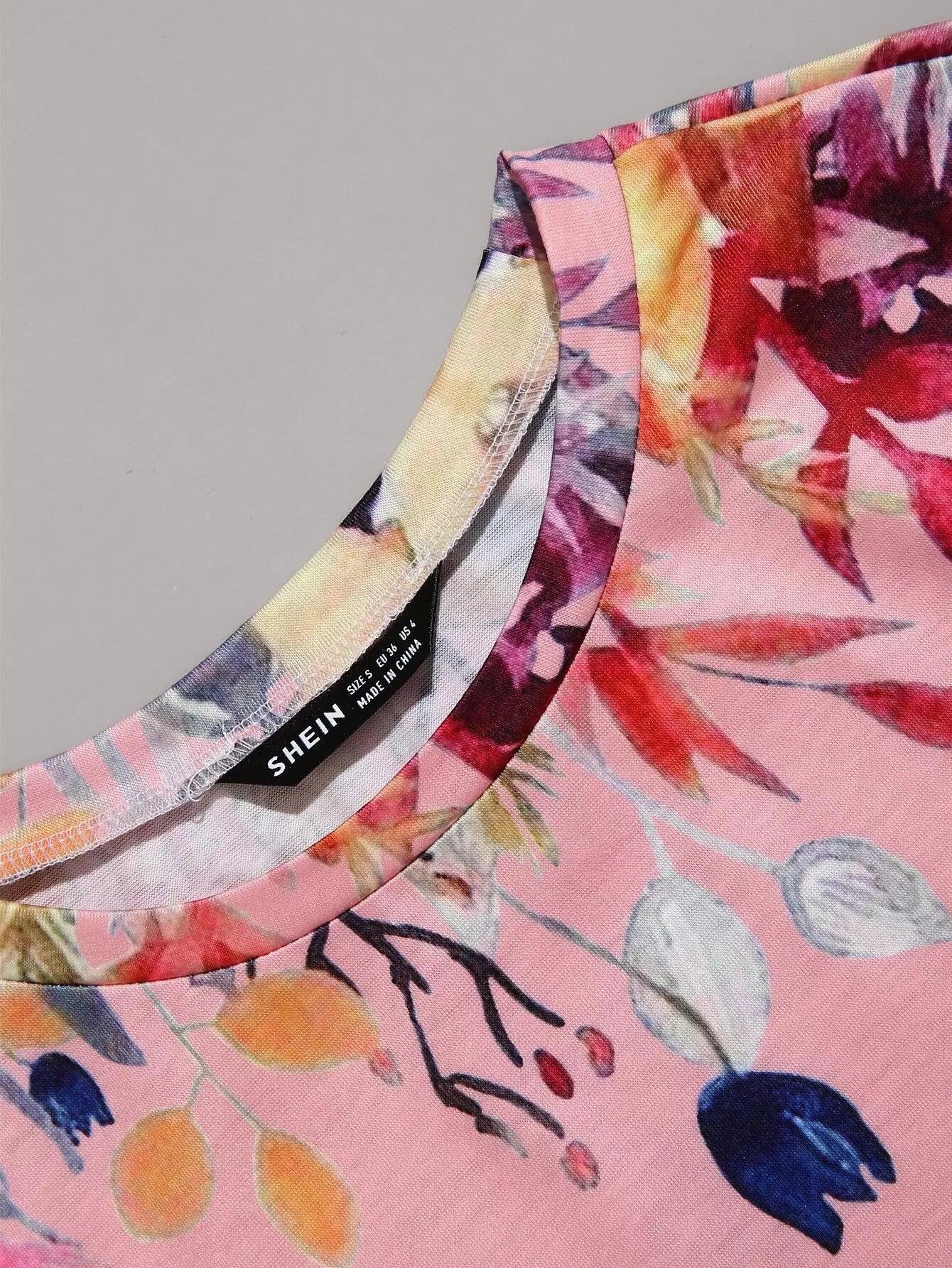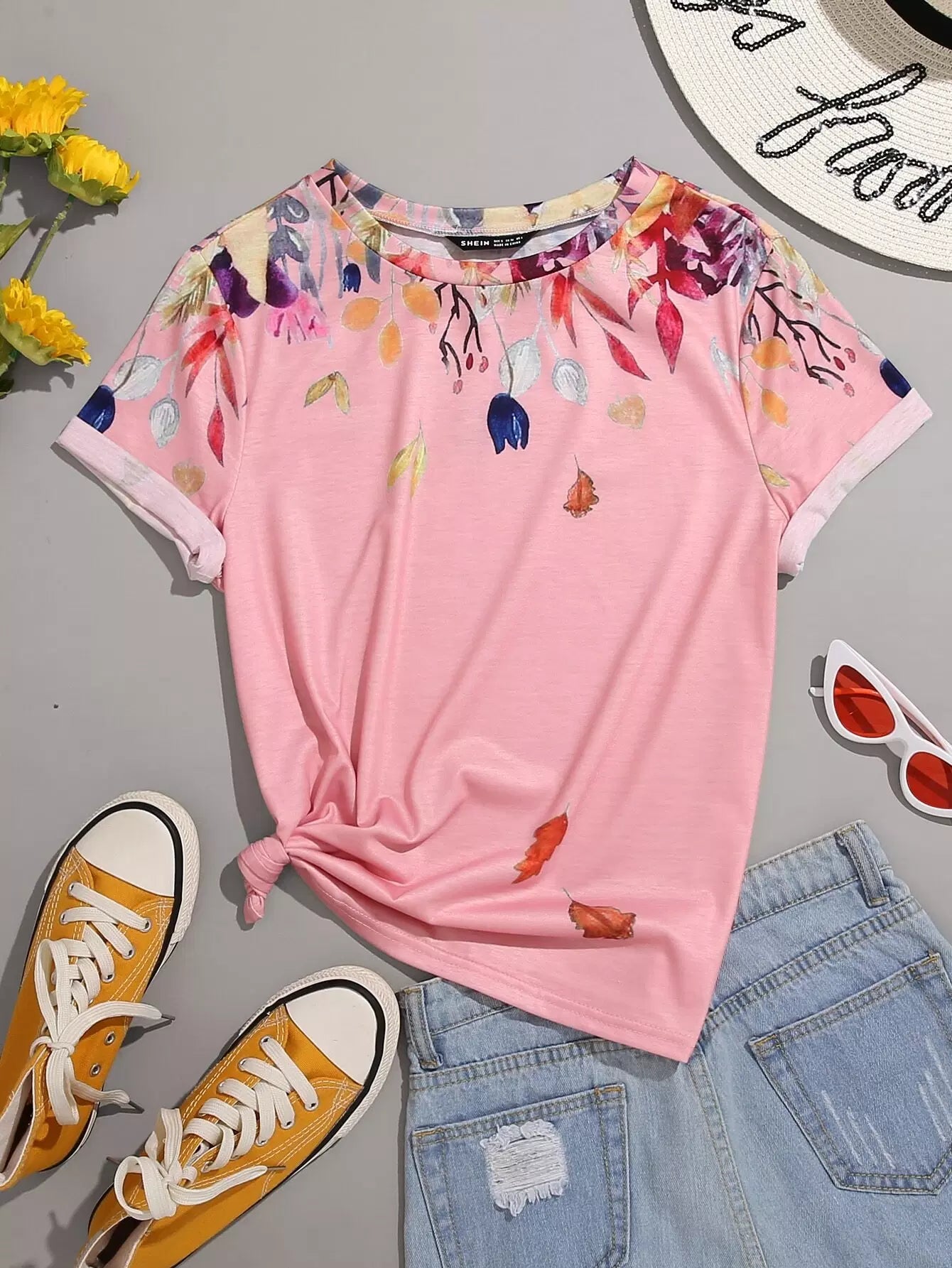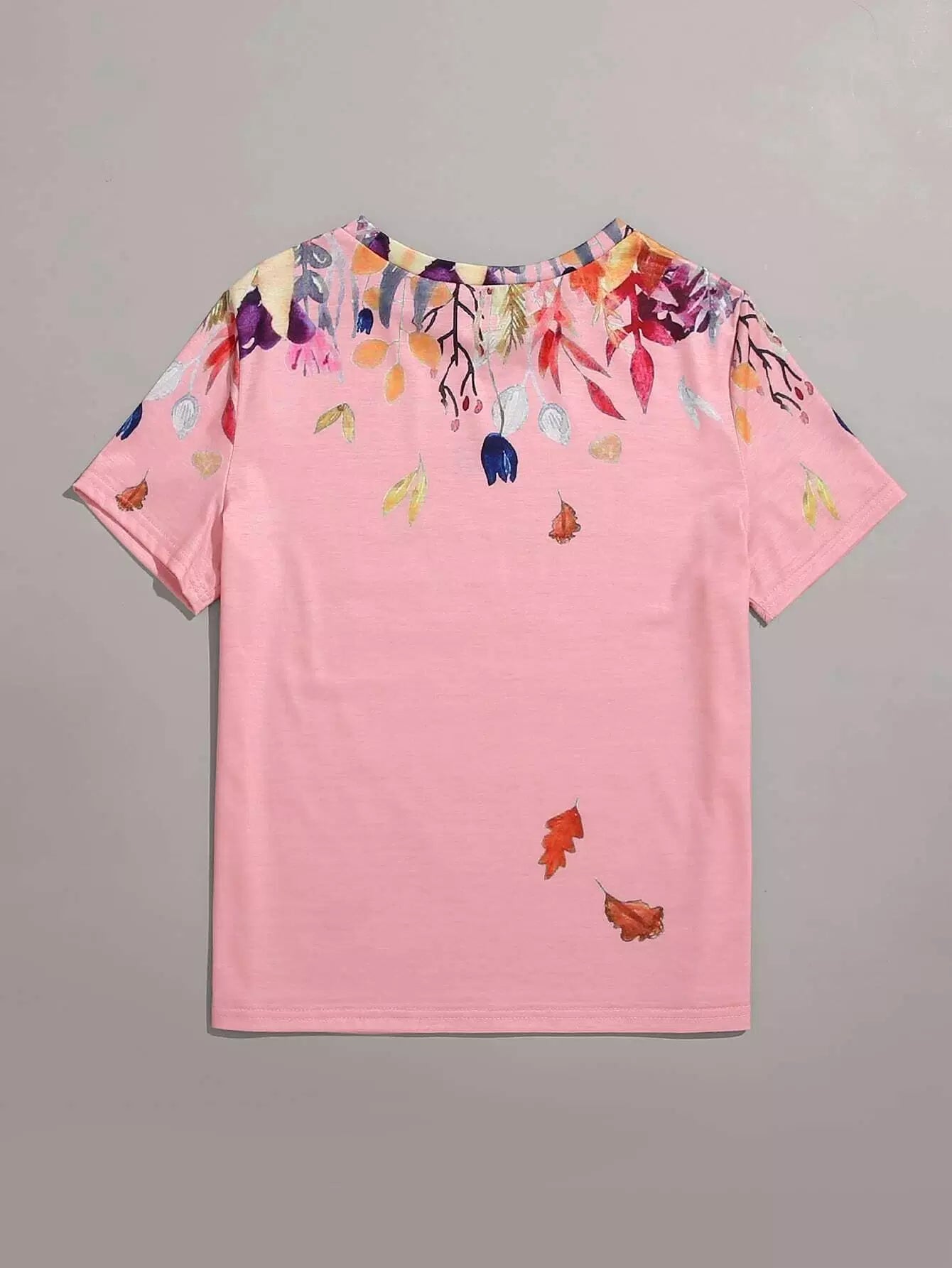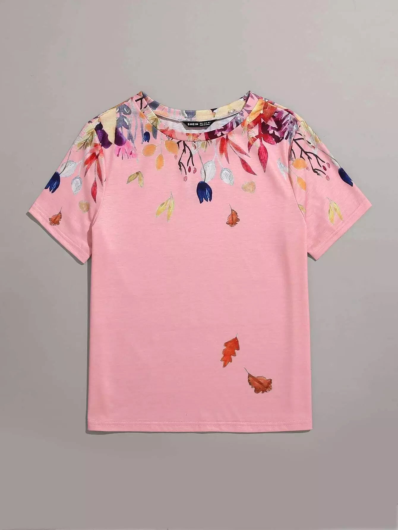 تي شيرت برقبة مستديرة مطبوع عليه نباتات زائد