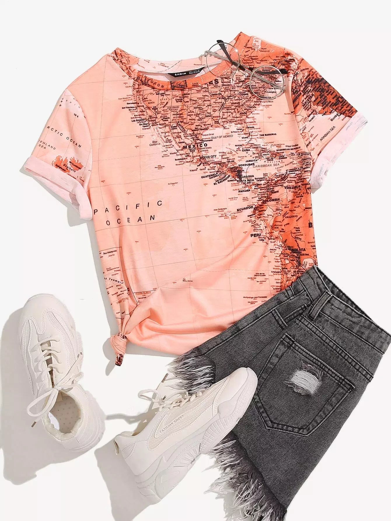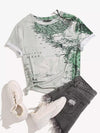 نحيف - مقاس كبير تي شيرت مطبوع بخريطة عشوائية