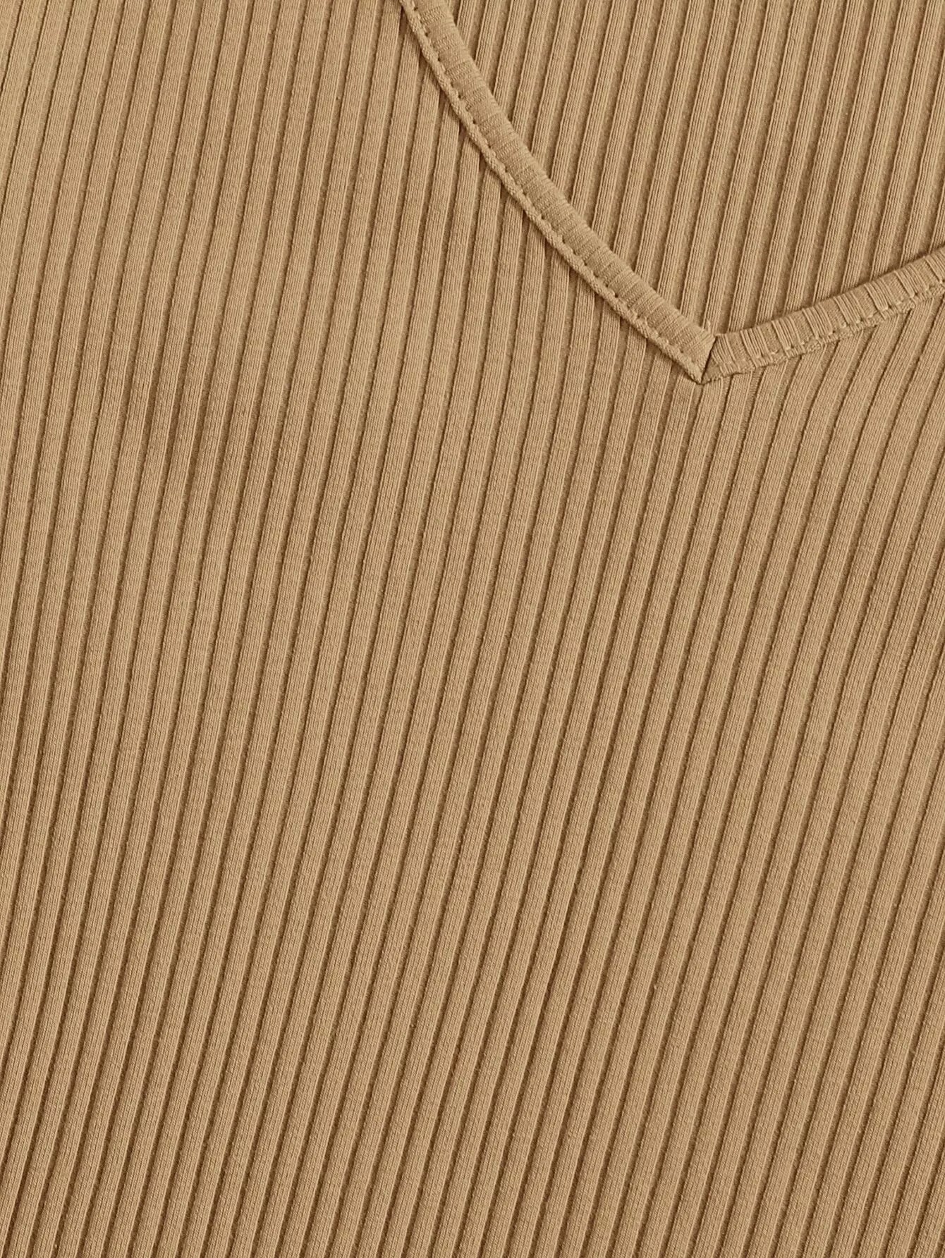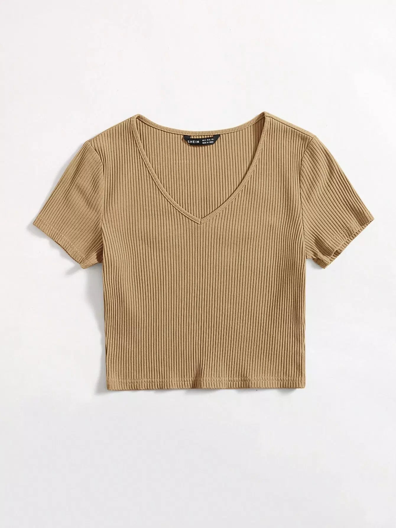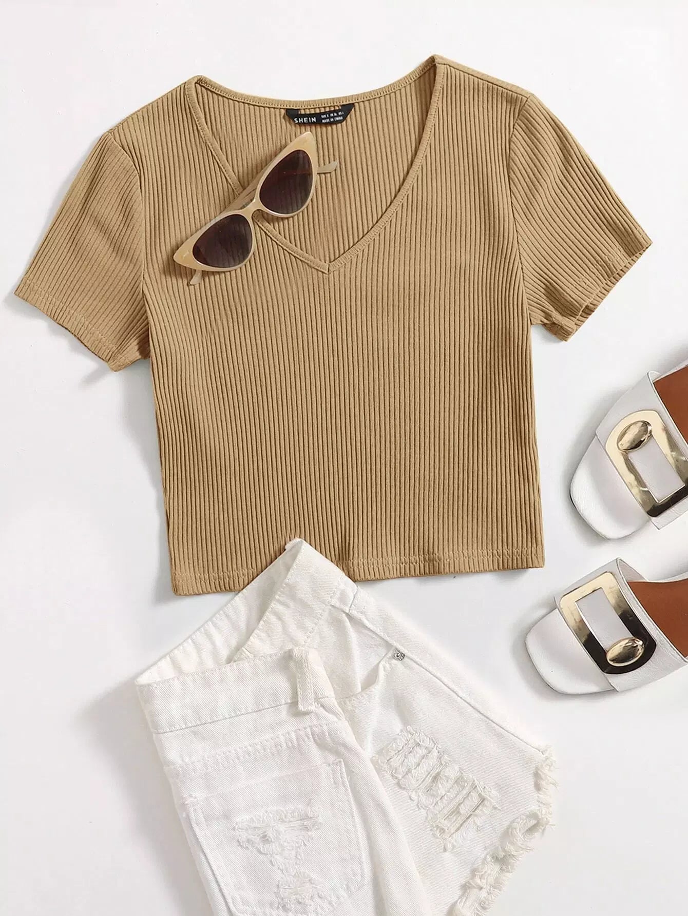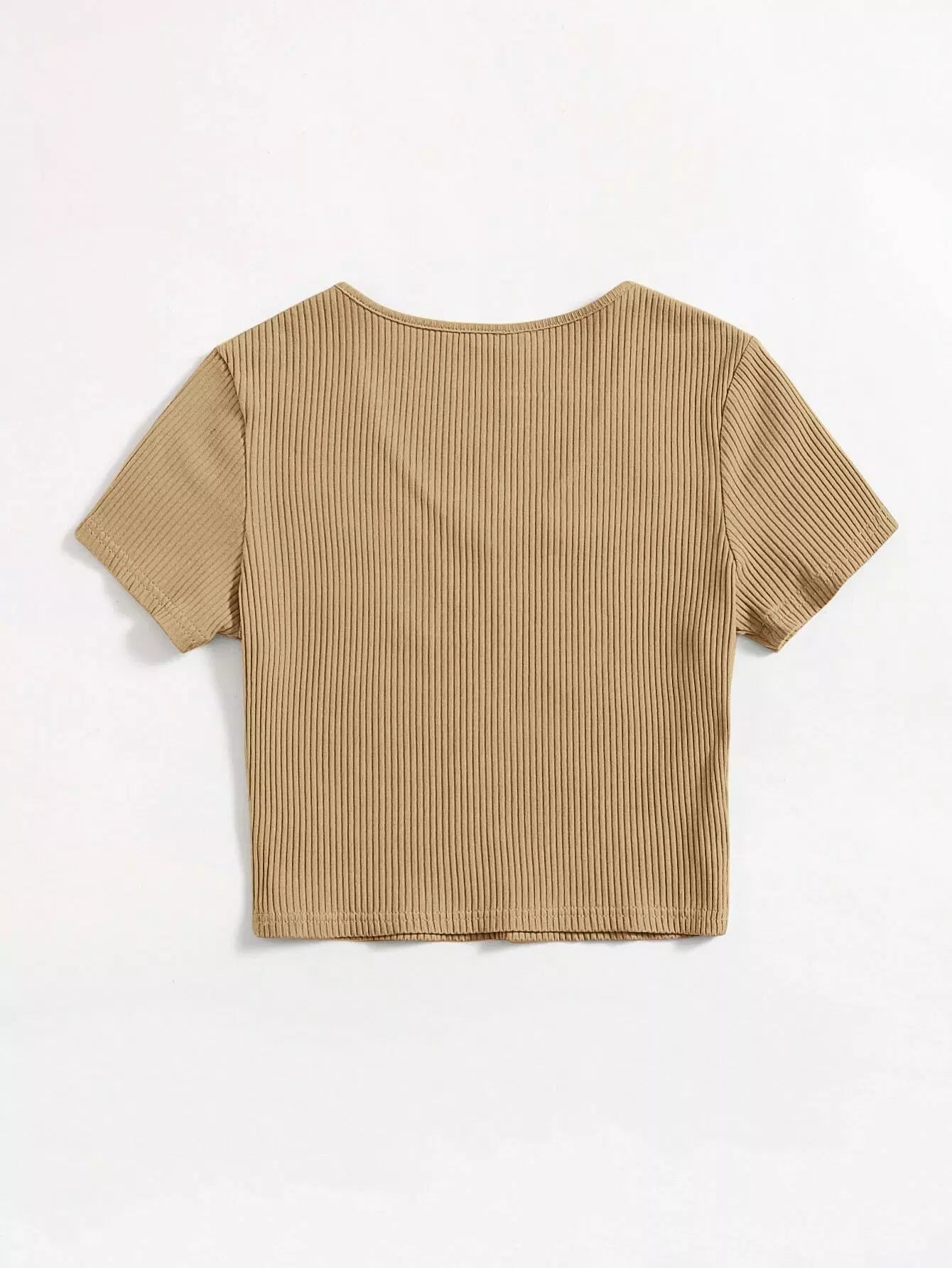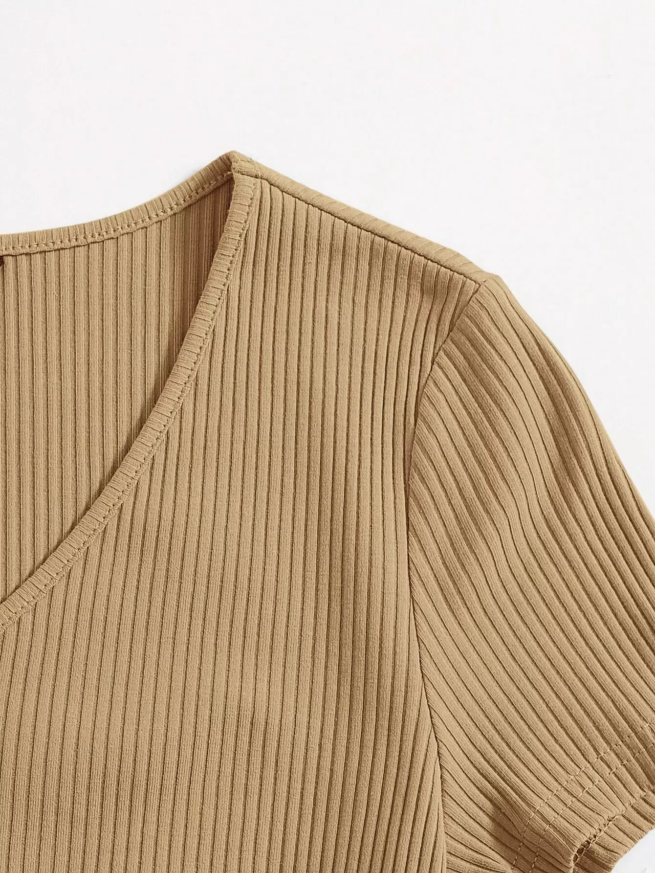 تي شيرت قصير محبوك على شكل ضلع محبوك زائد