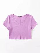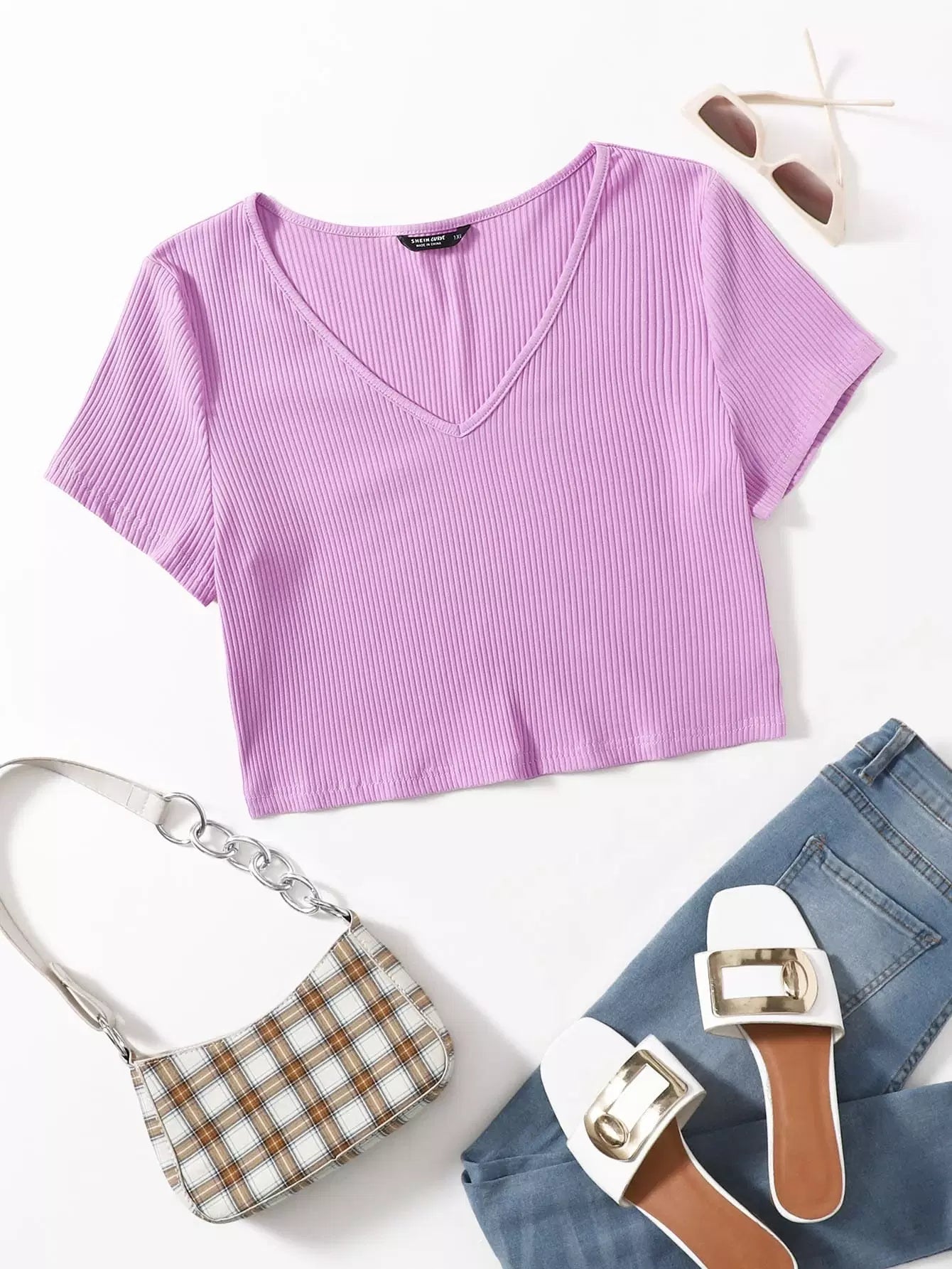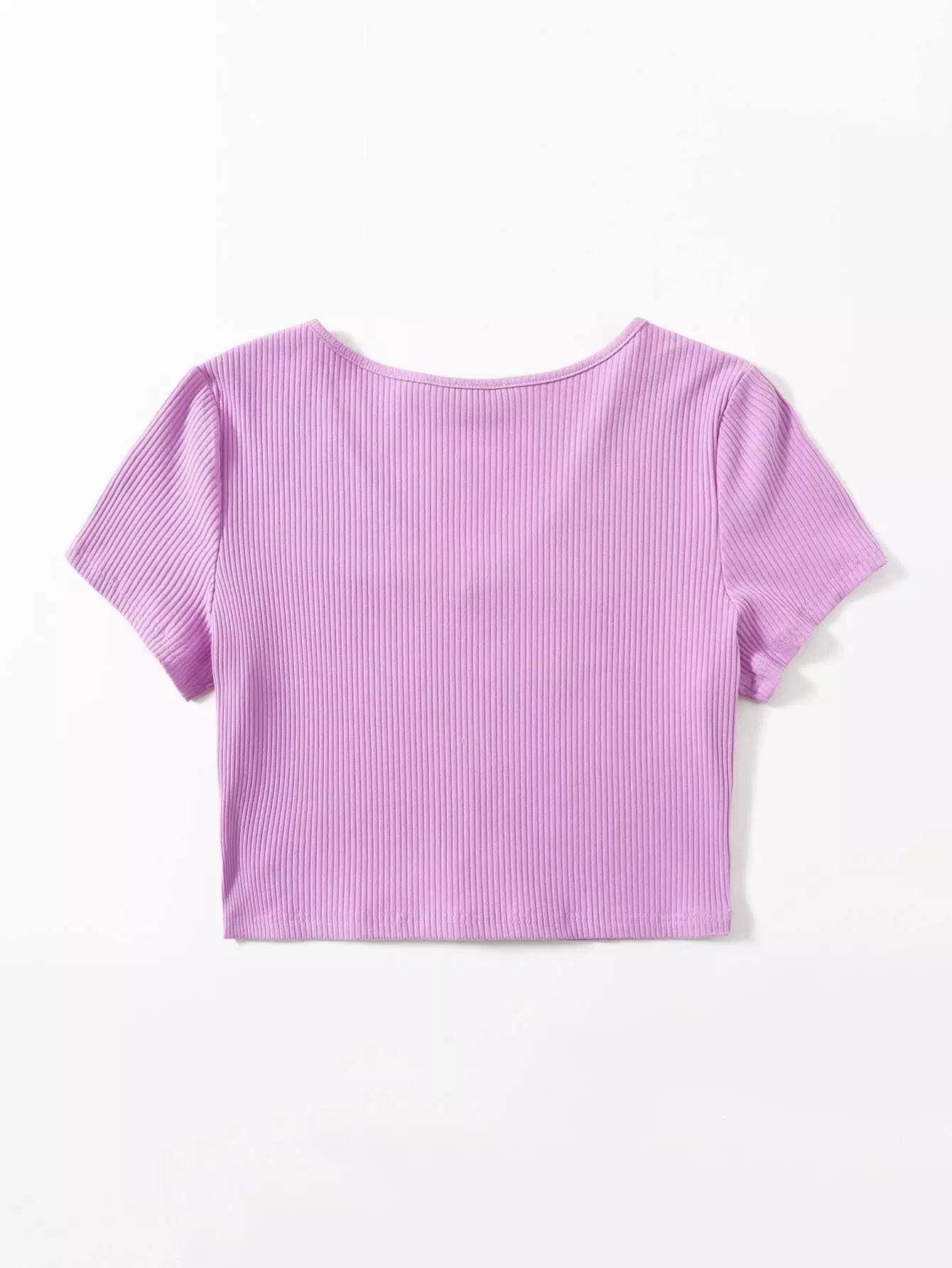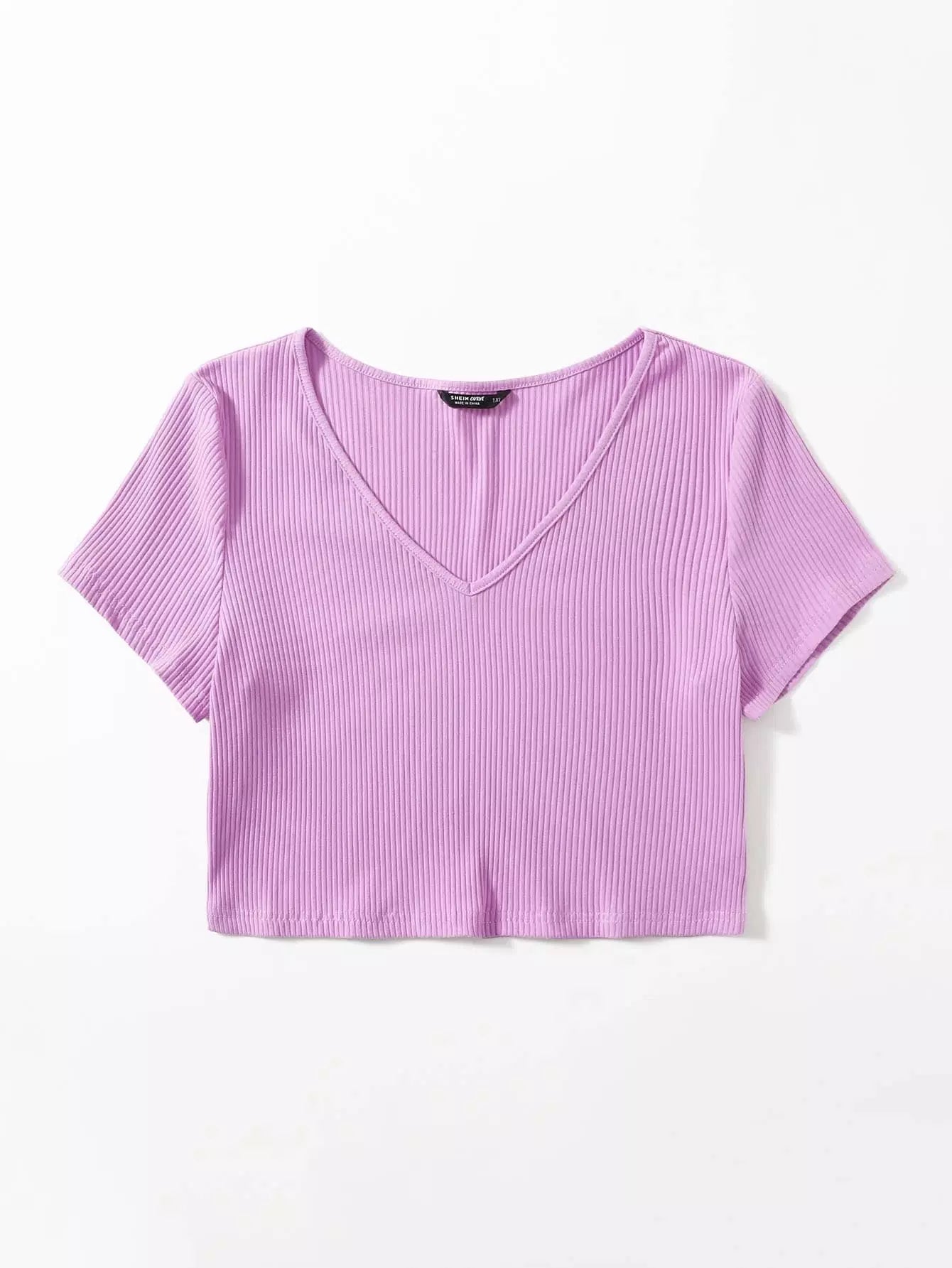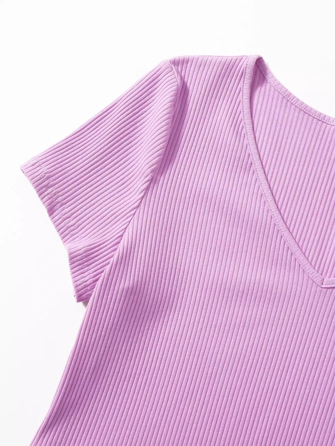 تي شيرت قصير محبوك على شكل ضلع محبوك زائد