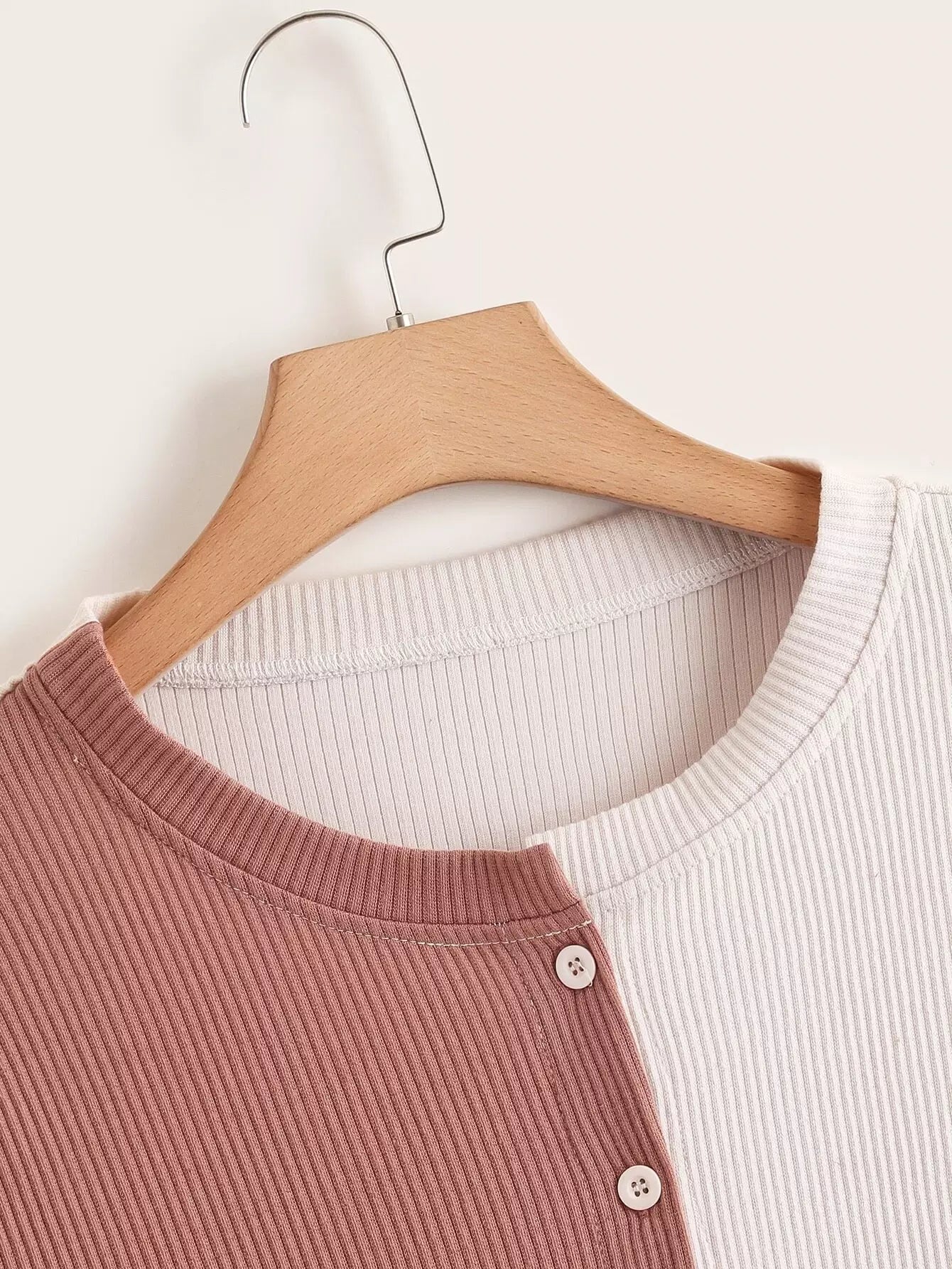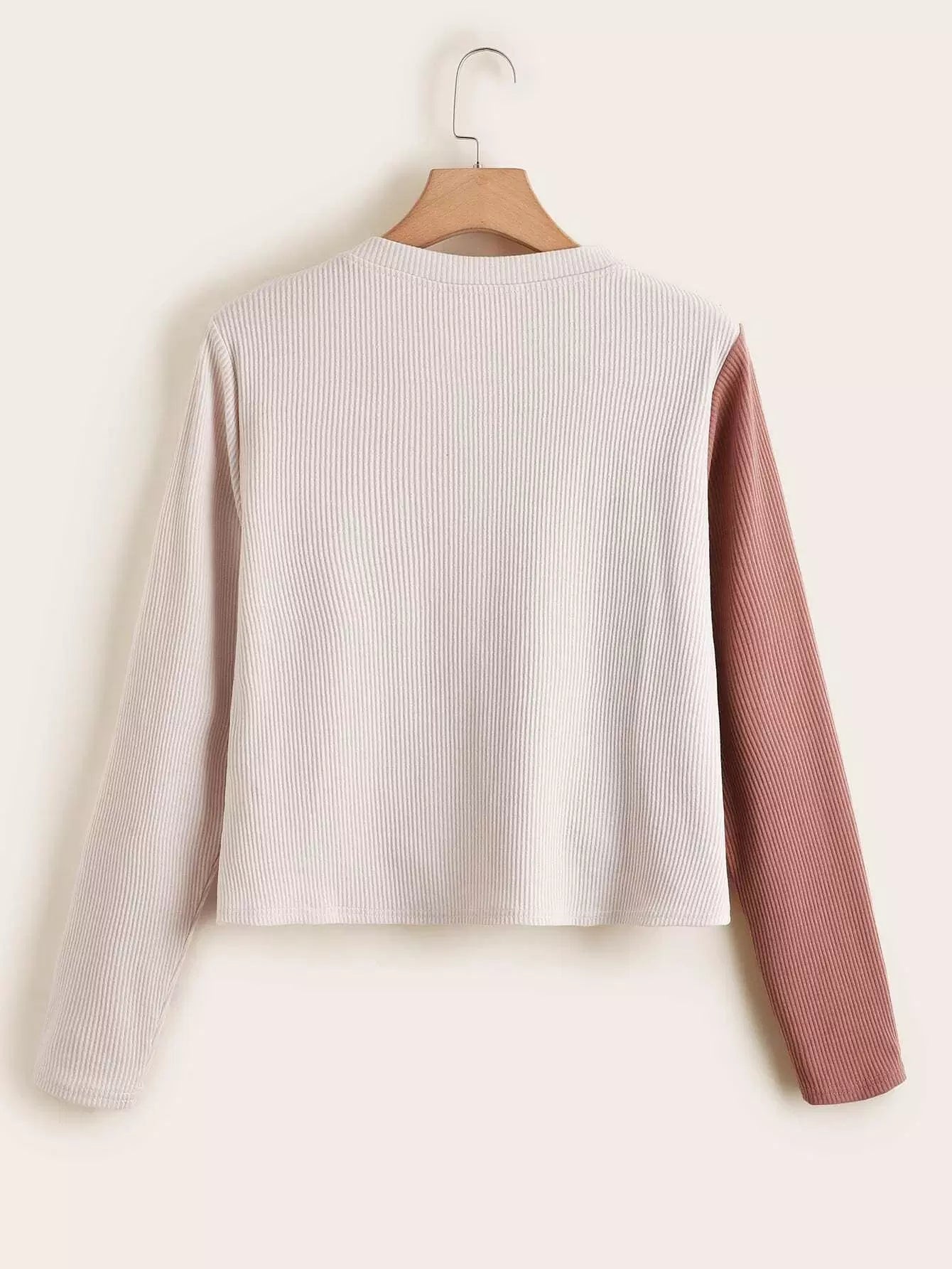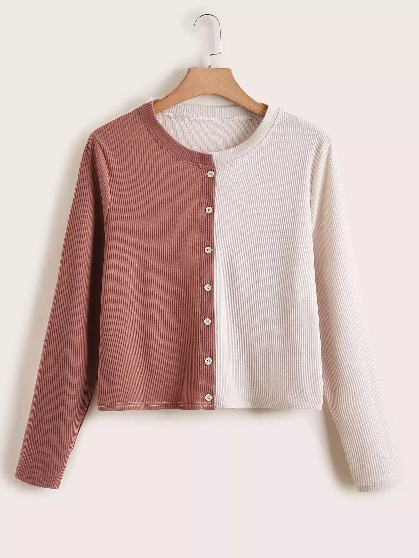 بلوزة مضلعة مضلعة مضلعة بلونين زائد