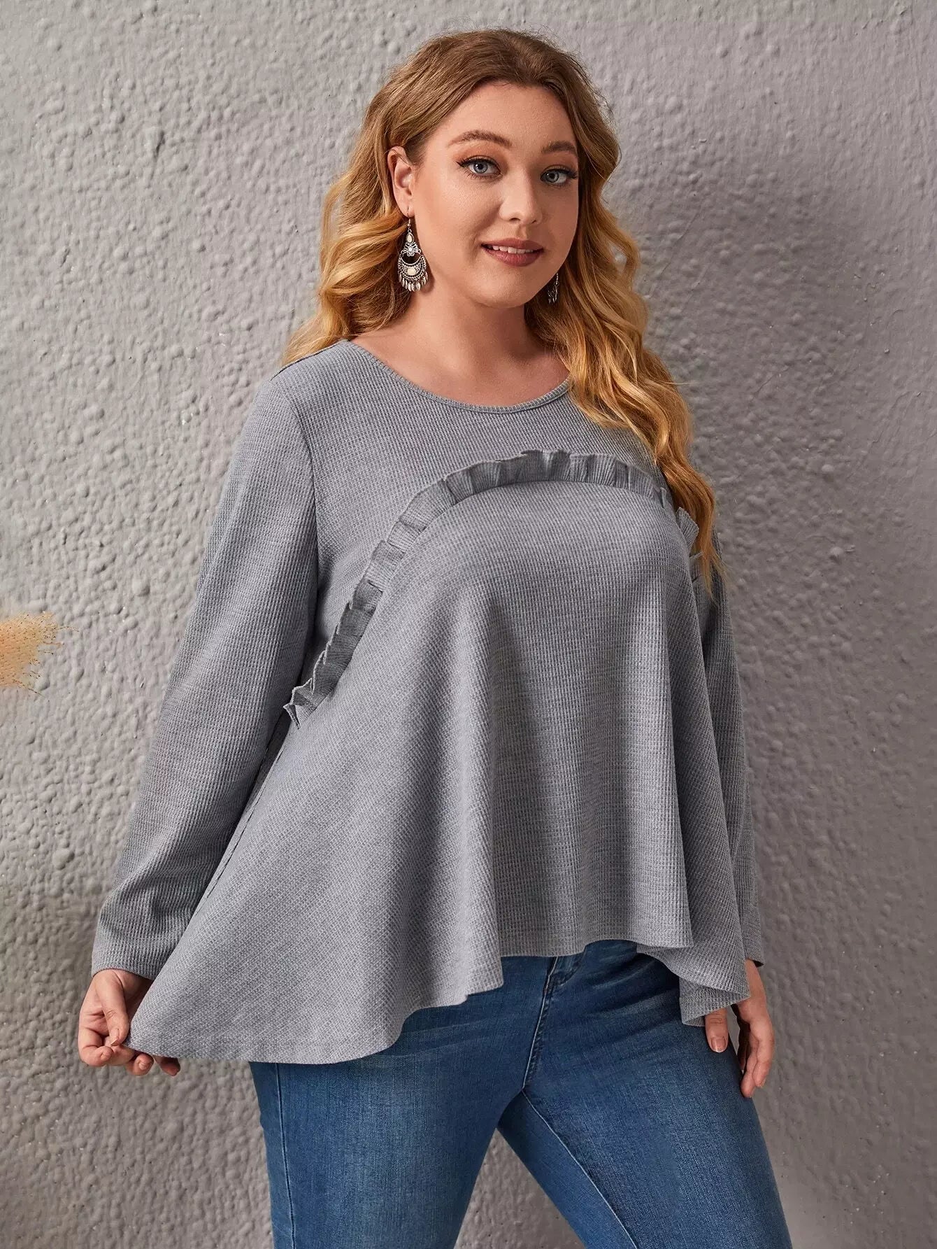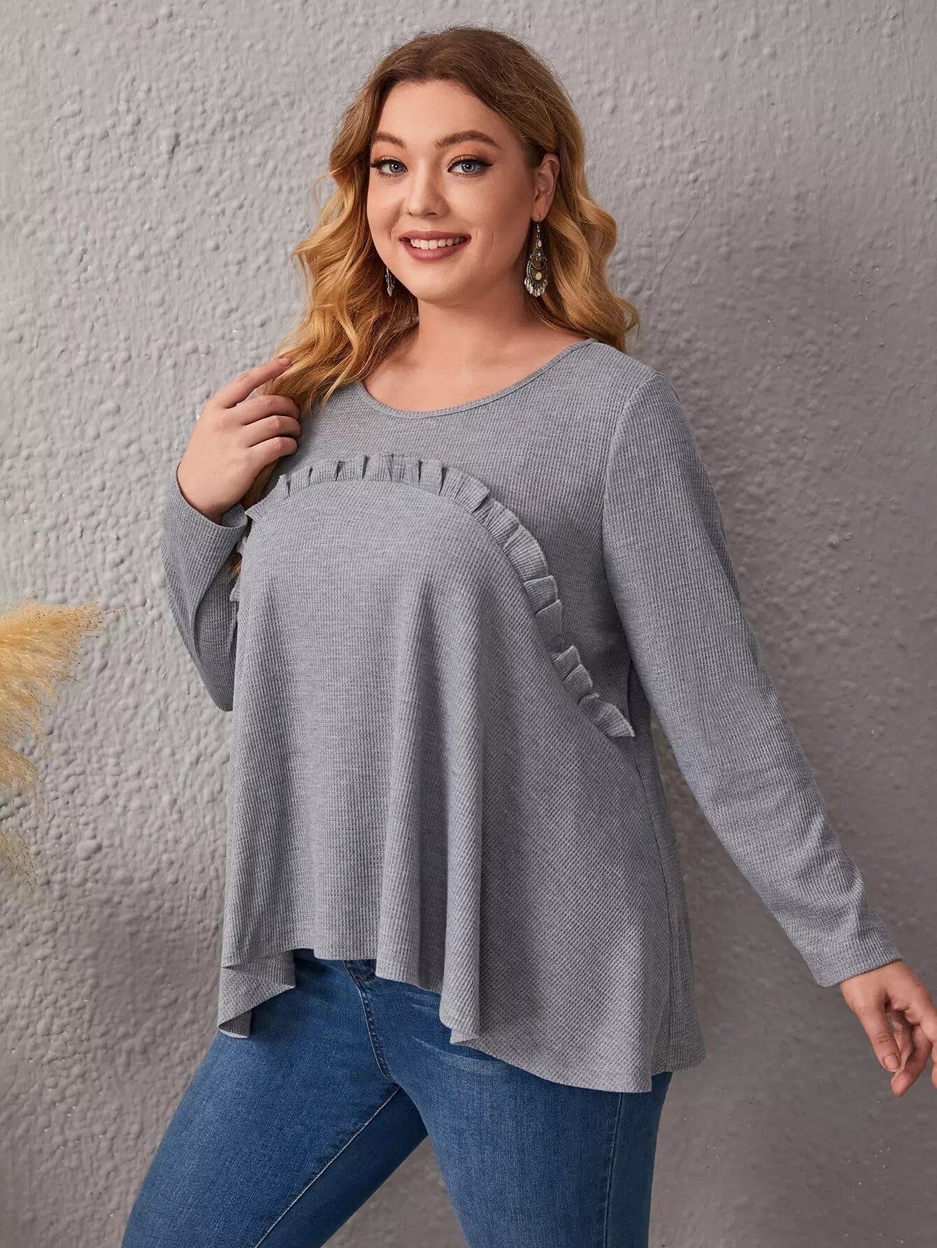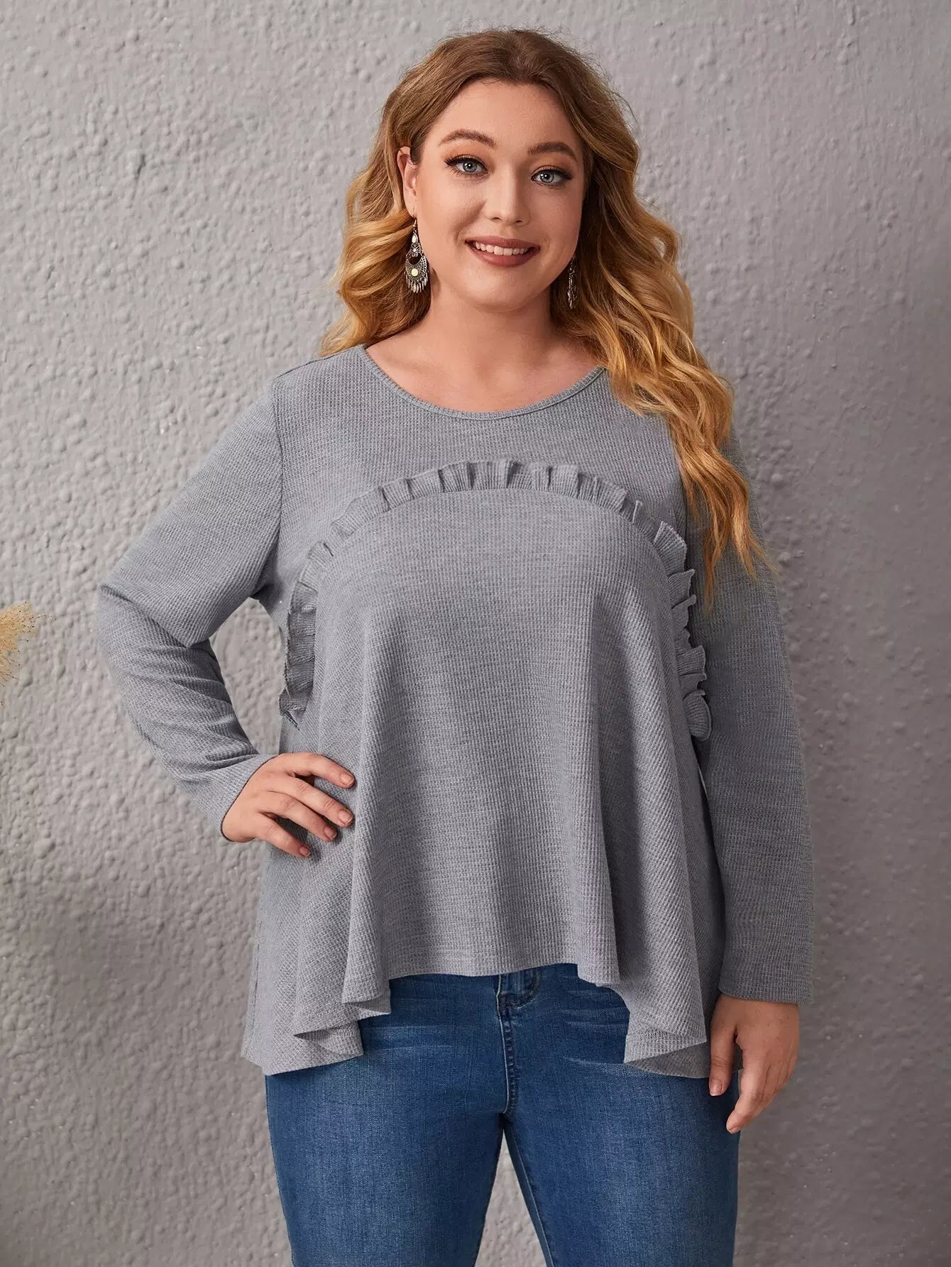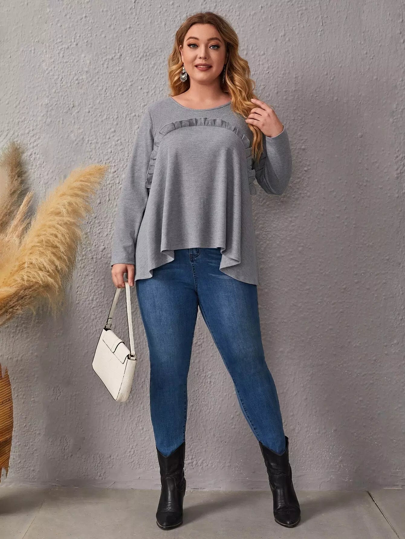 تي شيرت بحواف مكشكشة عالية منخفضة زائد