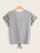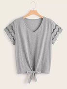 تي شيرت بأكمام مقصوصة الأكمام مقصوصة الأكمام بفتحة عقدة