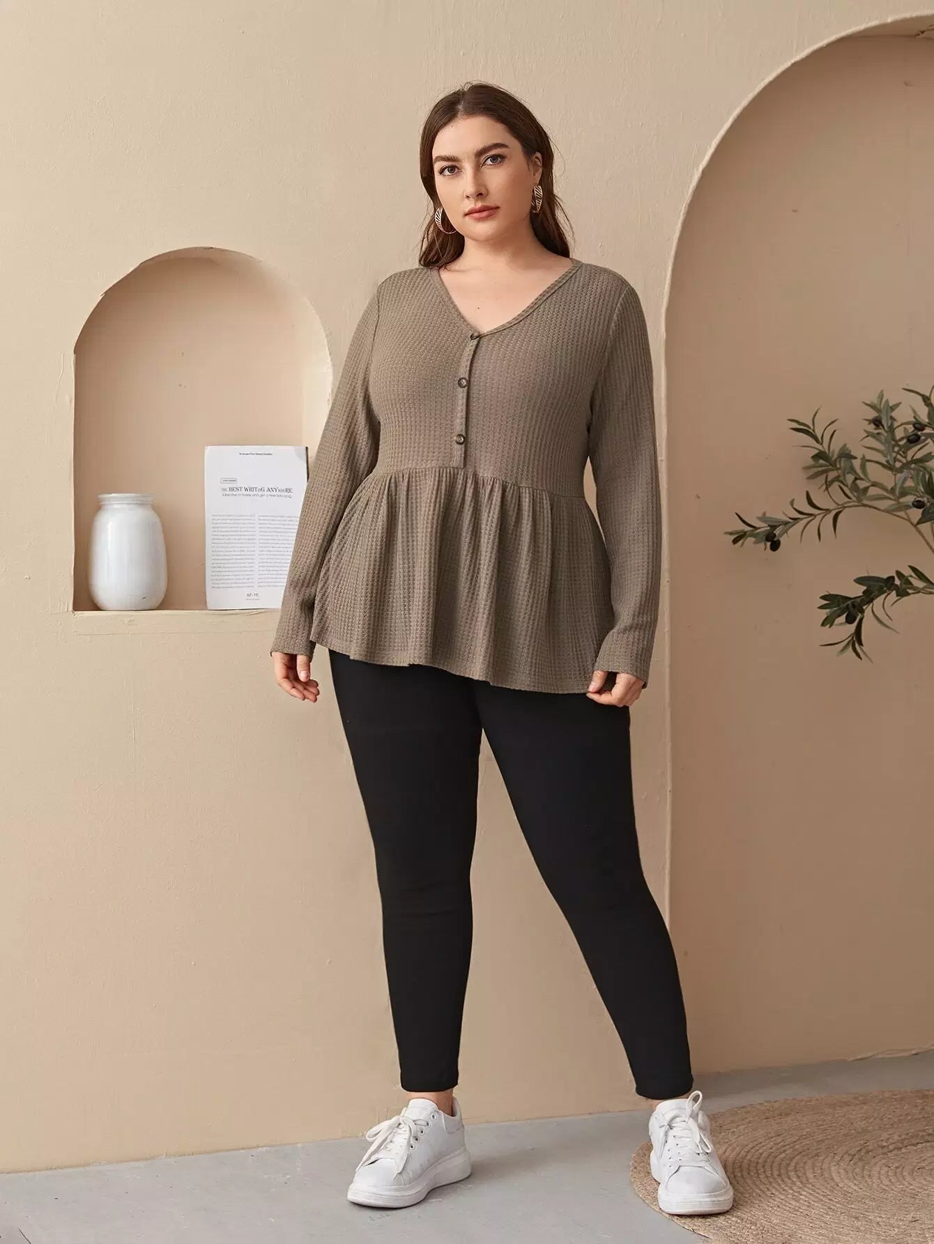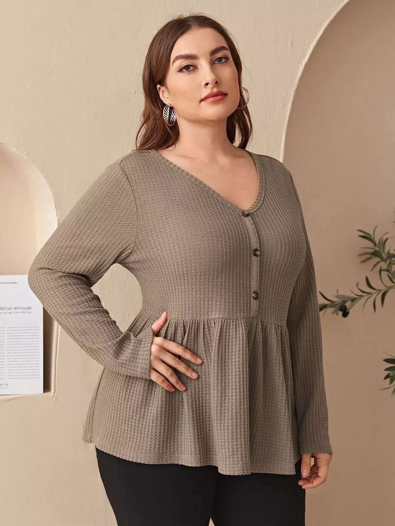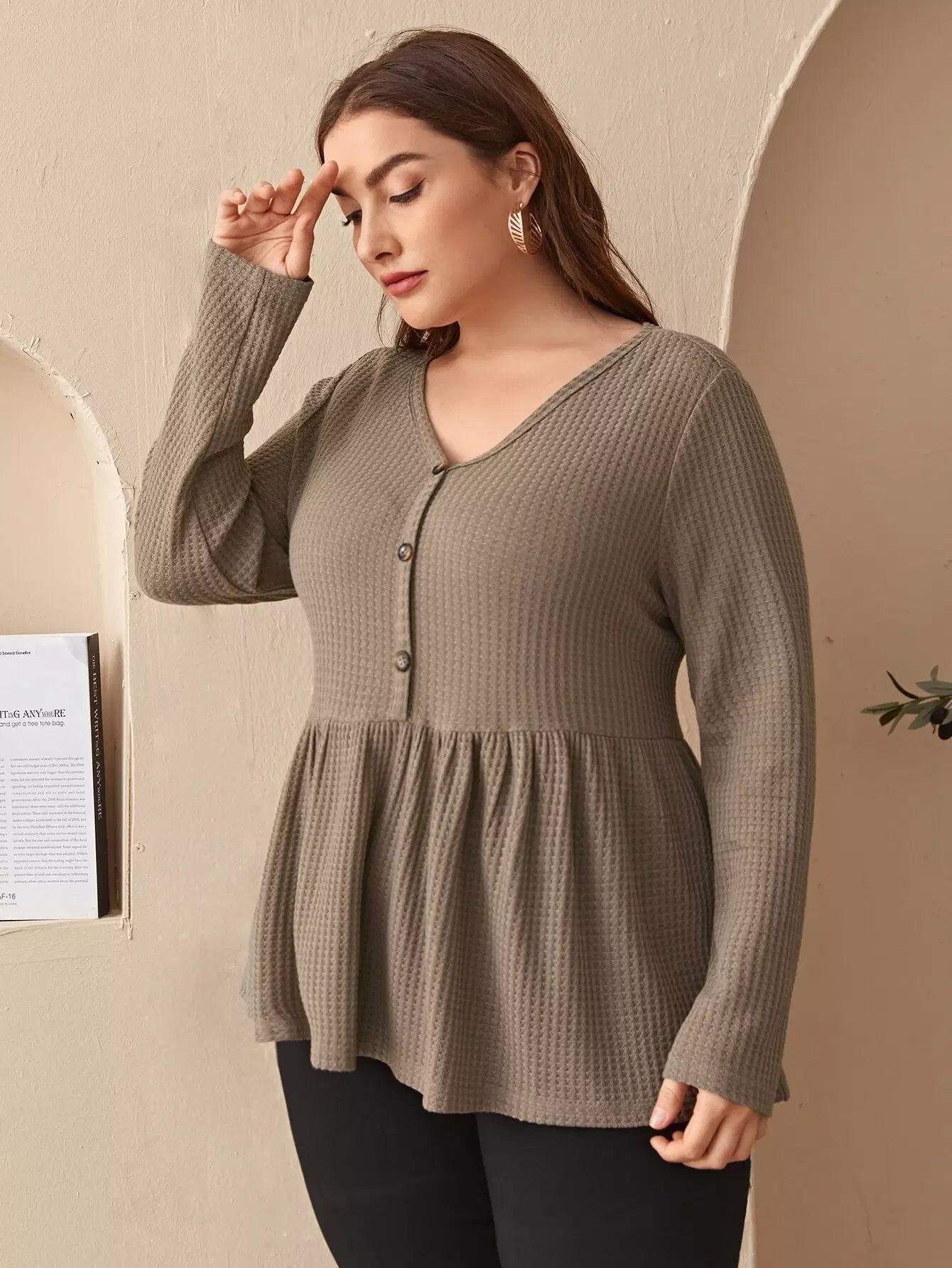 بلوزة محبوكة بفتحة صدر واحدة متماسكة بفتحة صدر واحدة