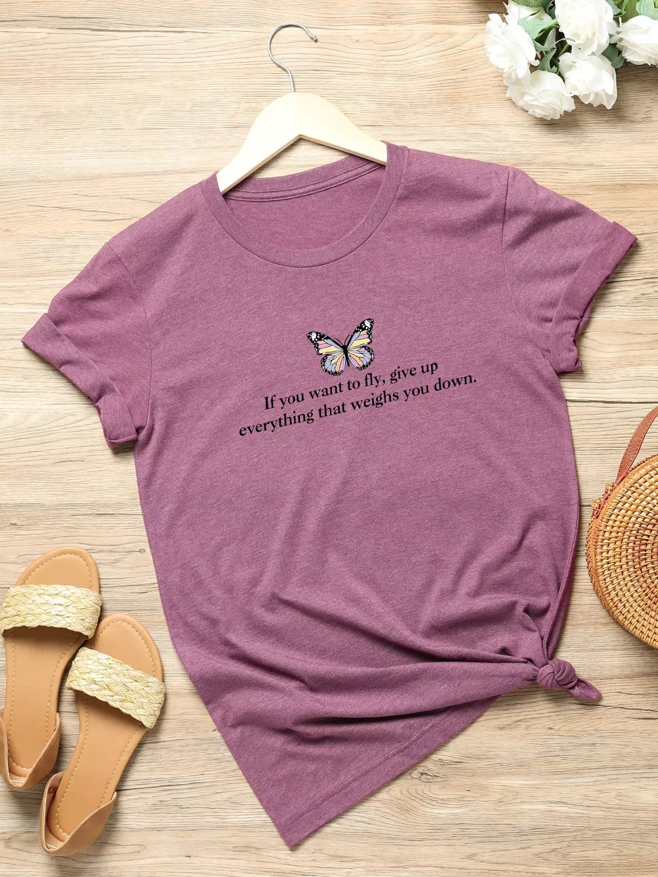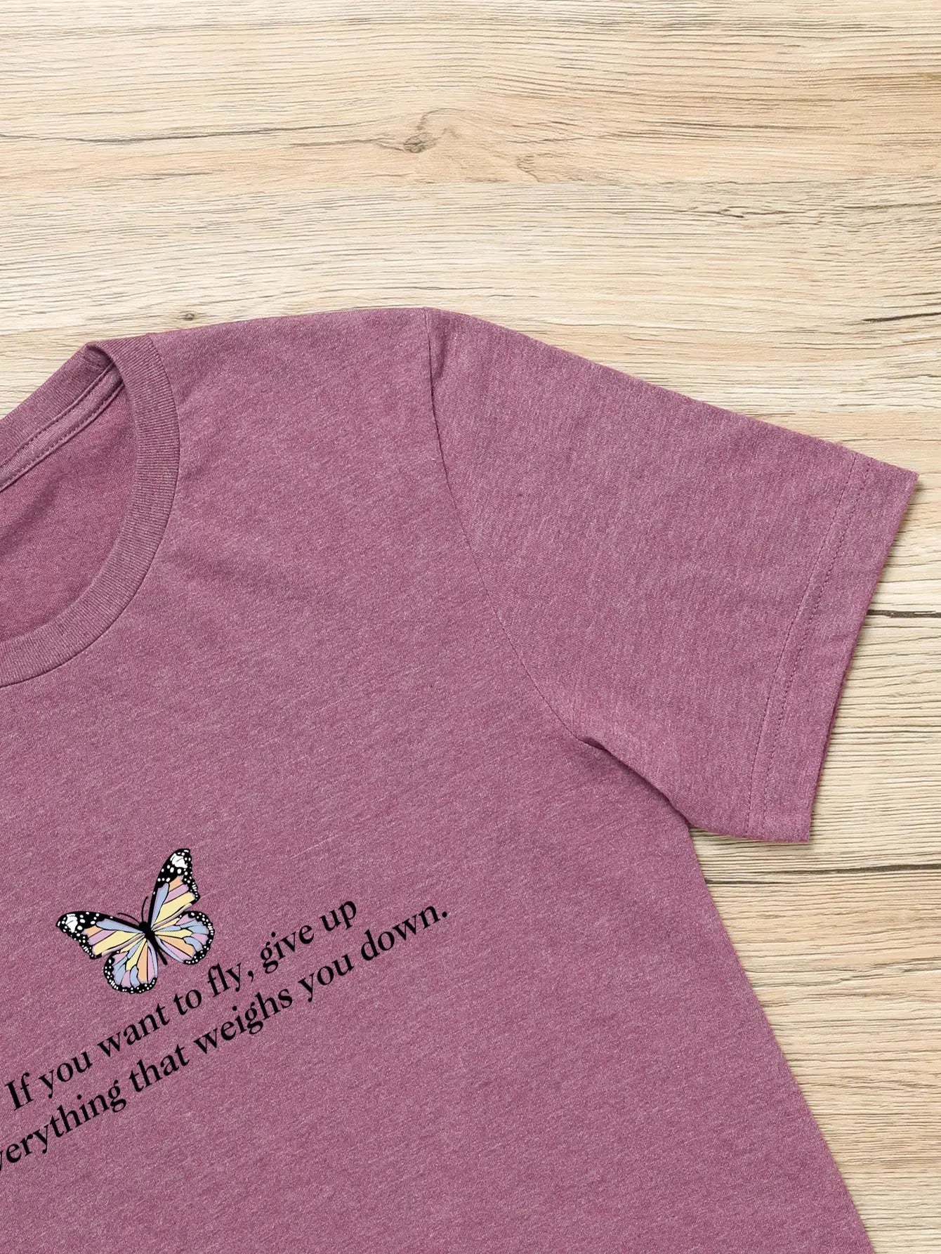تي شيرت بطبعة شعار وفراشة زائد