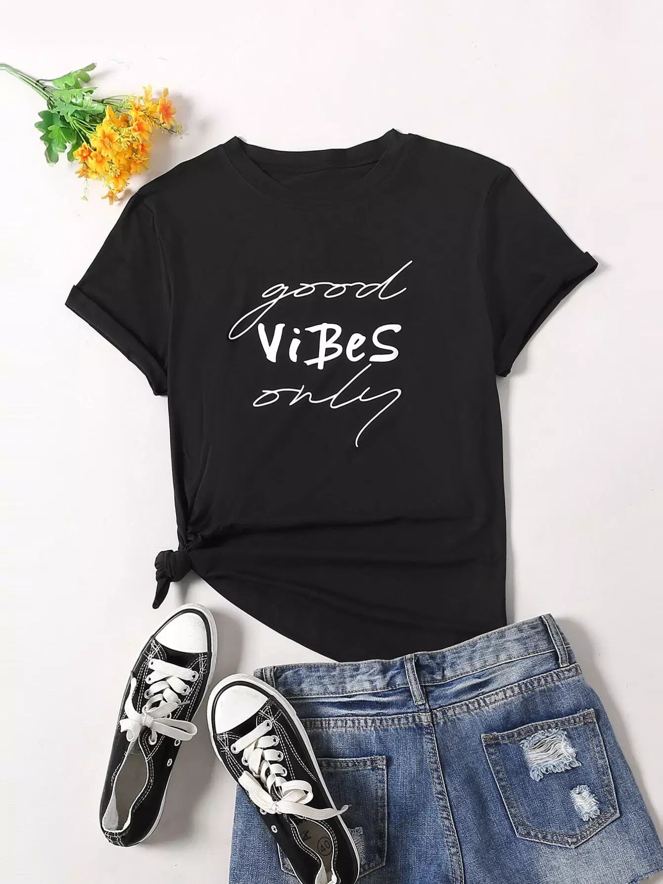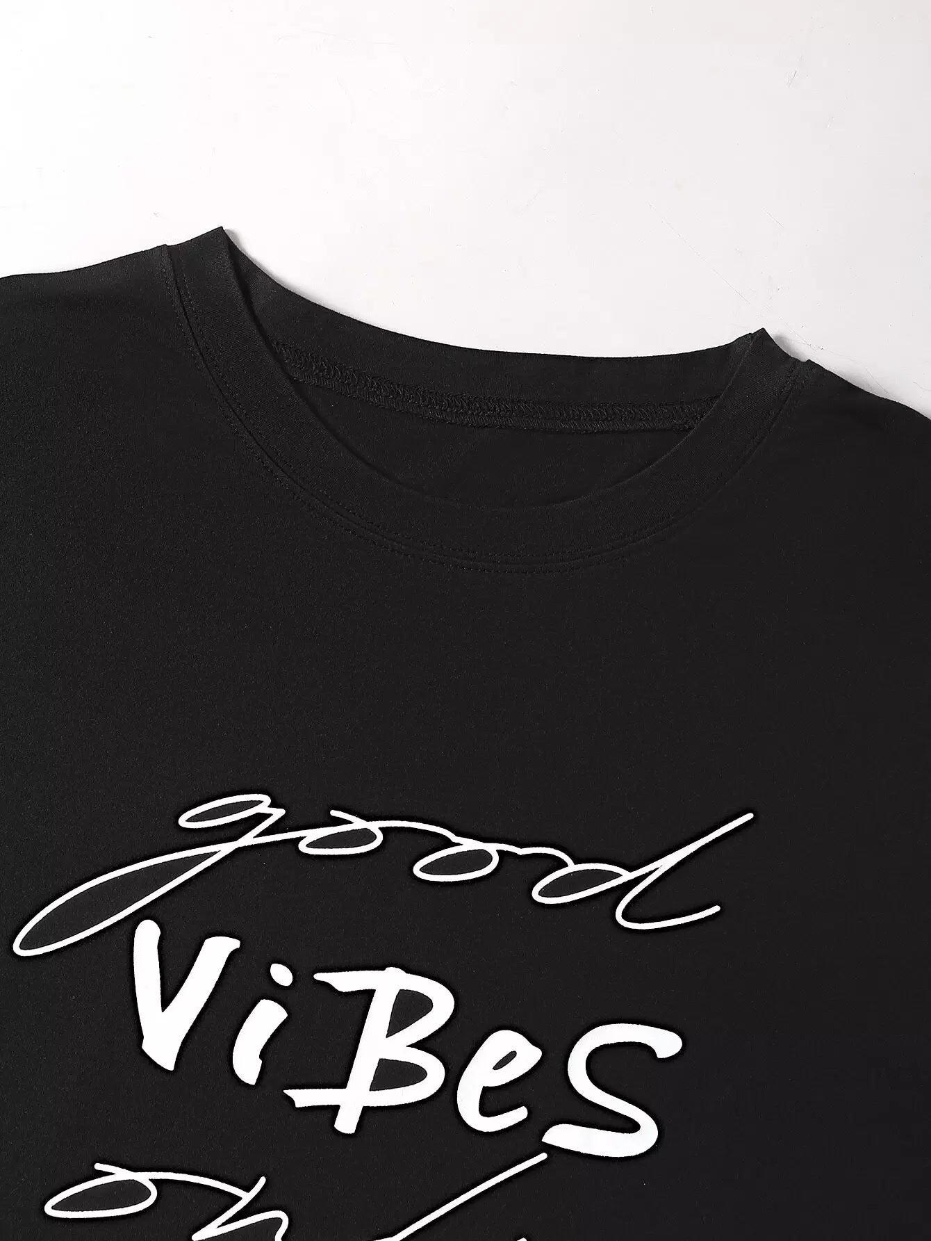 نحيف - مقاس كبير تي شيرت برقبة دائرية وشعار الجرافيك