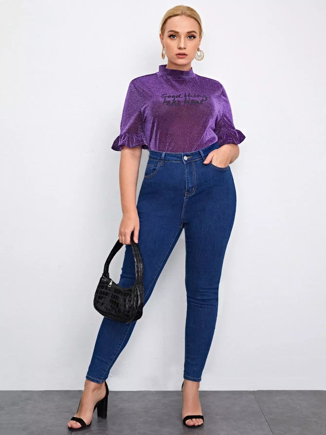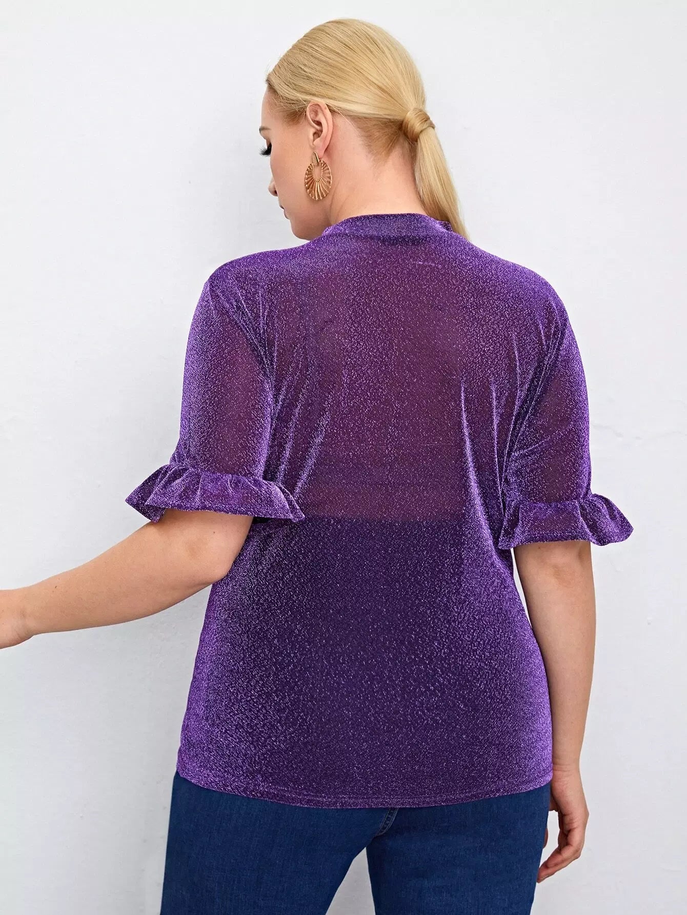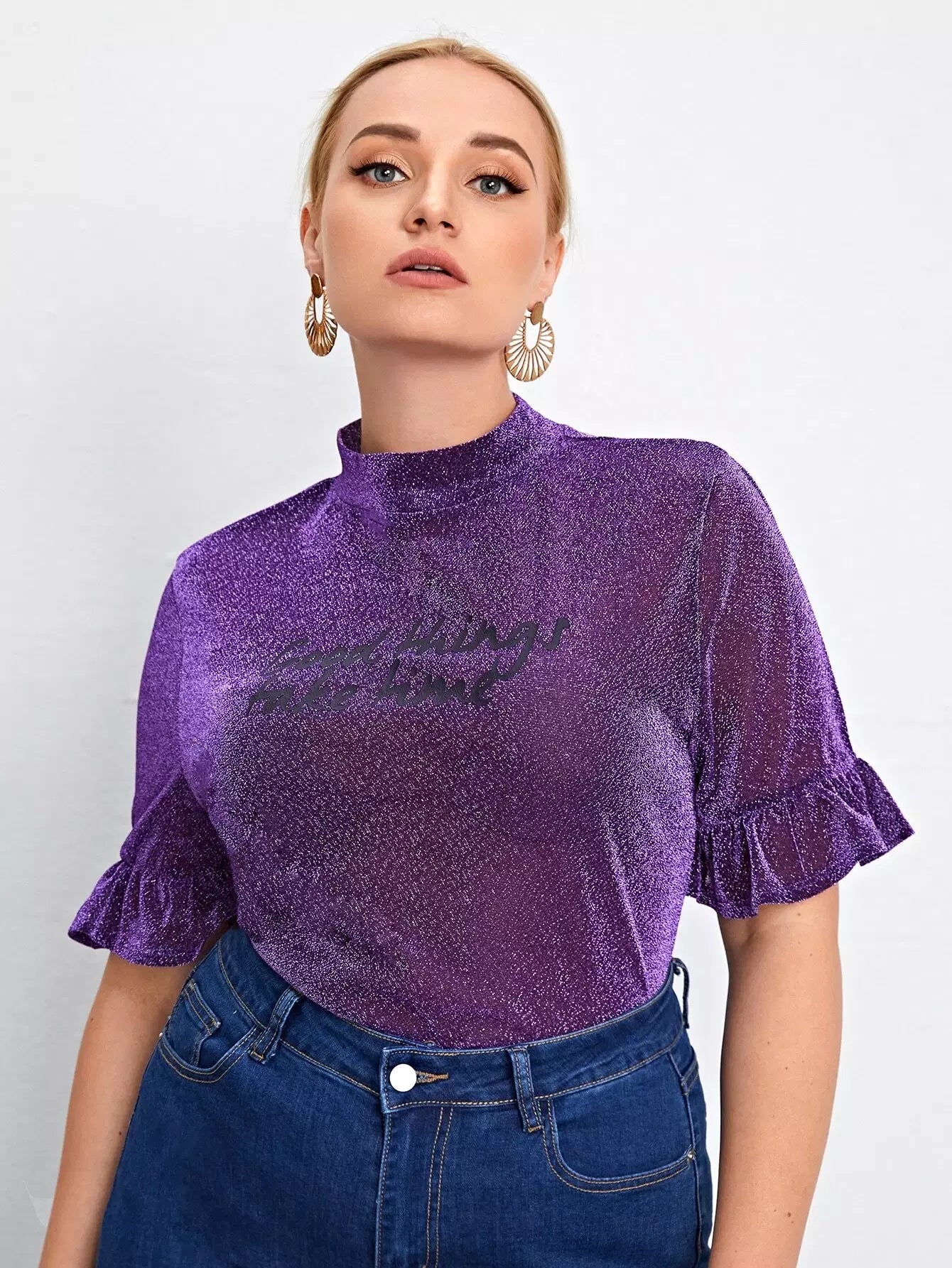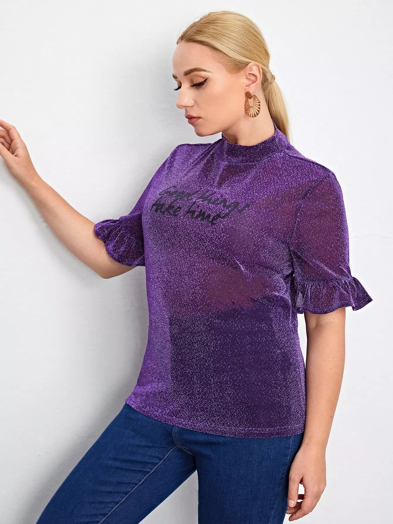 بلوزة بأكمام جرافيك بأكمام منفوشة لامعة