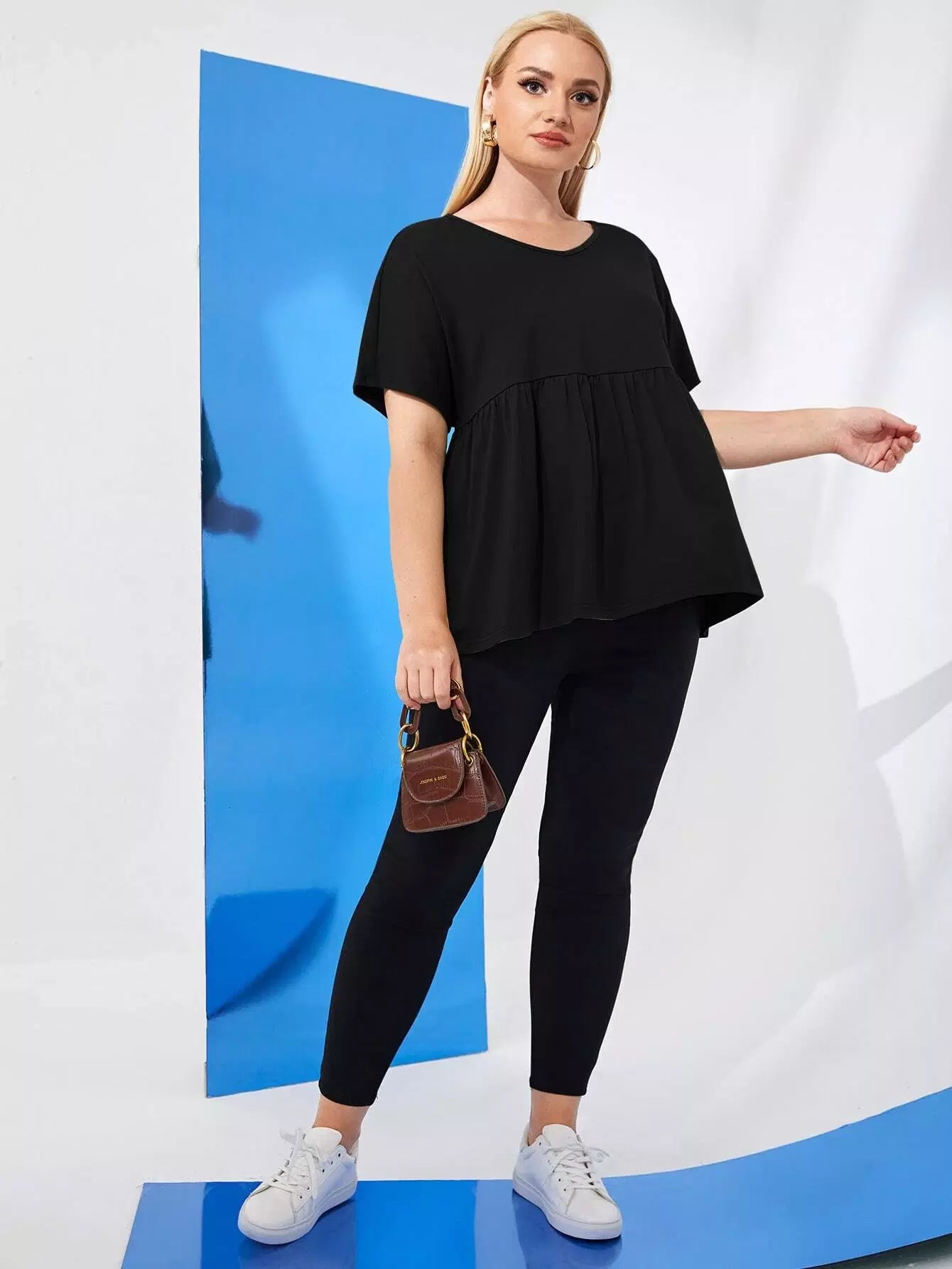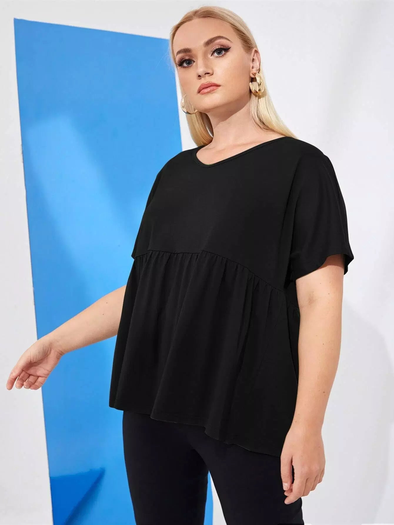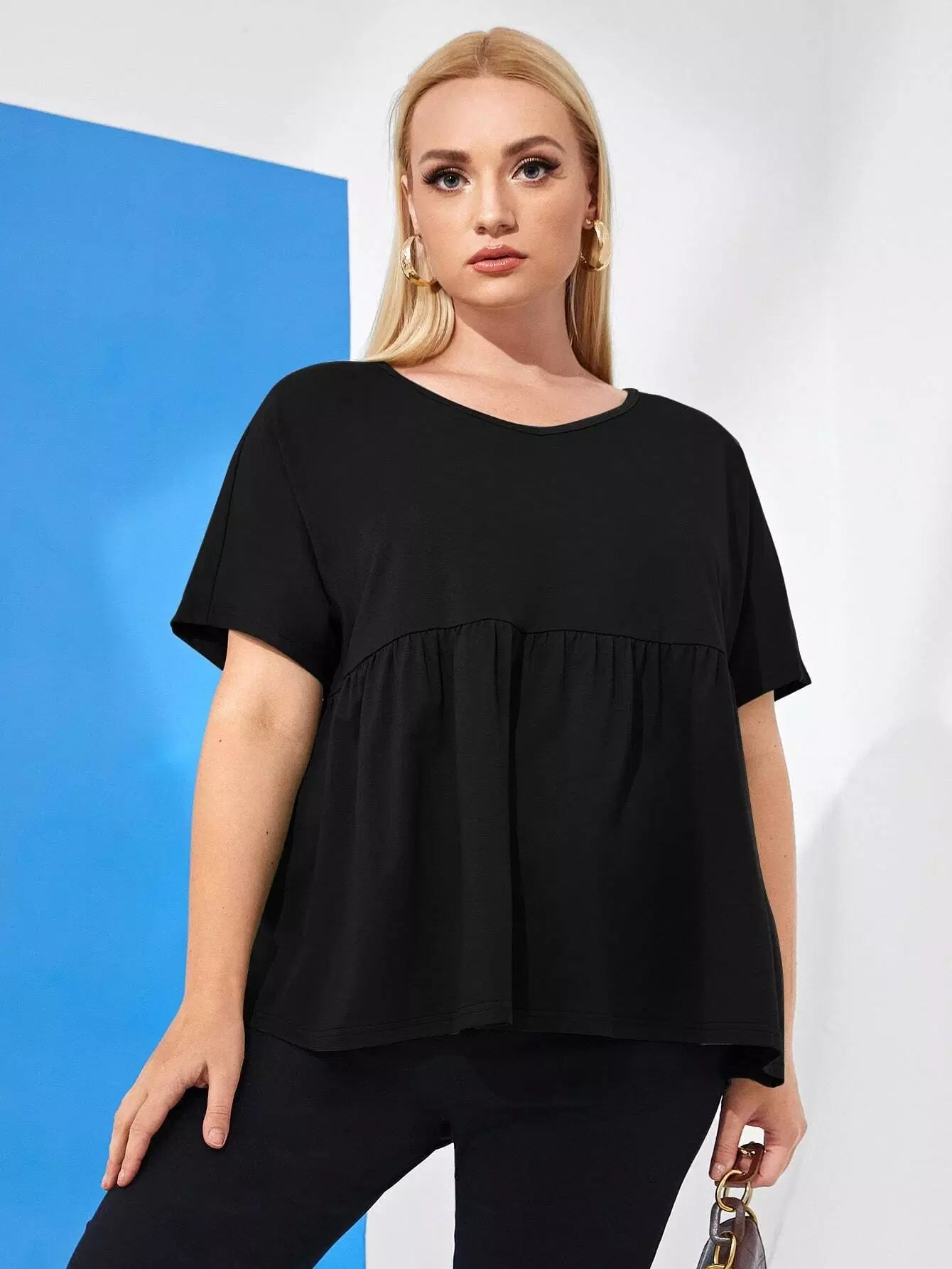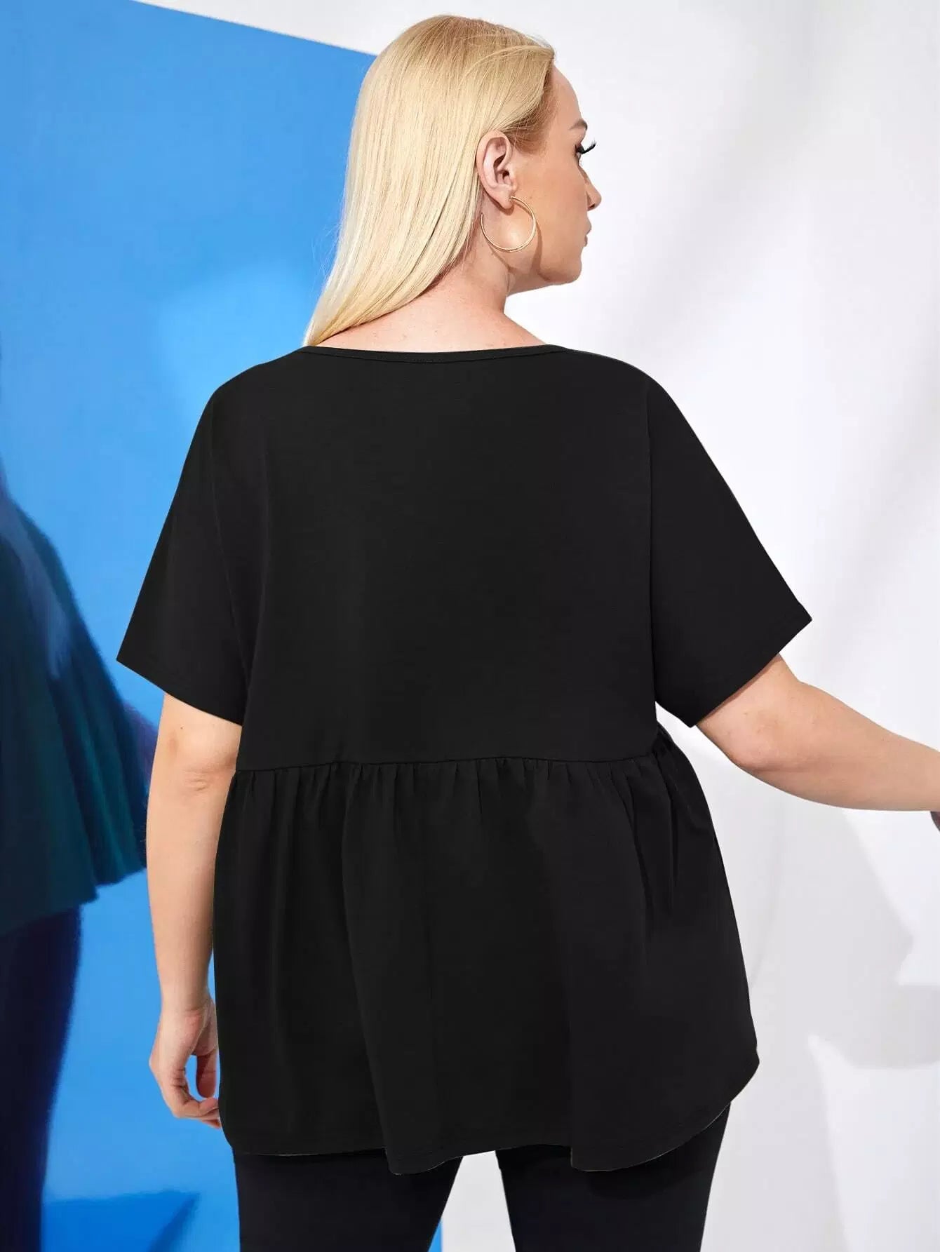 تي شيرت بأكمام باتوينغ سادة بأكمام باتوينغ زائد