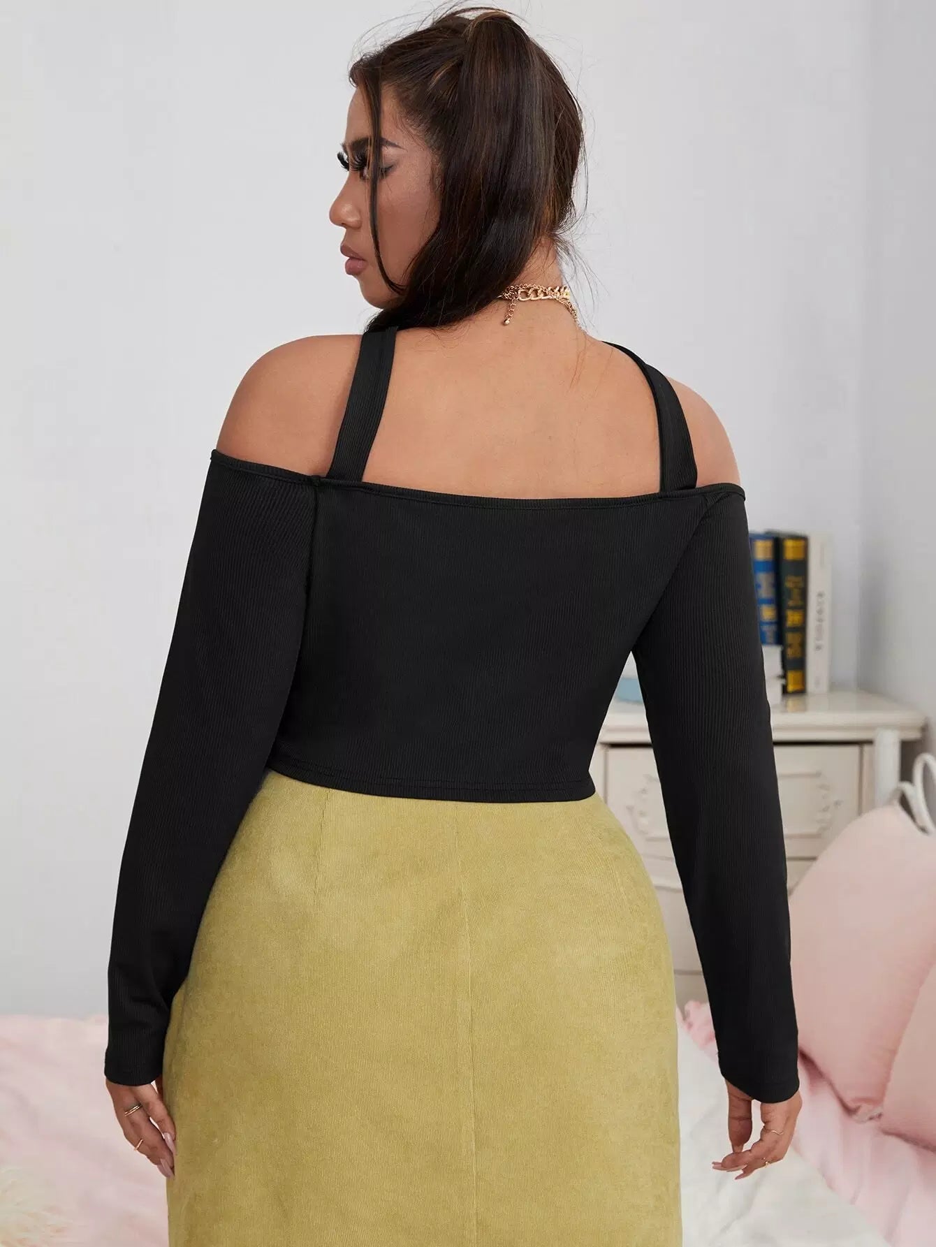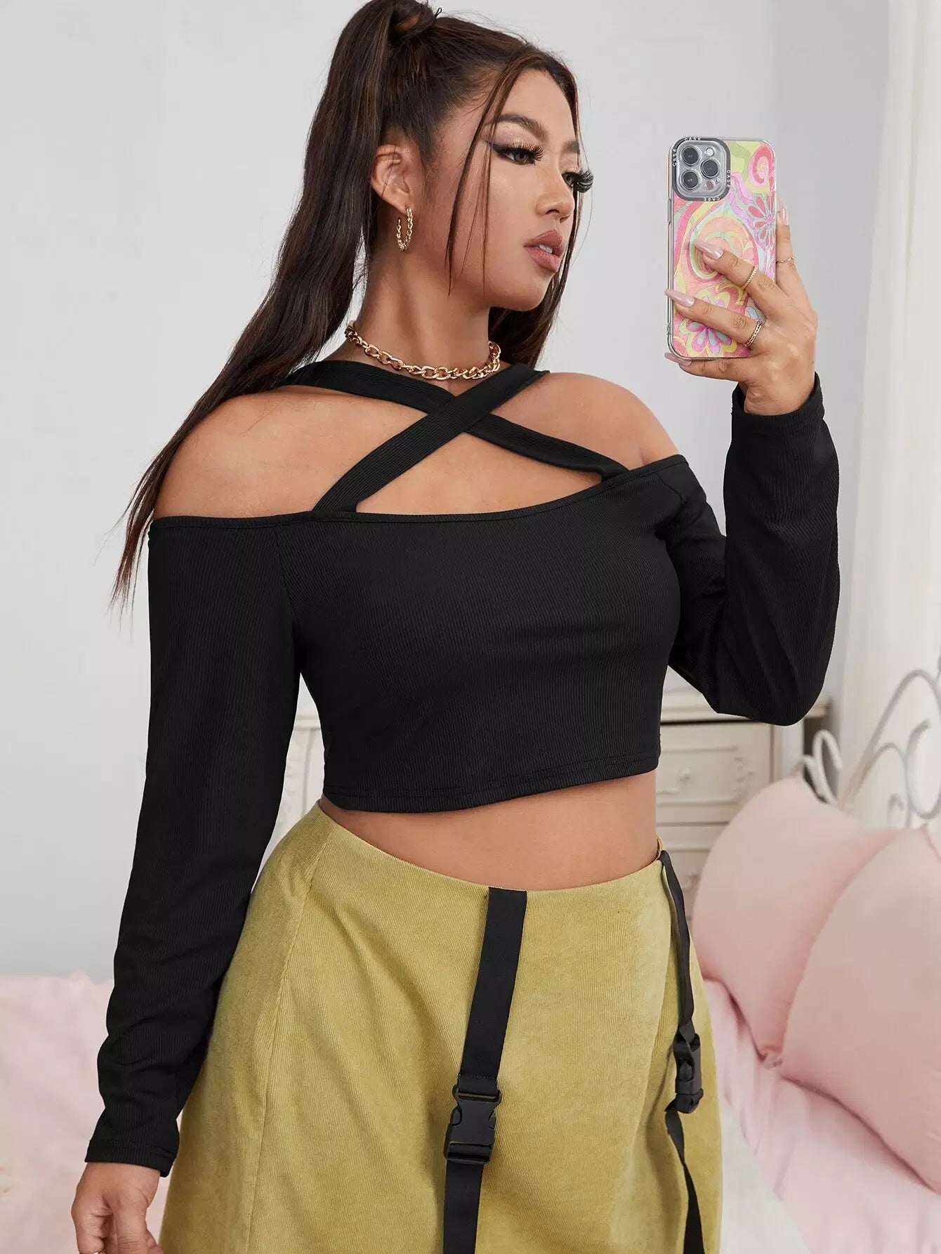 تي شيرت قصير قصير كروس كروس سادة بلس