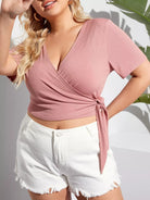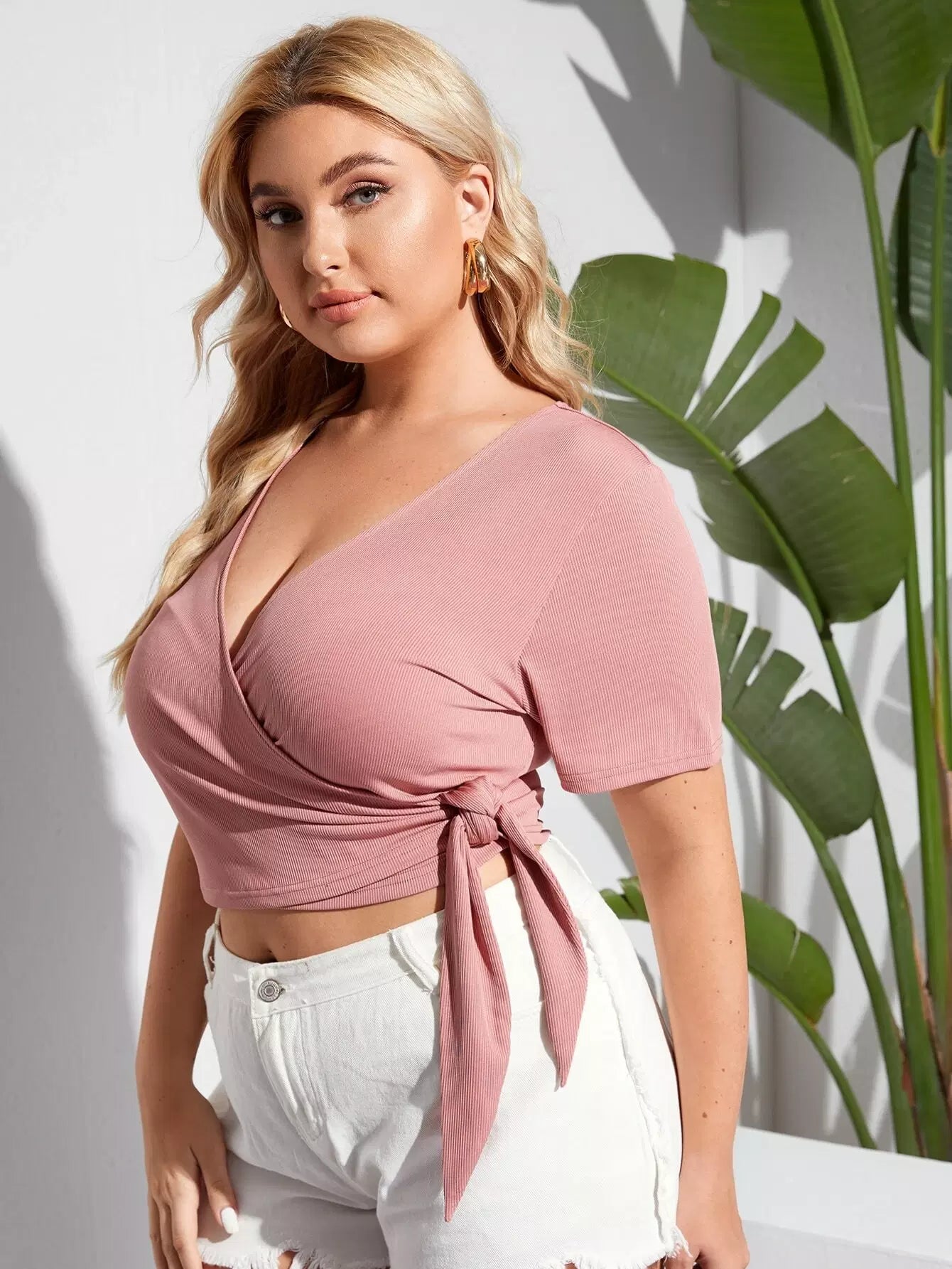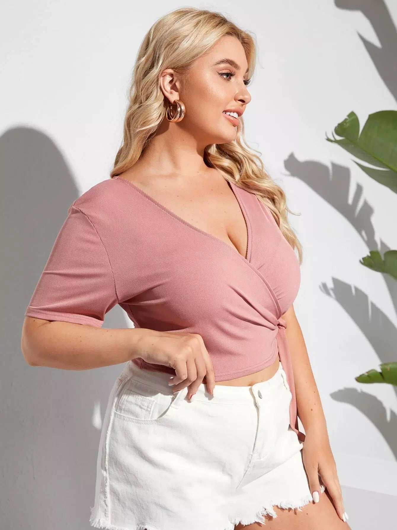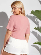 تي شيرت قصير قصير بعقدة جانبية سادة بلس