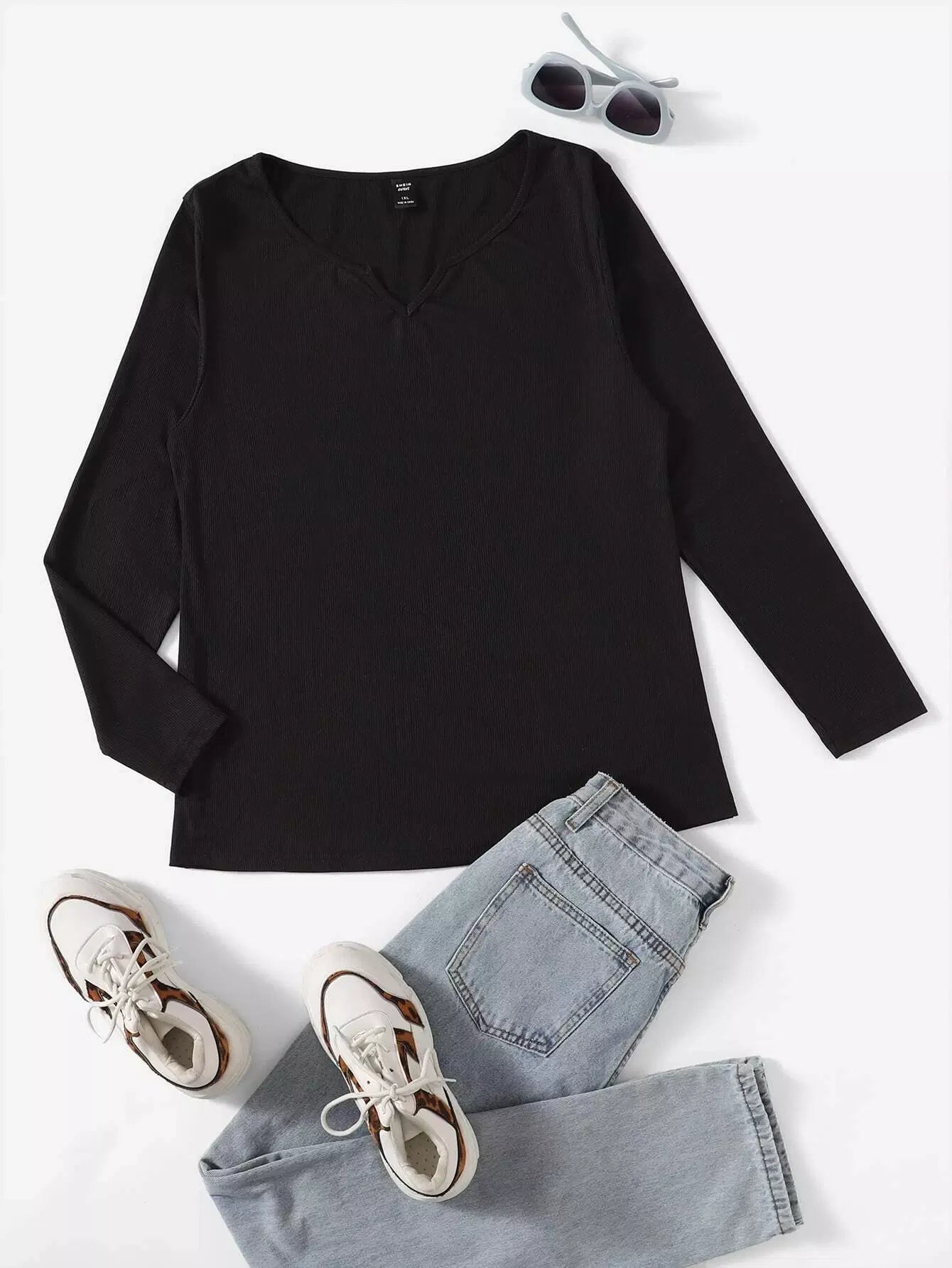 تي شيرت برقبة رقبة مفتوح بلاس سادة
