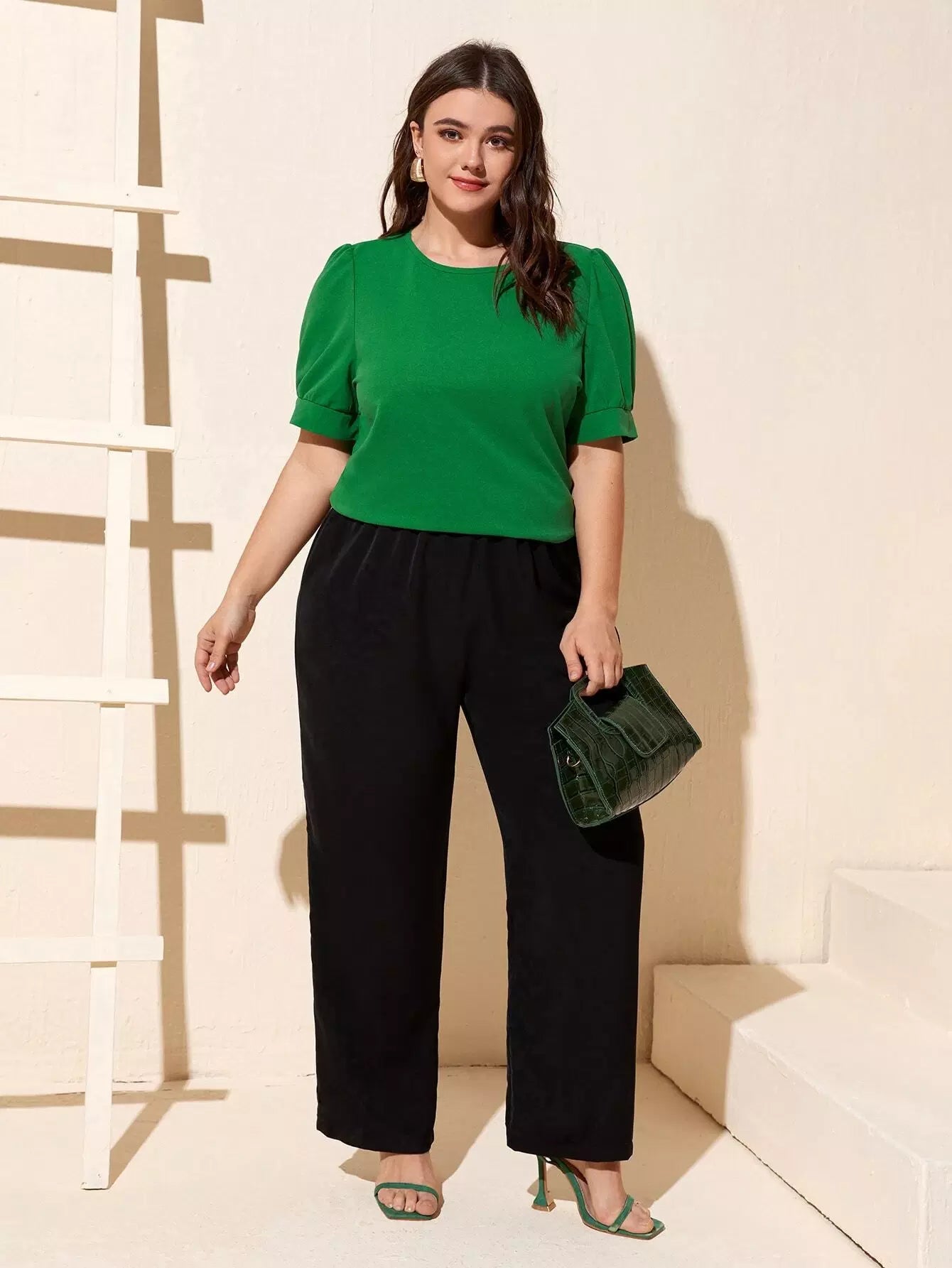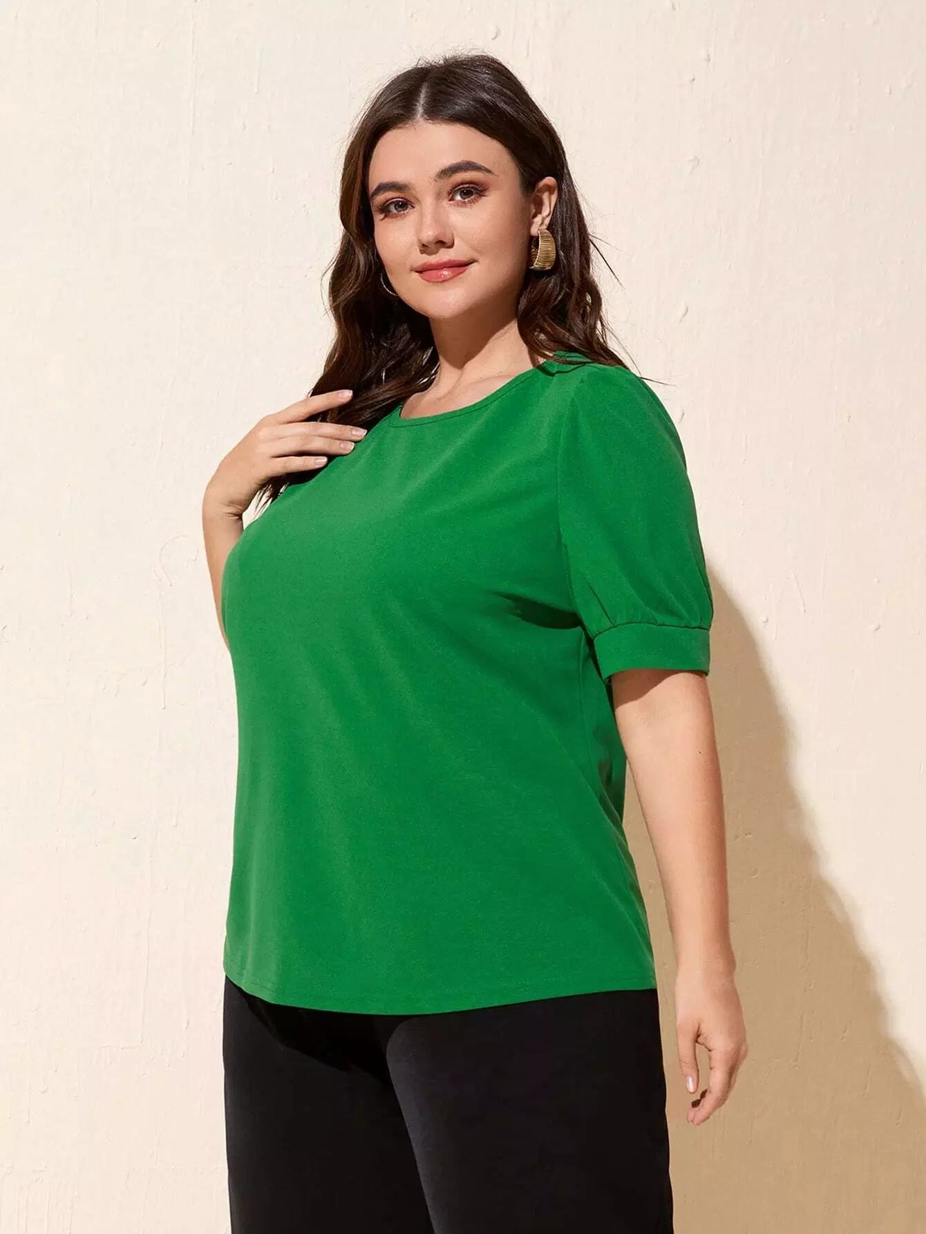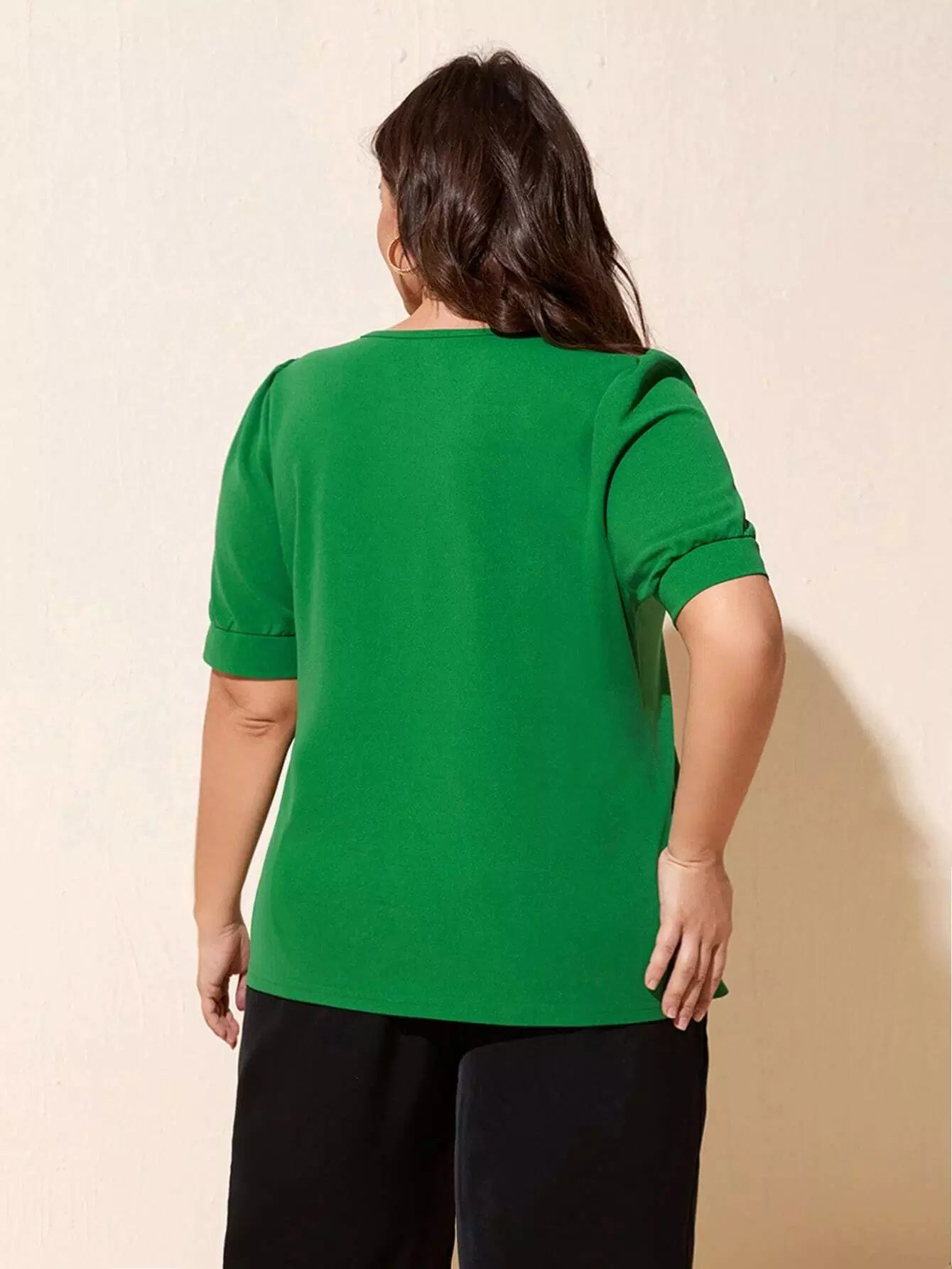 تي شيرت بأكمام منتفخة سادة بلاس