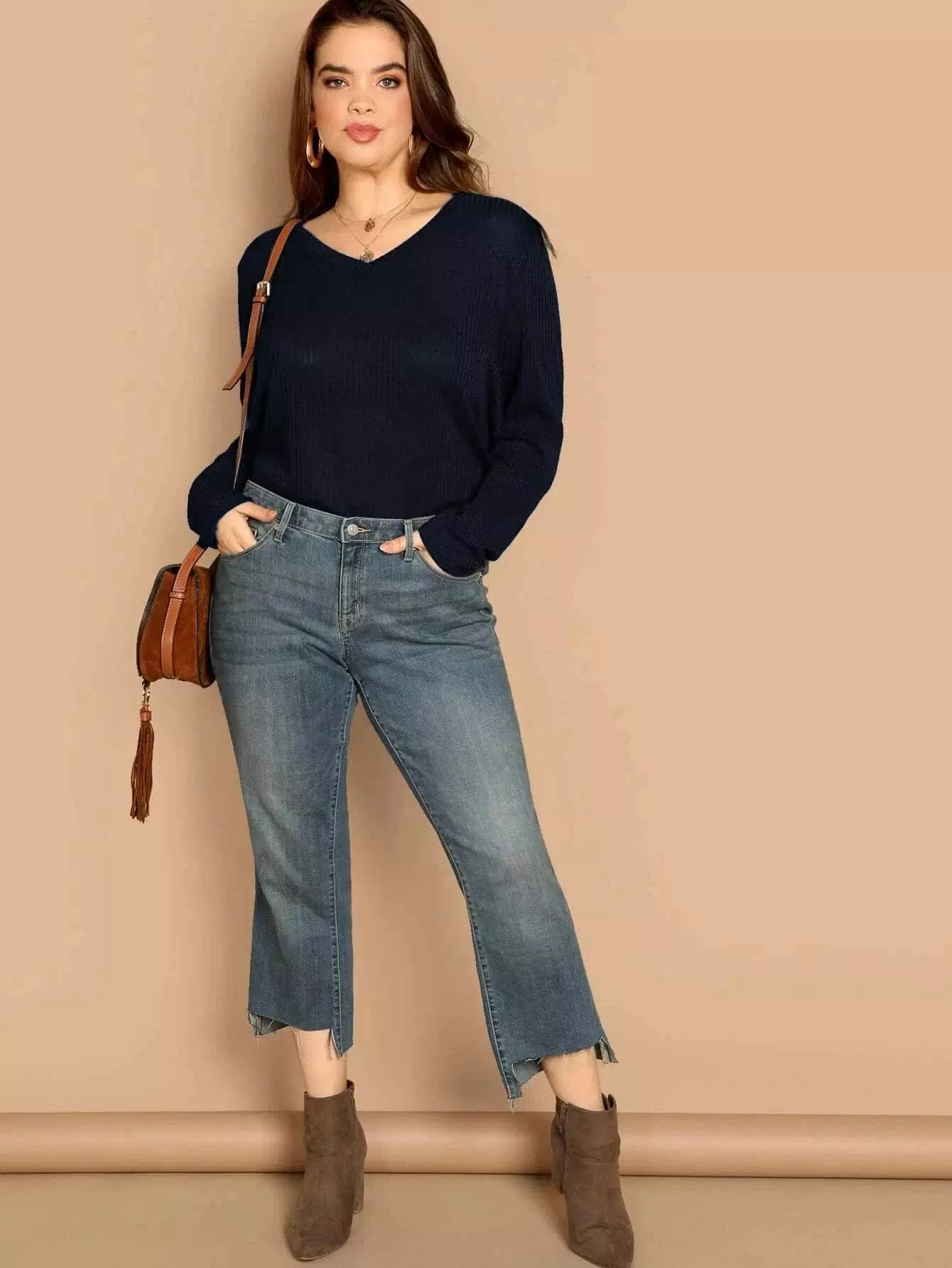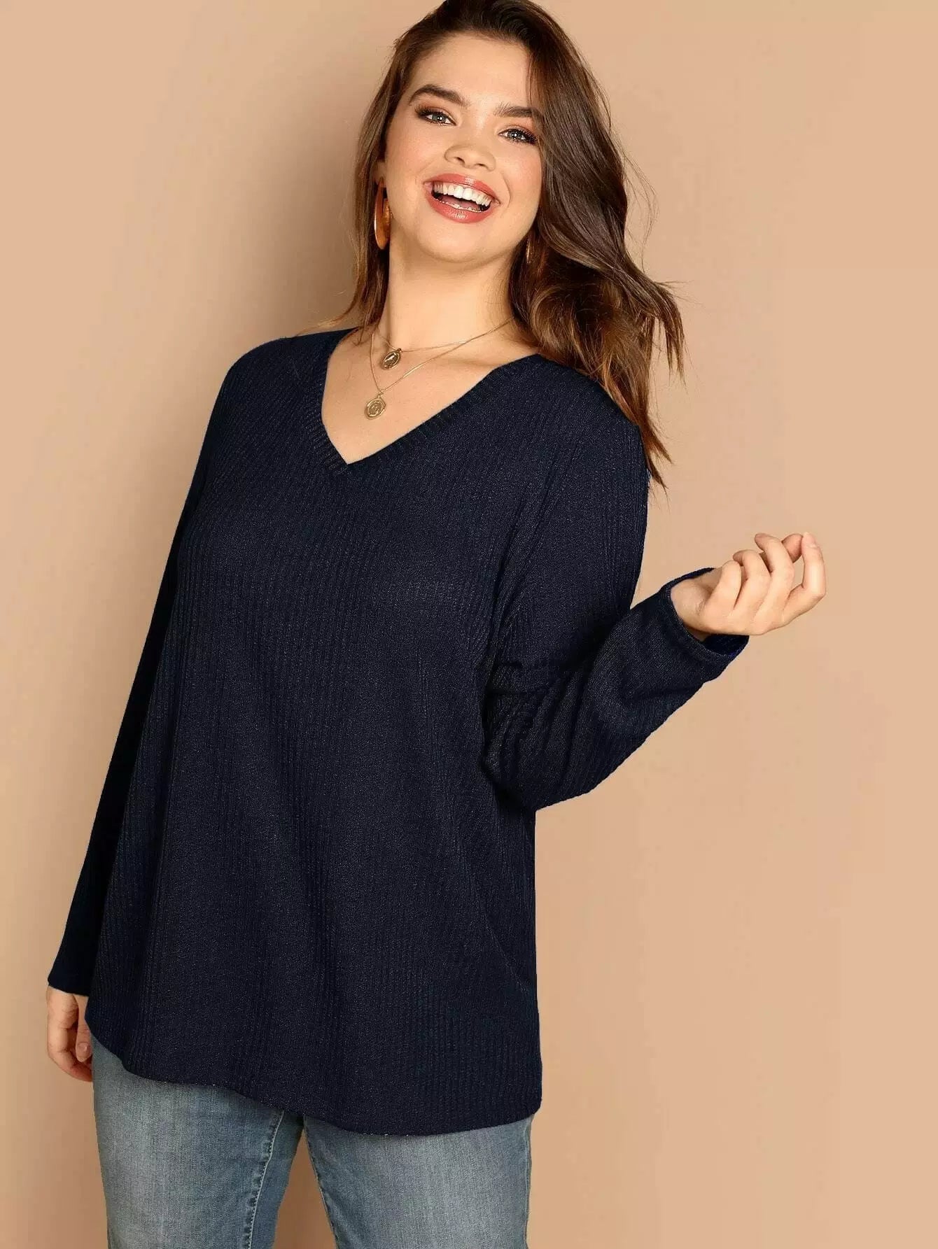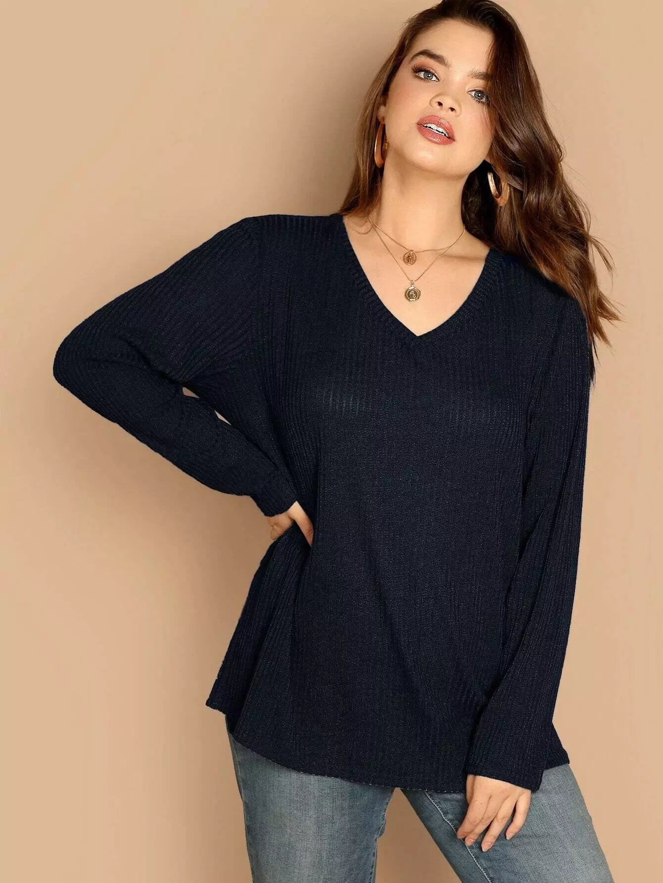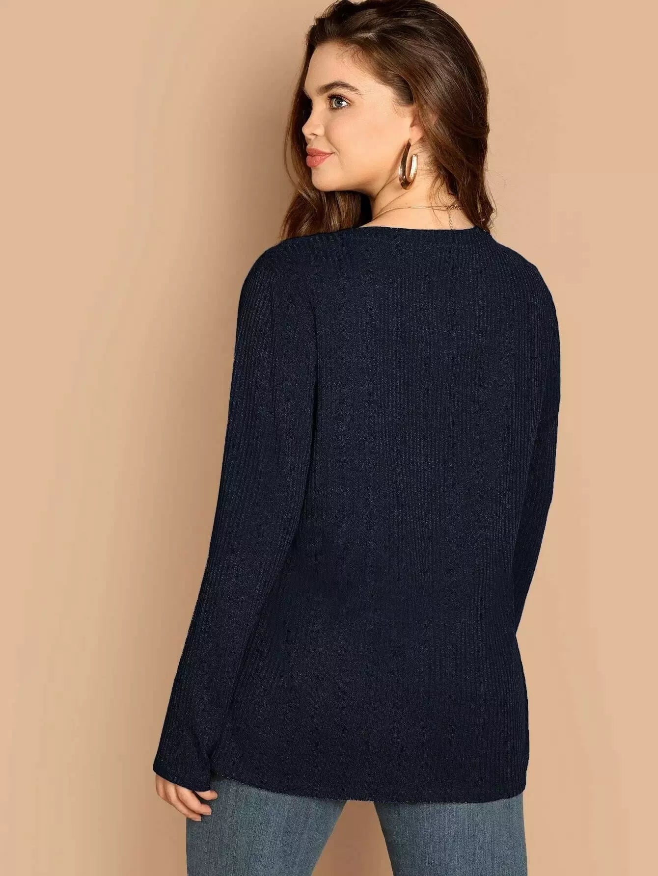 بلوزة بلاس سادة محبوكة من نسيج مضلع سادة