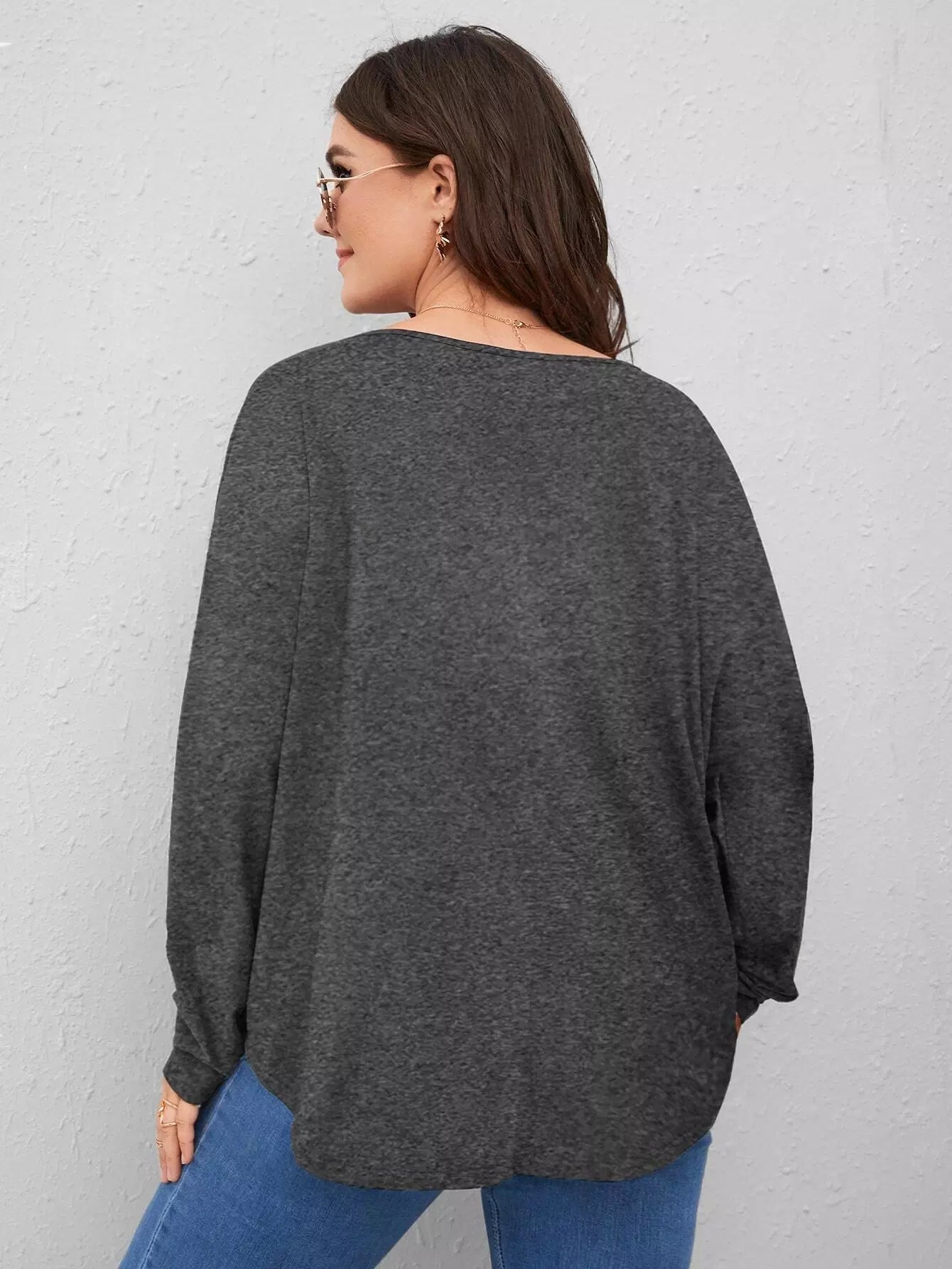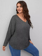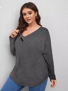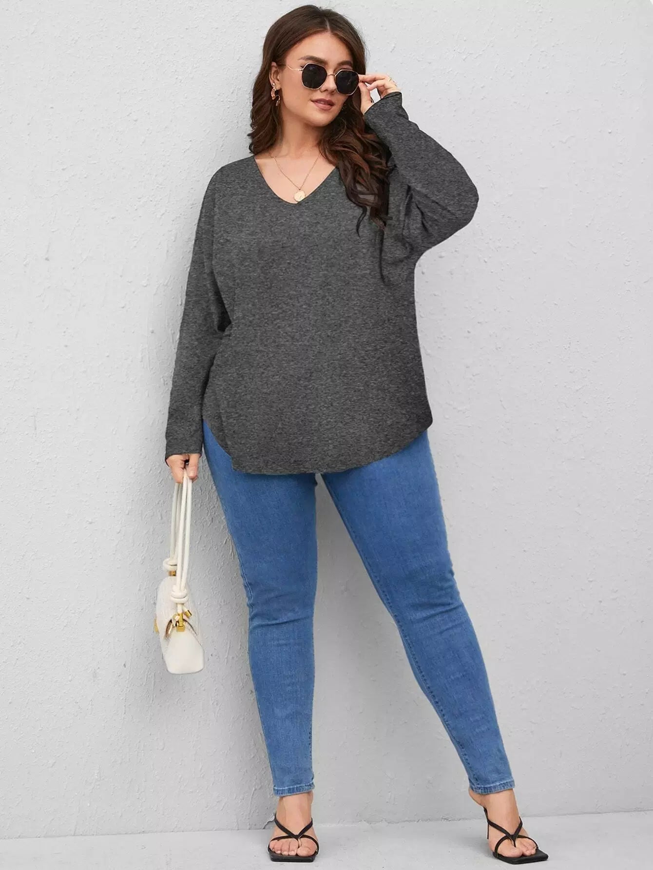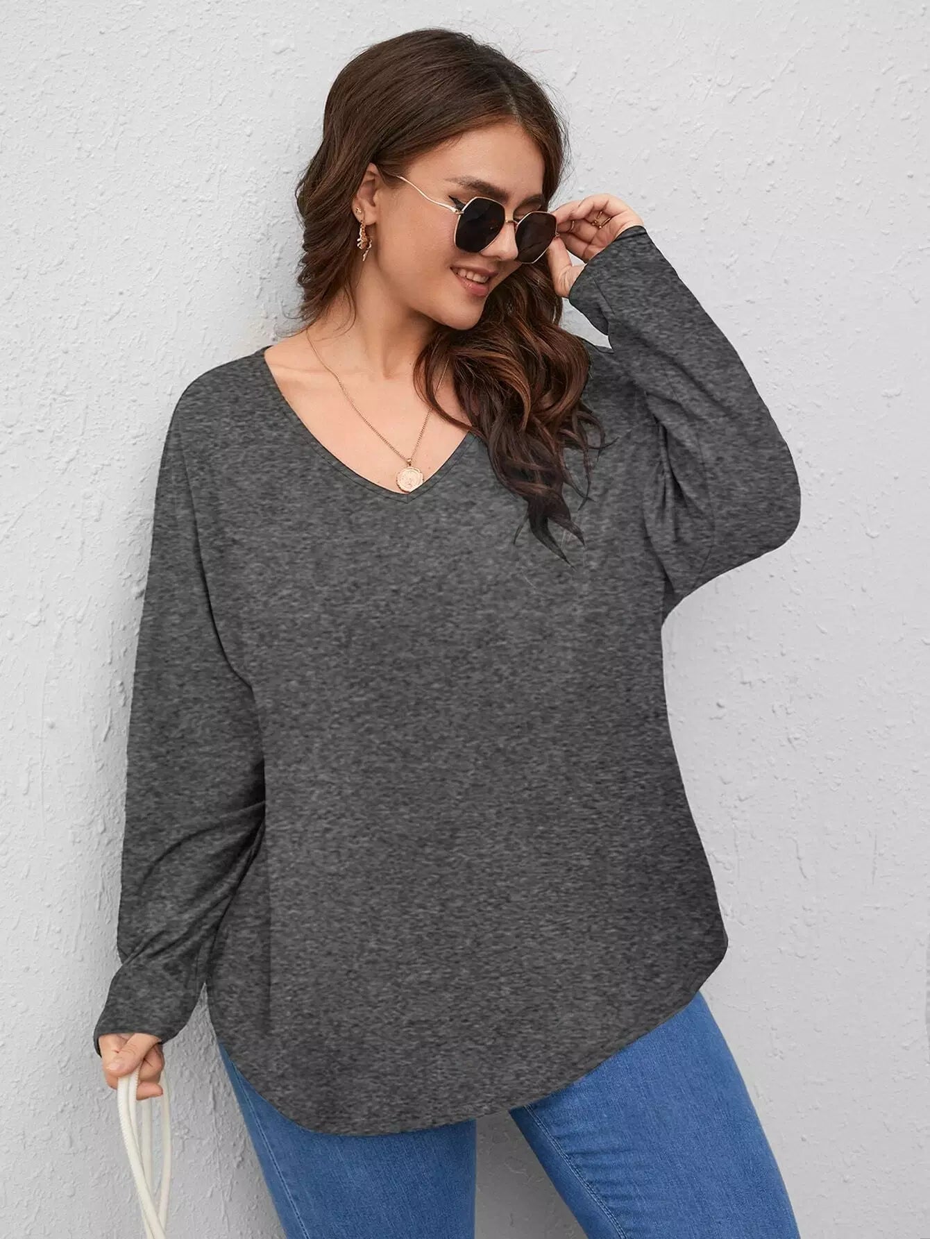 نحيف - مقاس كبير تي شيرت سادة برقبة على شكل حرف V
