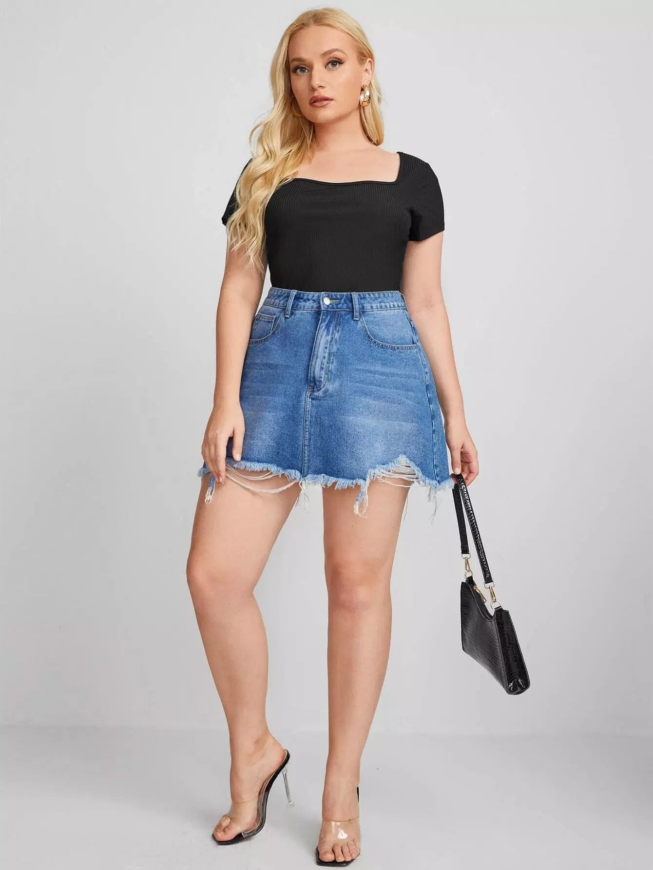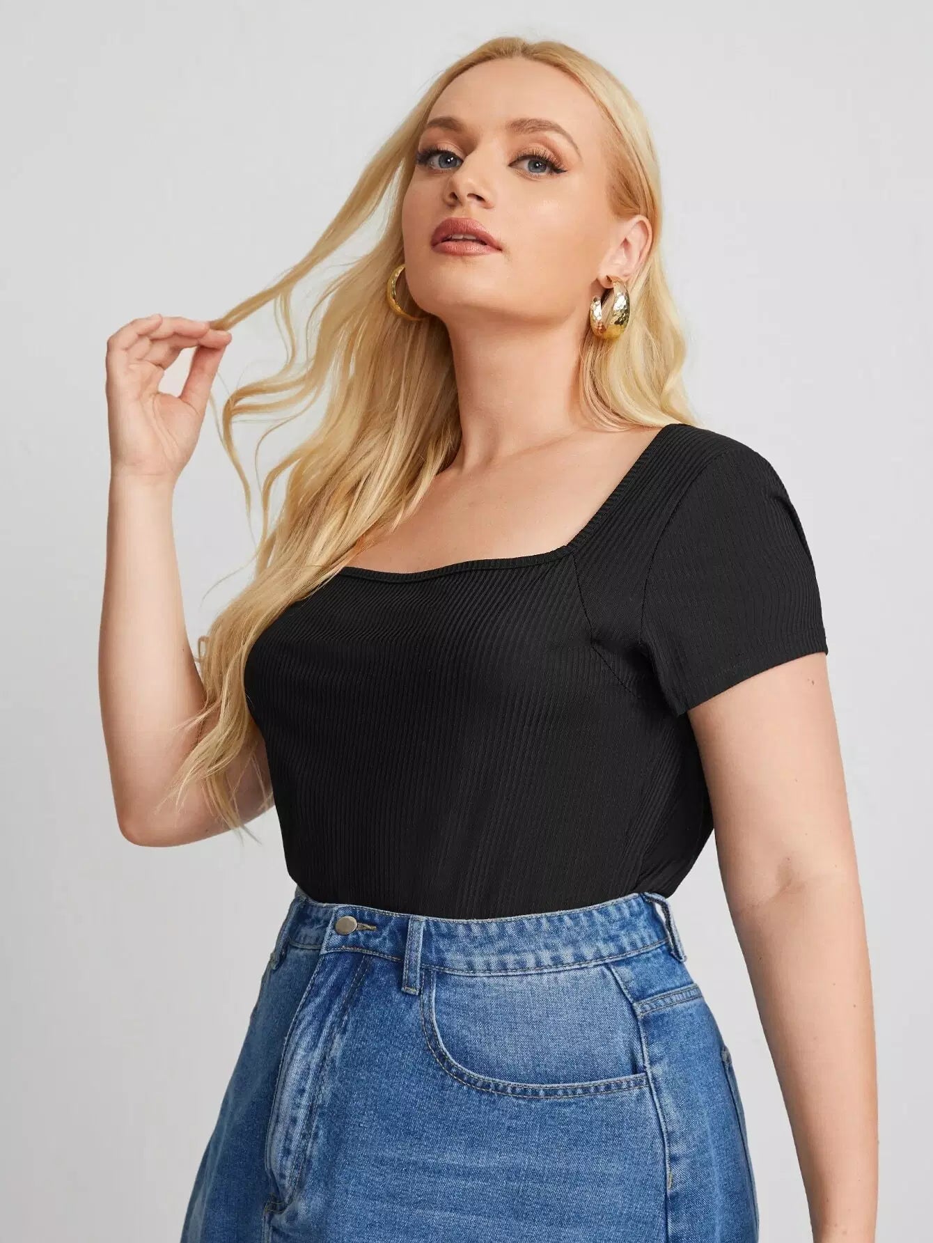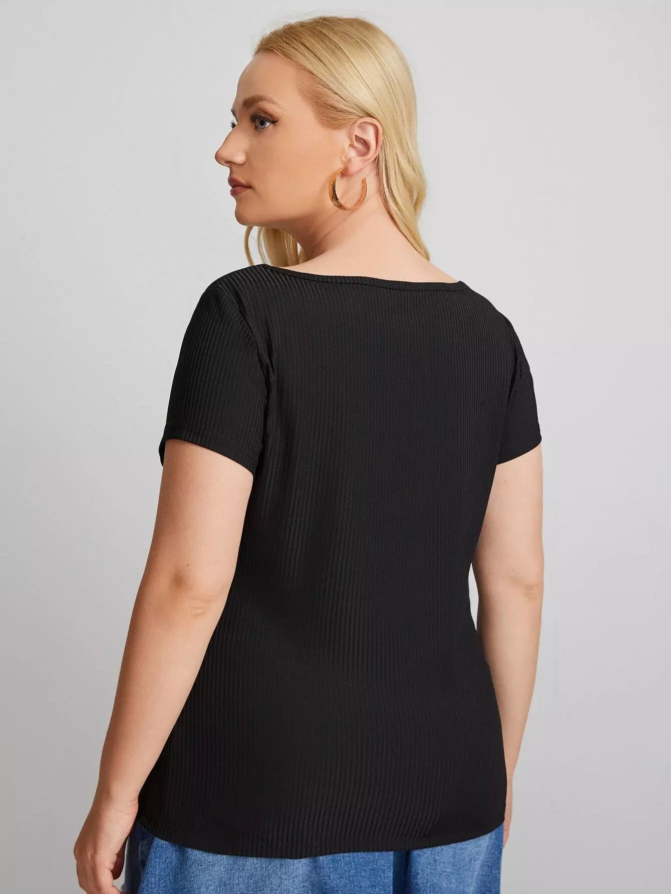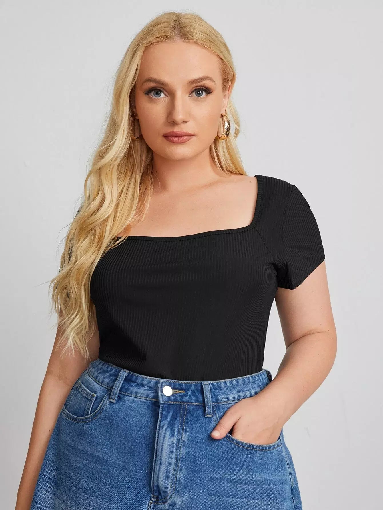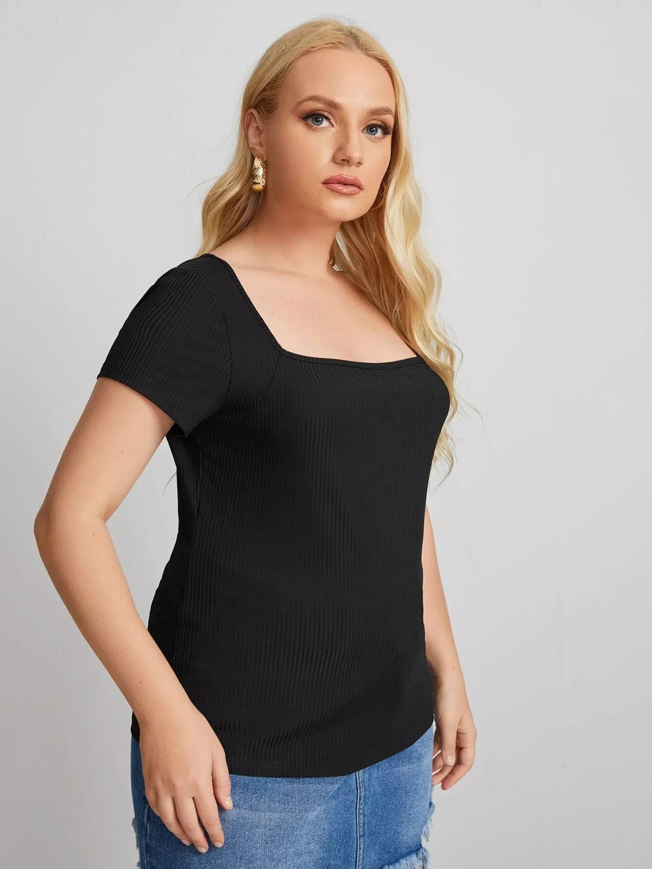 تي شيرت برقبة مربعة برقبة مربعة ومحبوكة