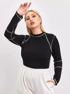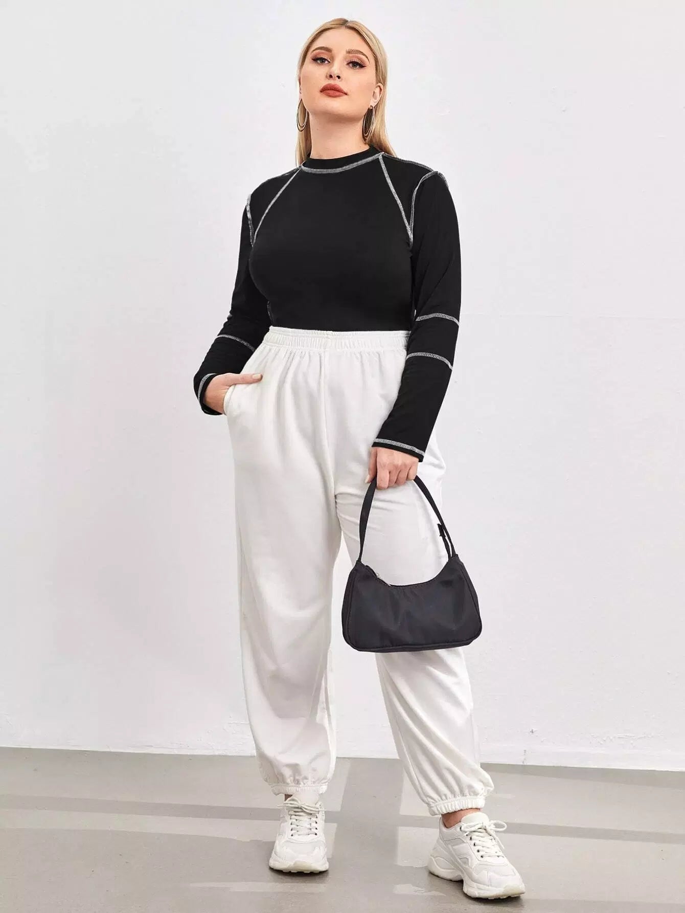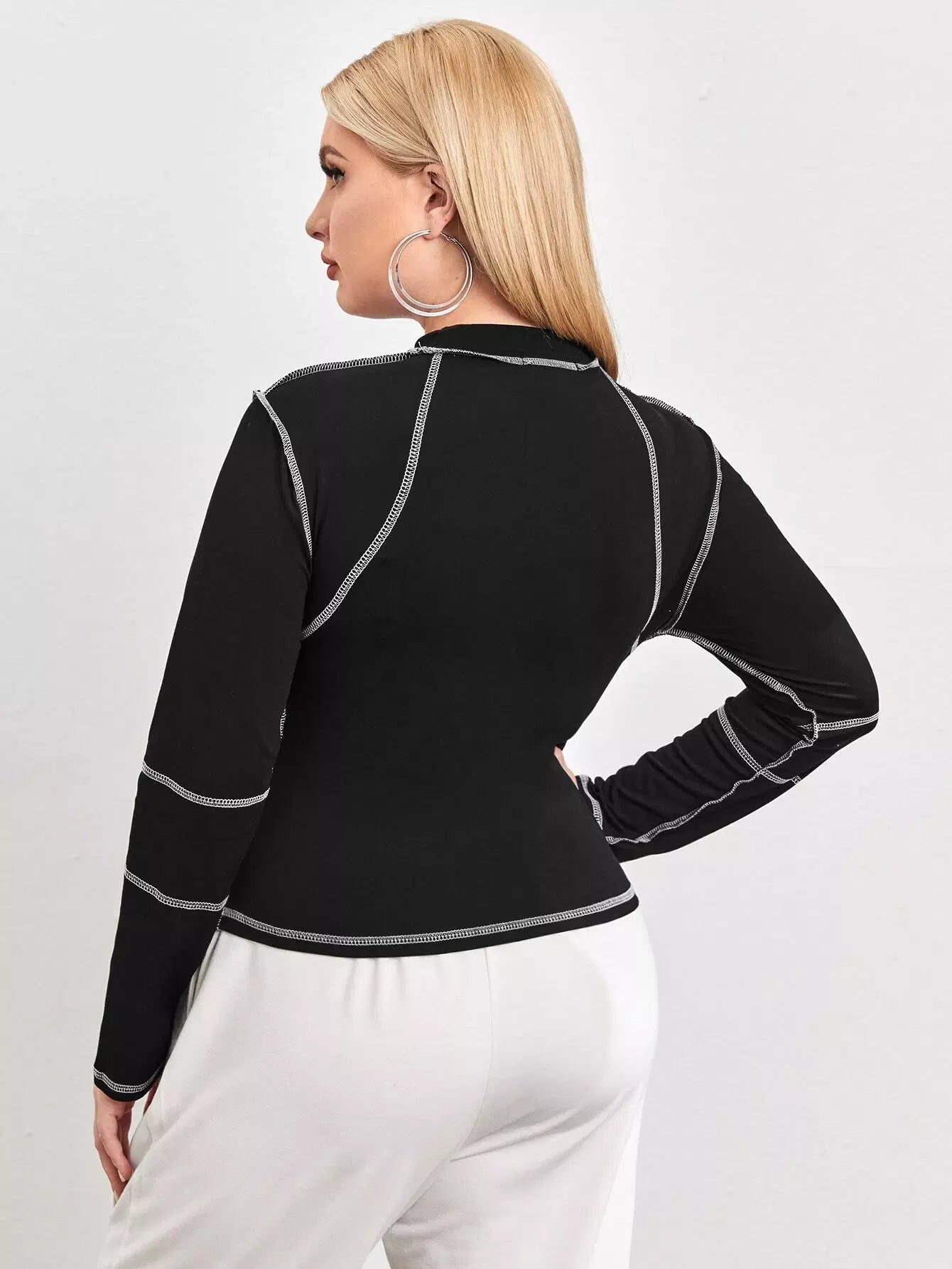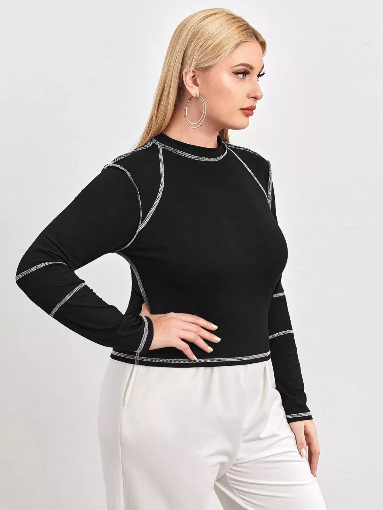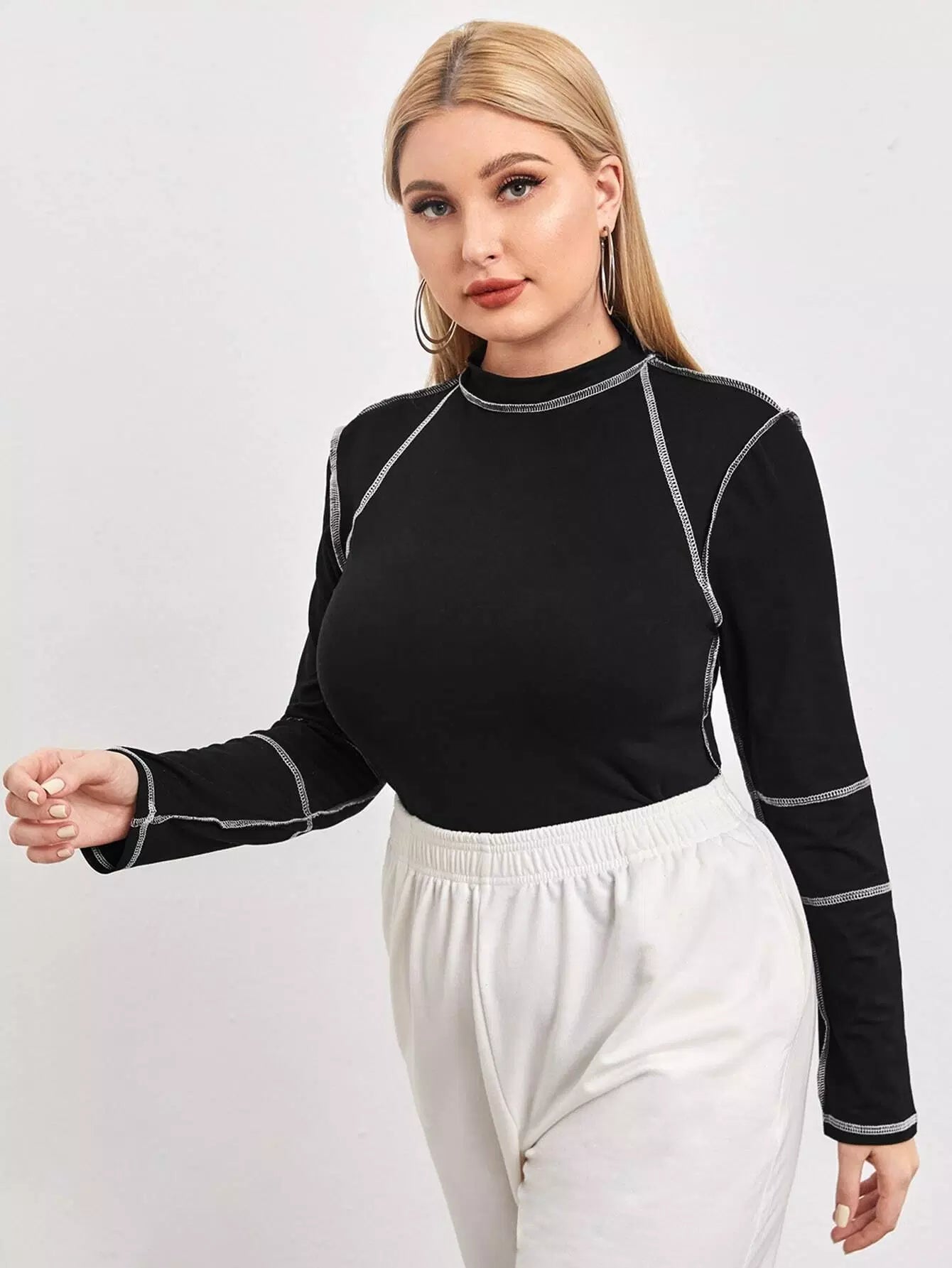 نحيف - مقاس كبير تي شيرت بتفاصيل زخرفة الغرز