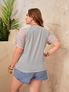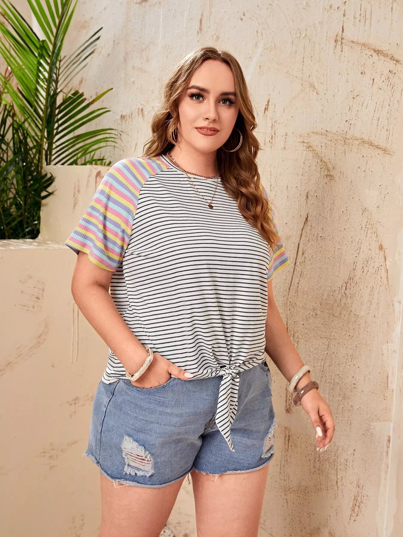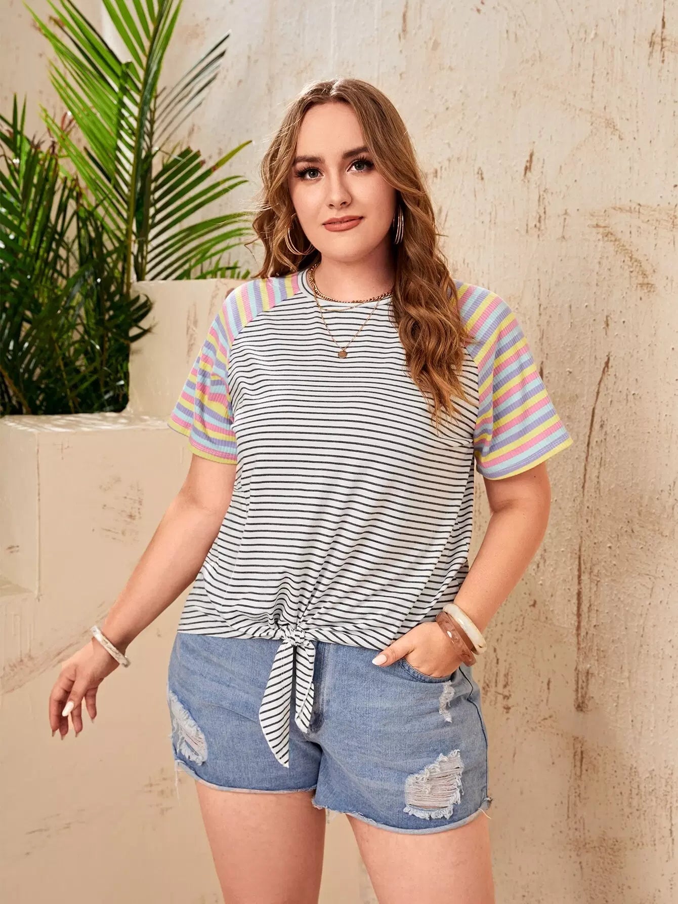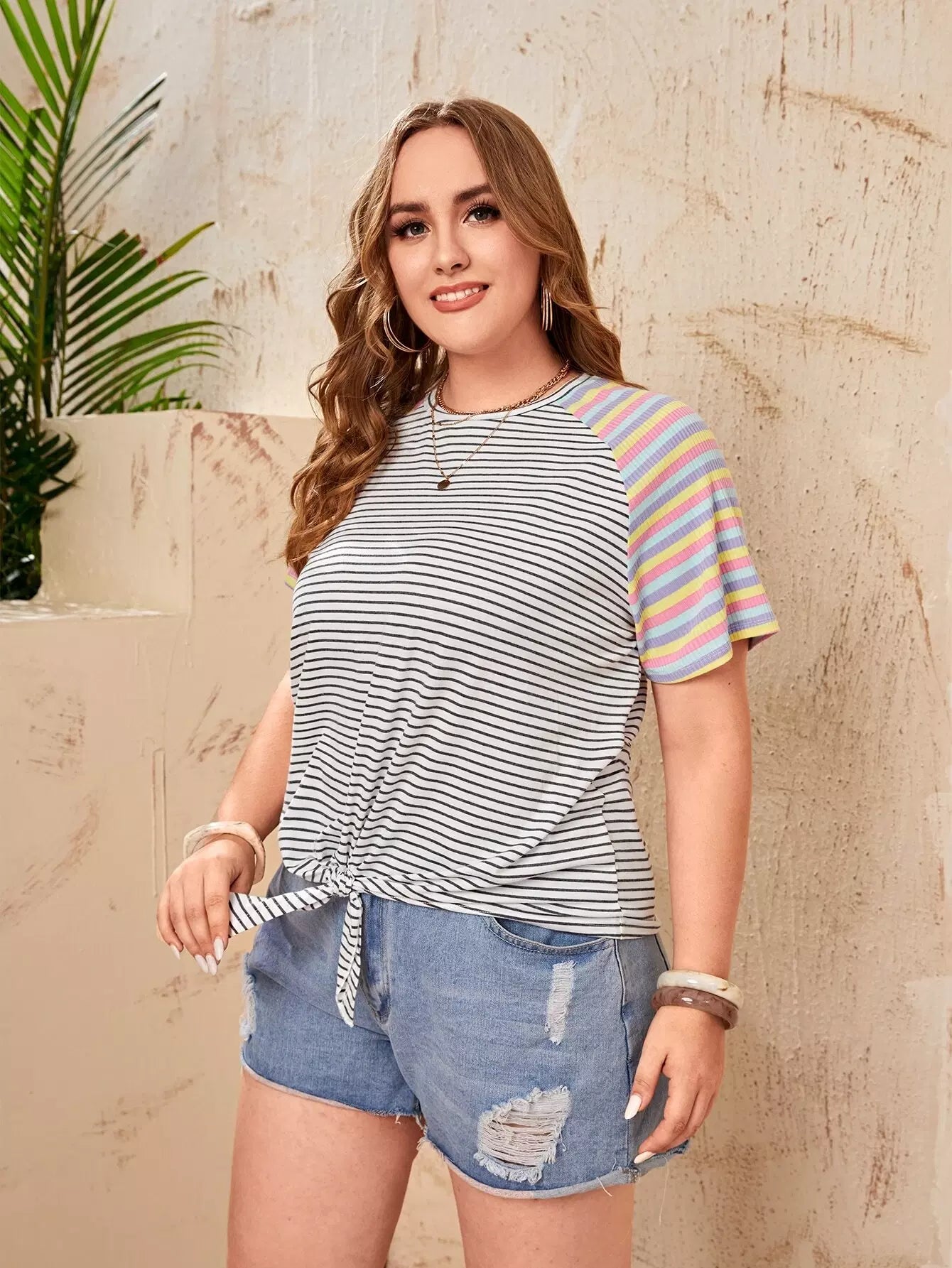 بلوزة بحاشية مخططة بعقدة مخططة بلاس