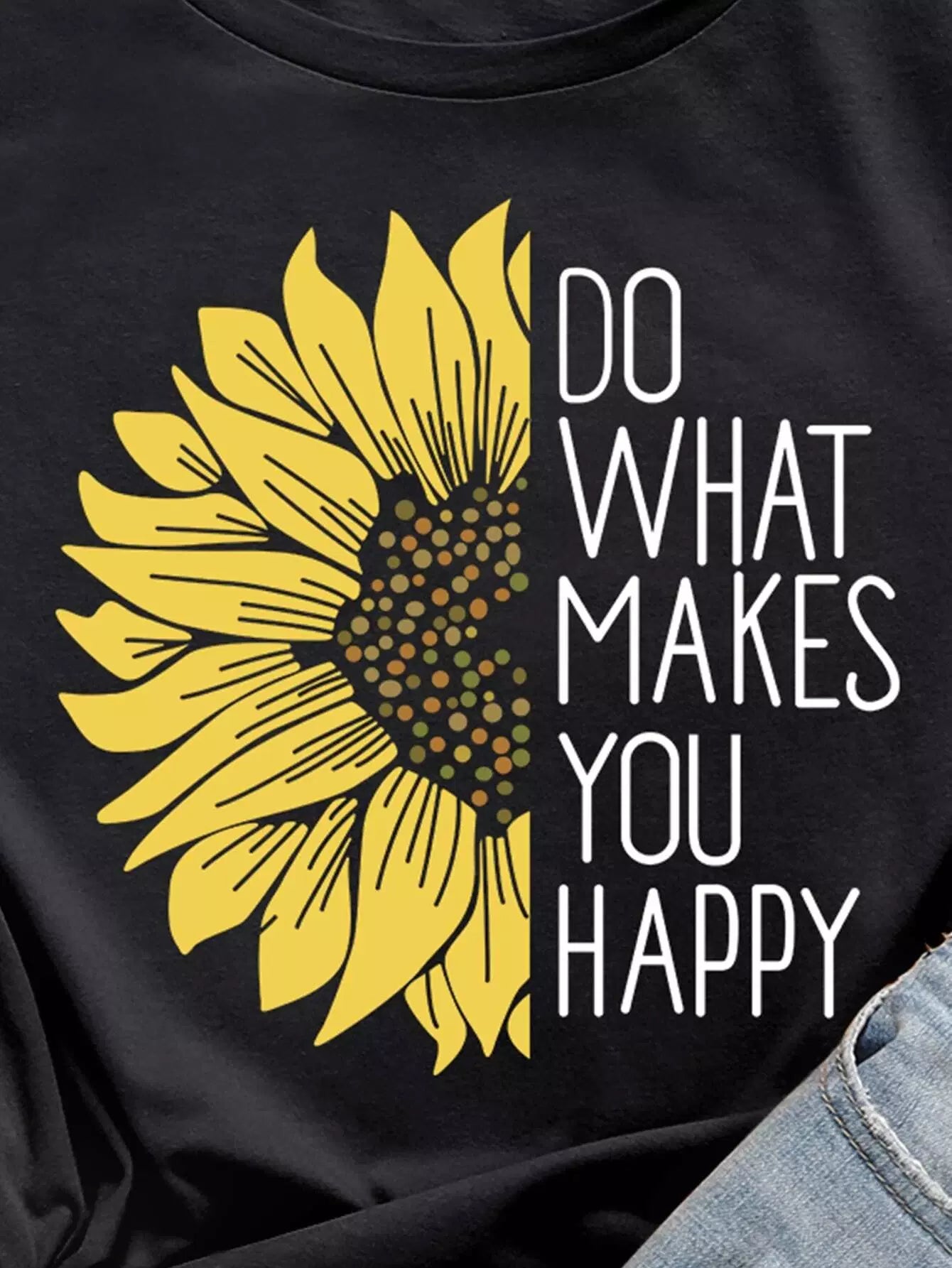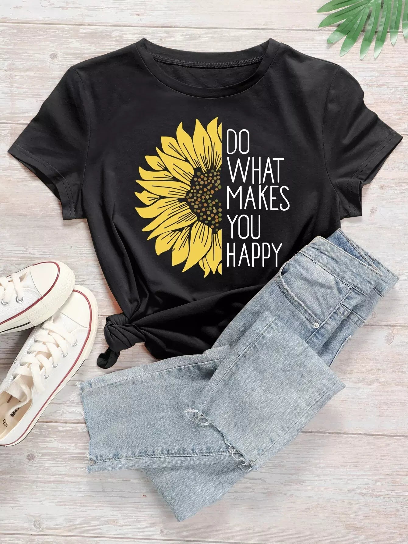 تي شيرت زهرة دوار الشمس وشعار زائد جرافيك