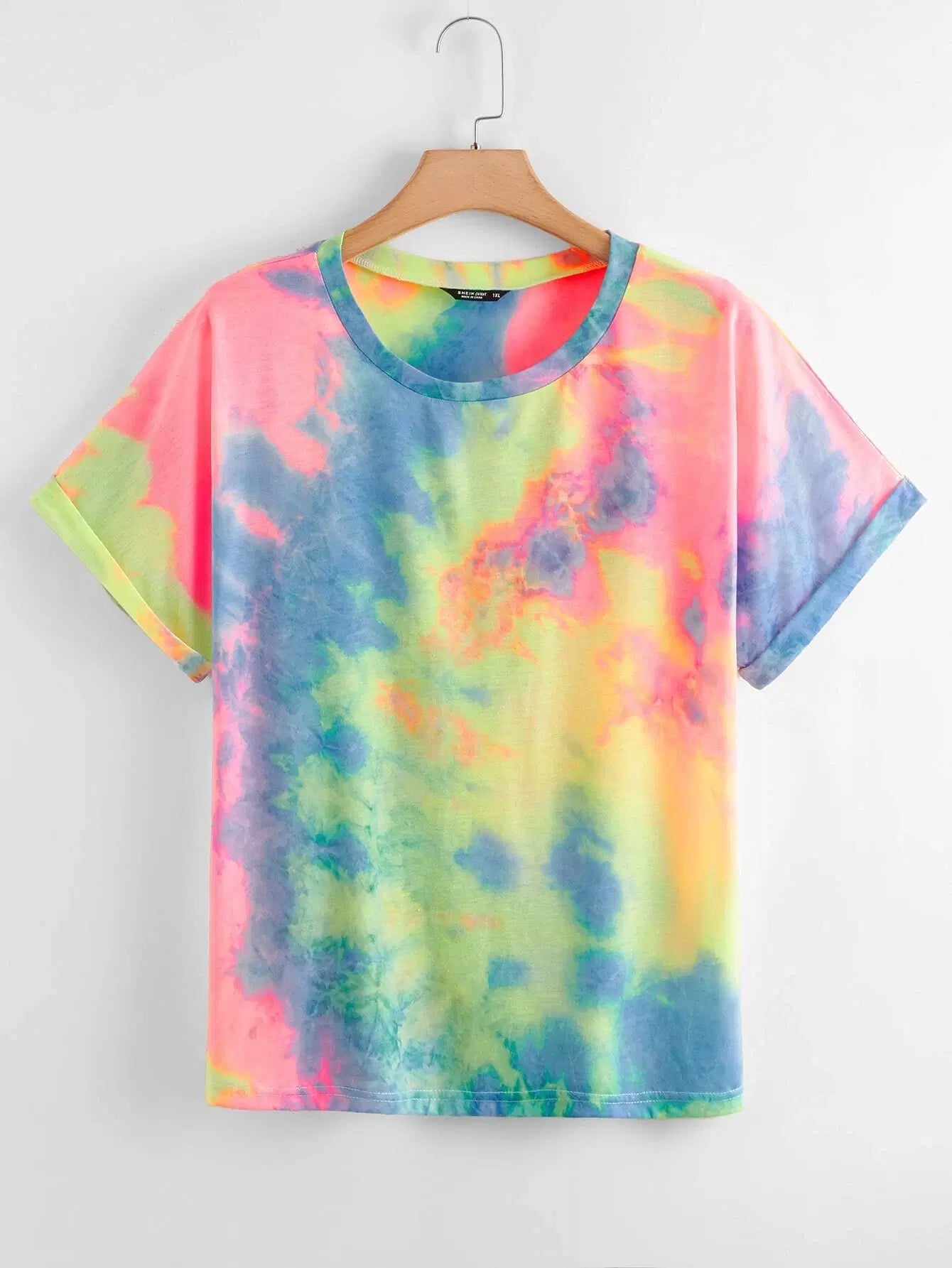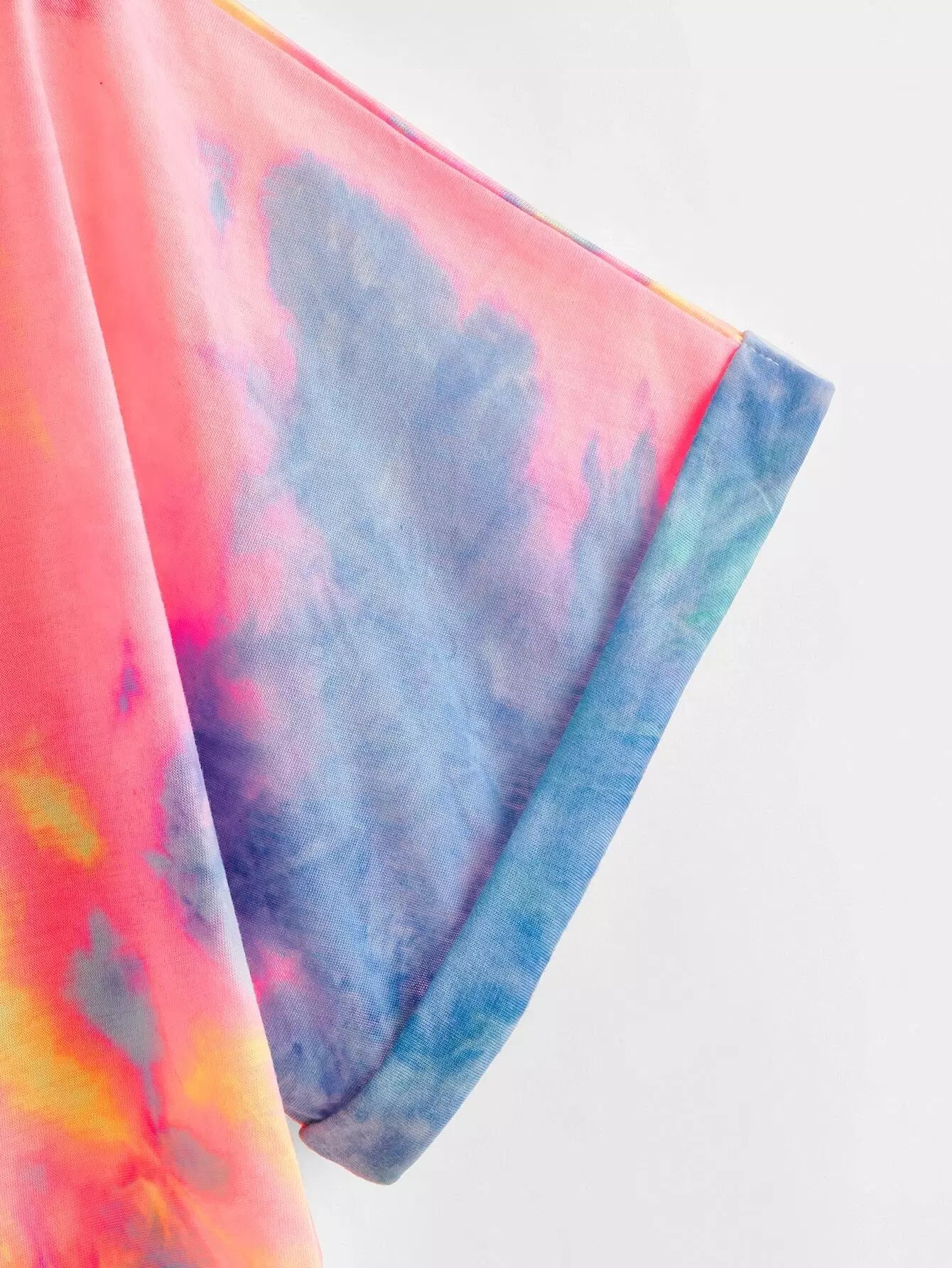 تي شيرت برقبة مستديرة مصبوغ بربطة عنق مستديرة