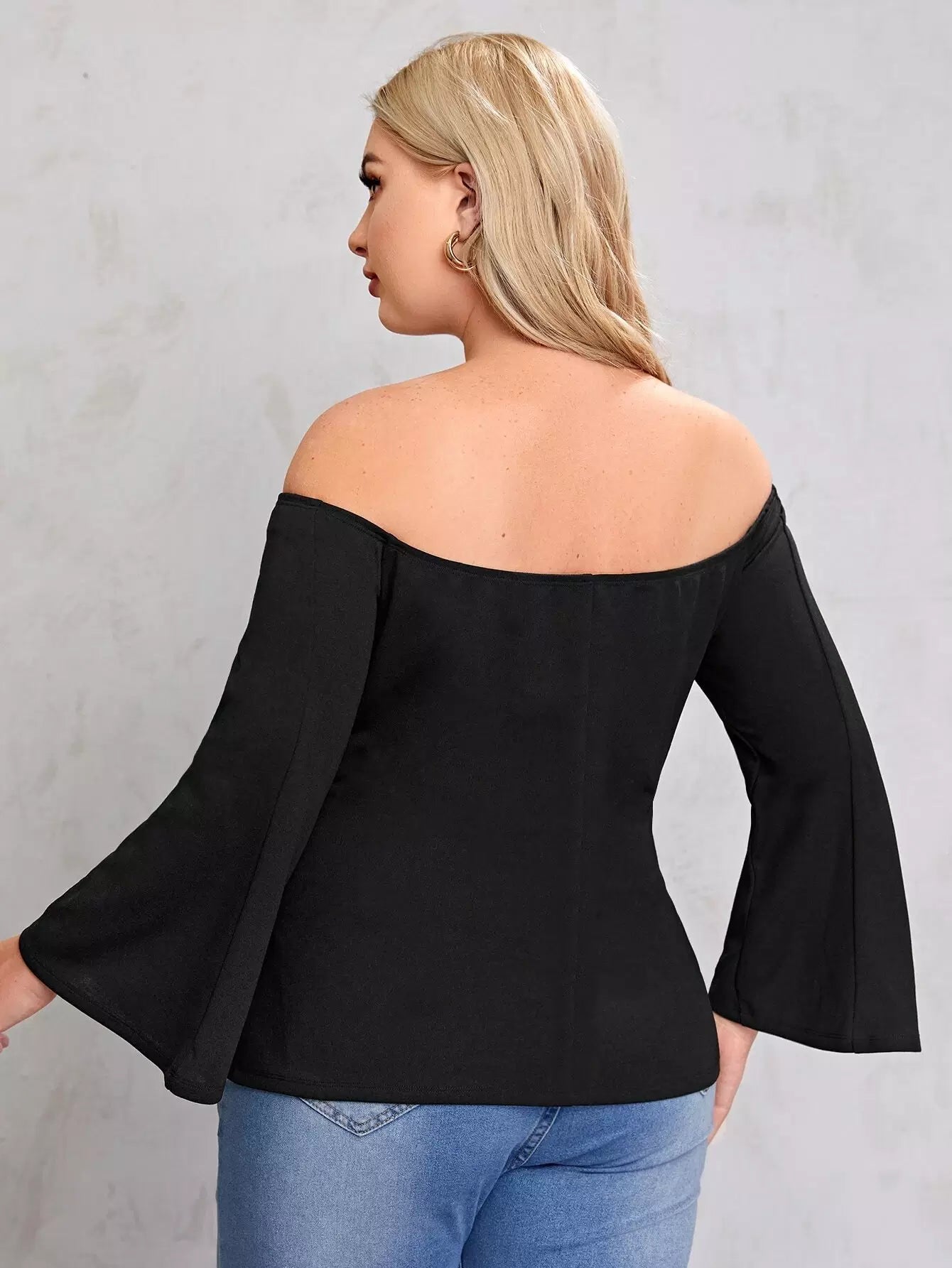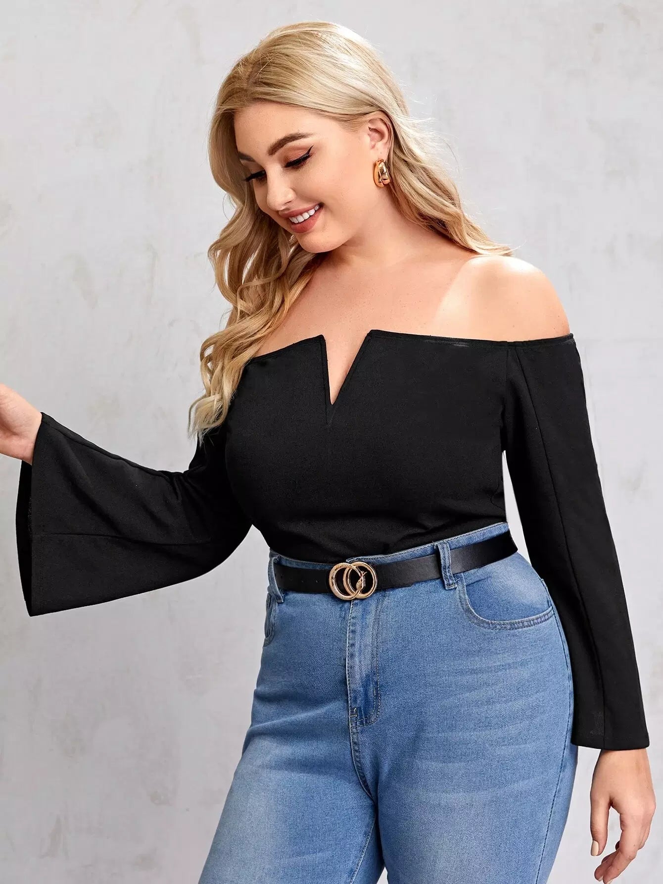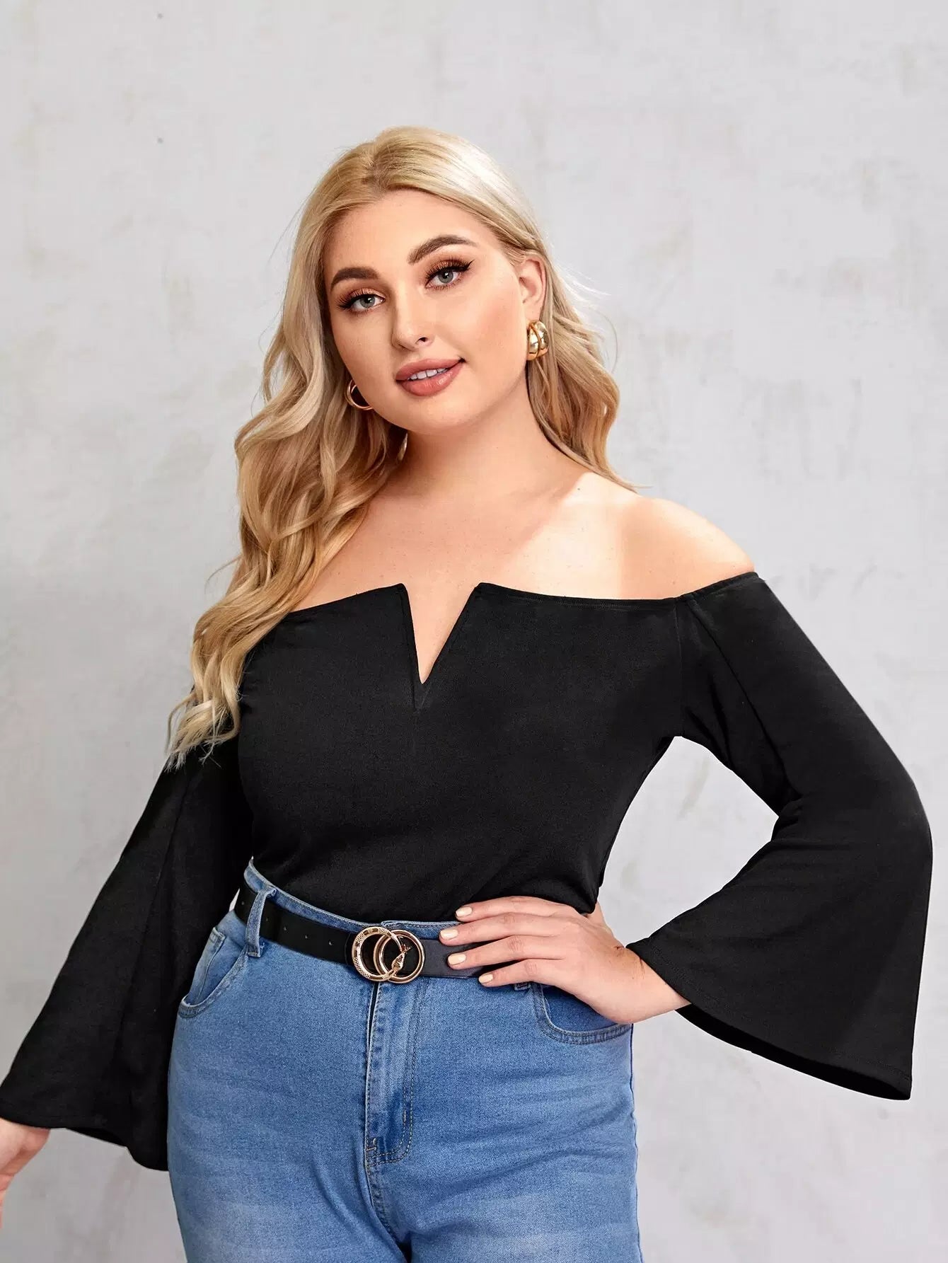 بلوزة باردو بأكمام على شكل حرف V بأكمام على شكل حرف V