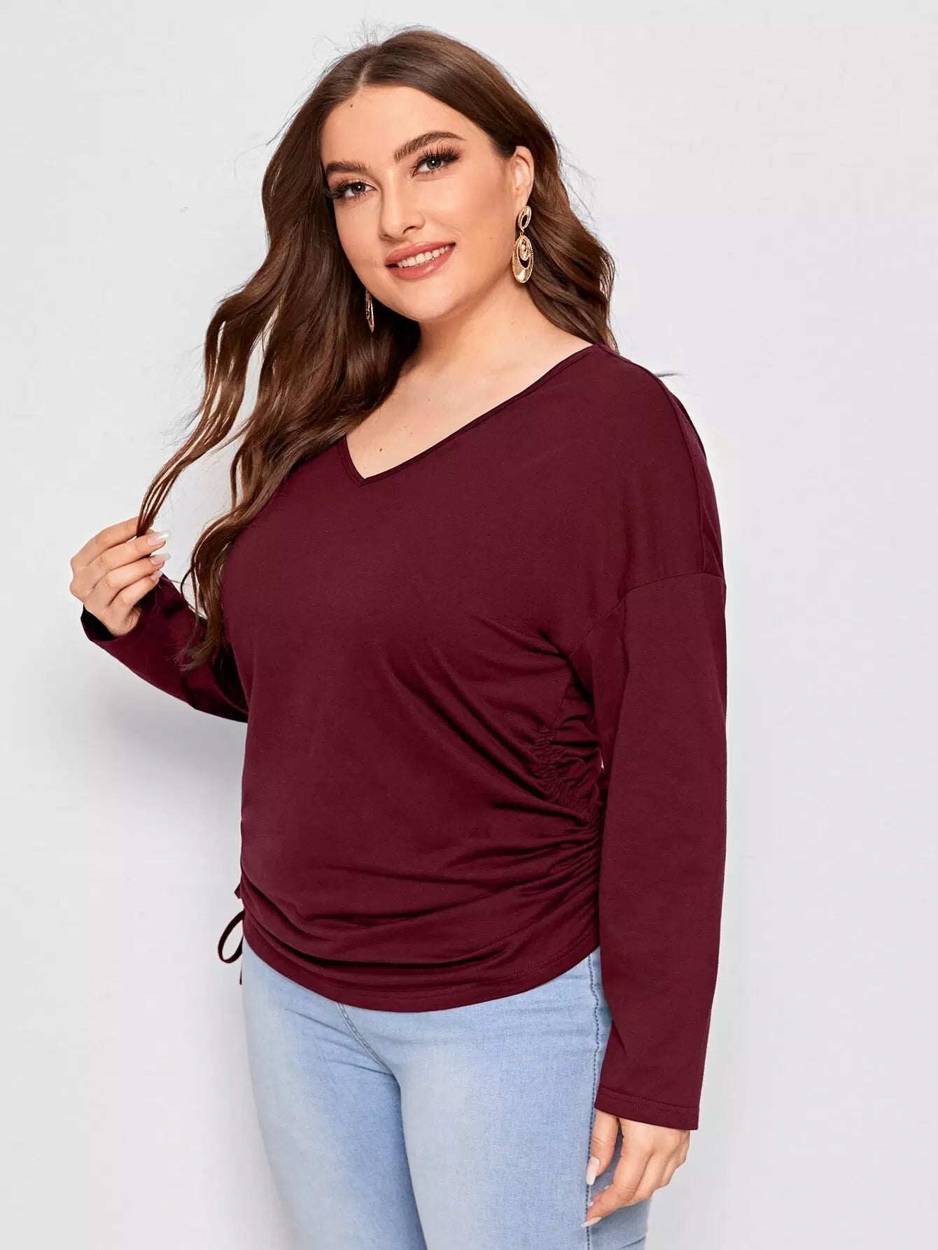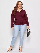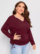 تي شيرت سادة على شكل حرف V برقبة على شكل حرف V ورباط جانبي سادة