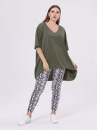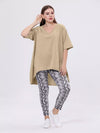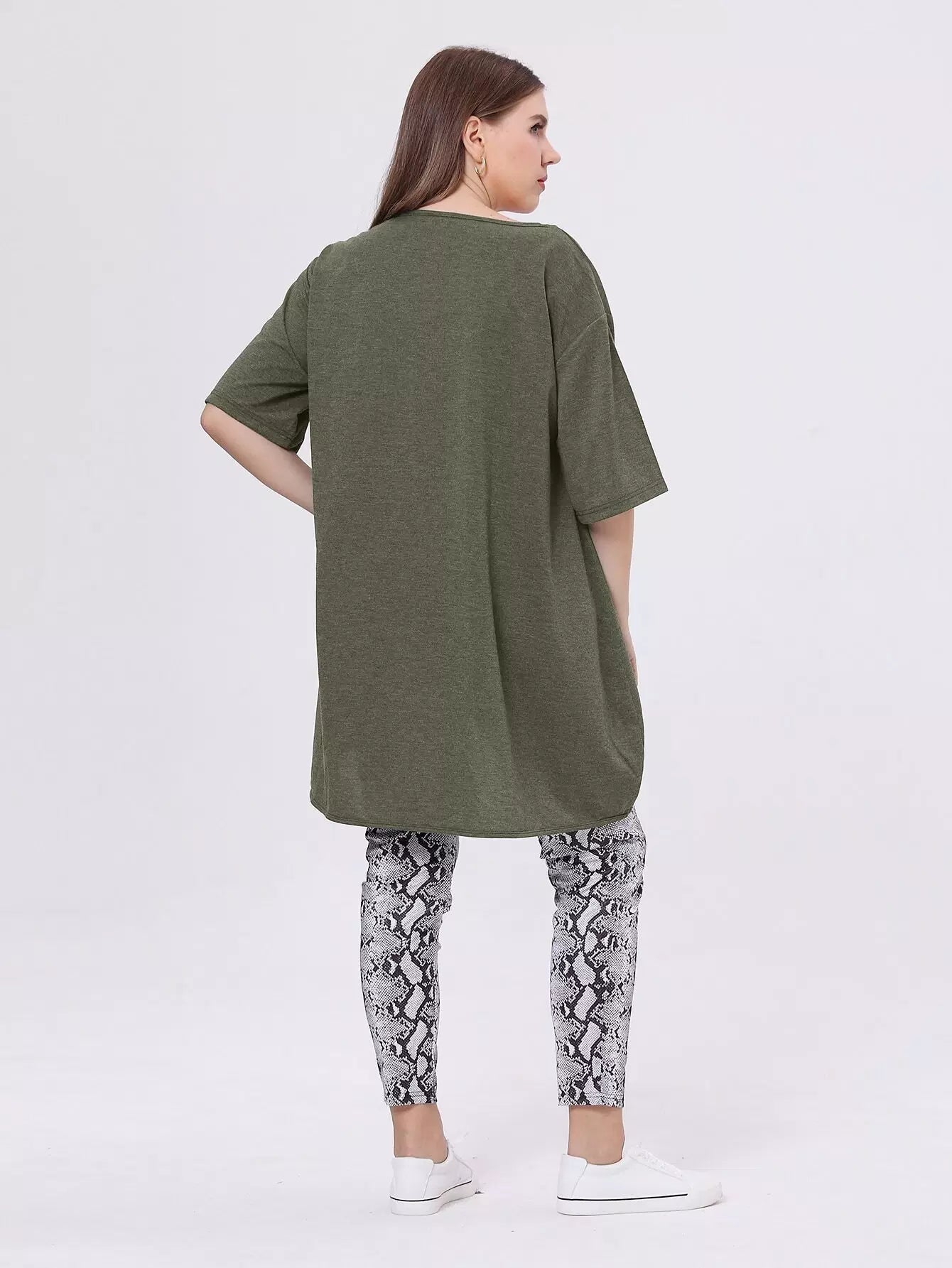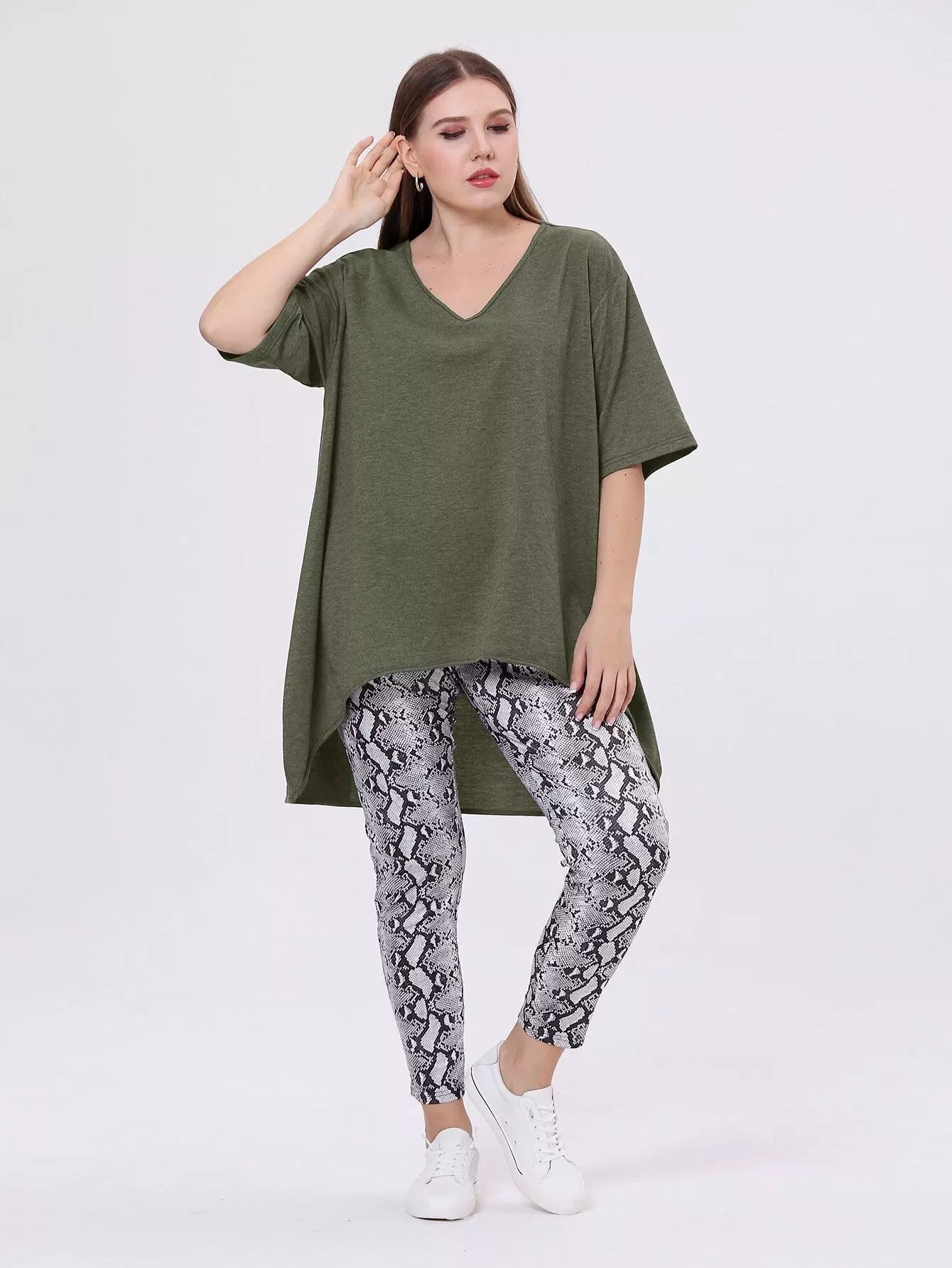 نحيف - مقاس كبير تي شيرت طويل ذو رقبة على شكل حرف V عالي ومنخفض