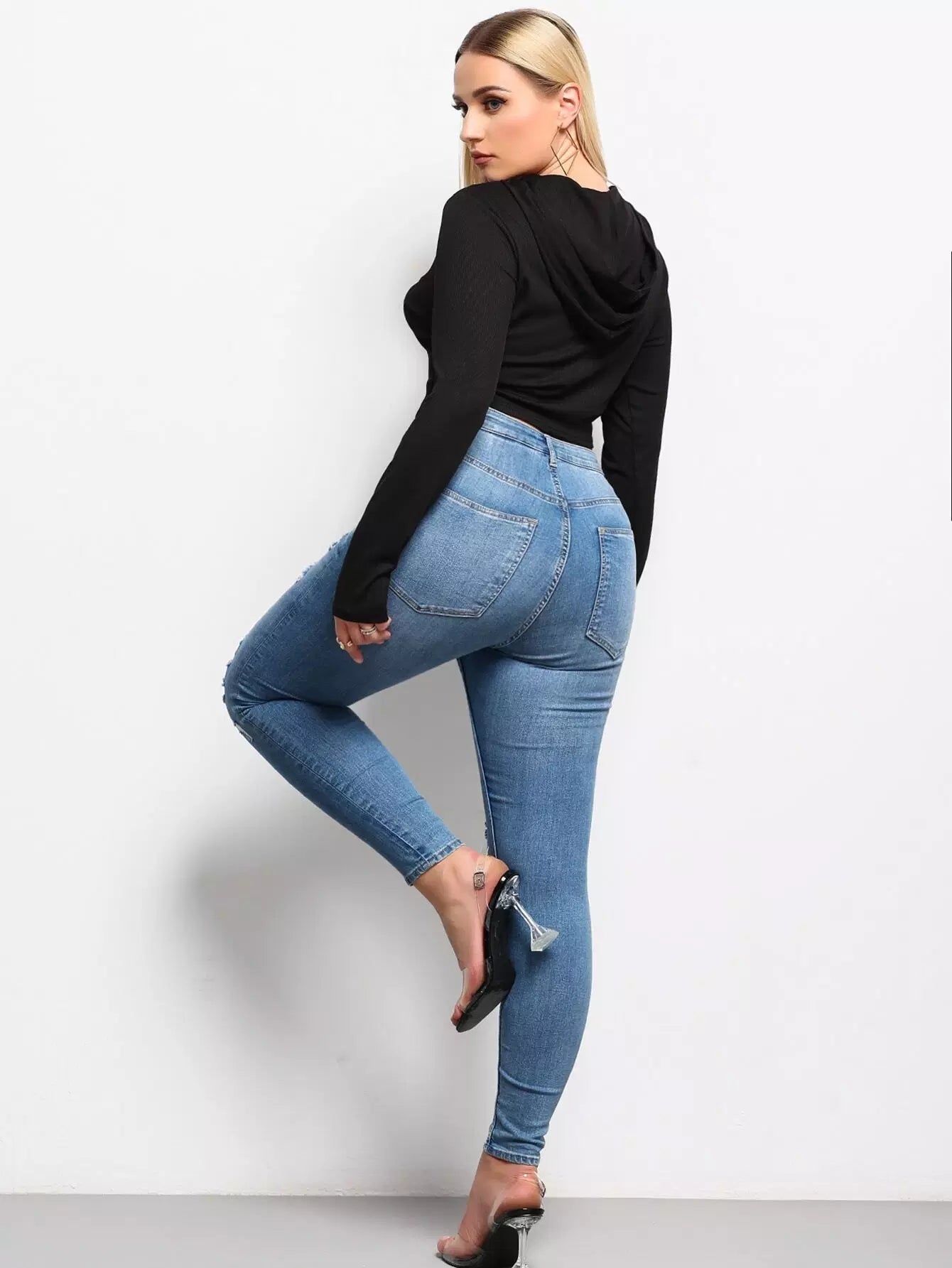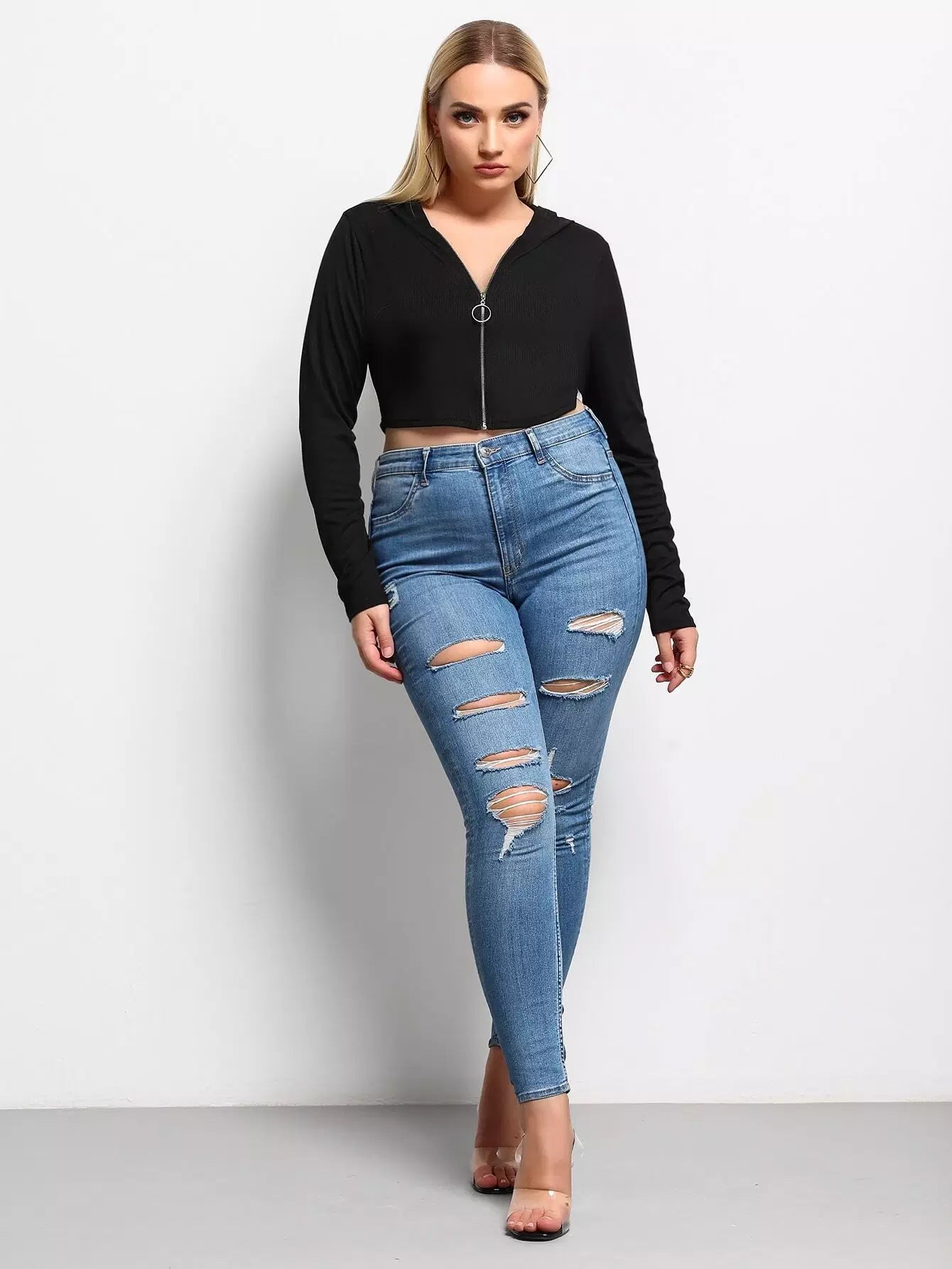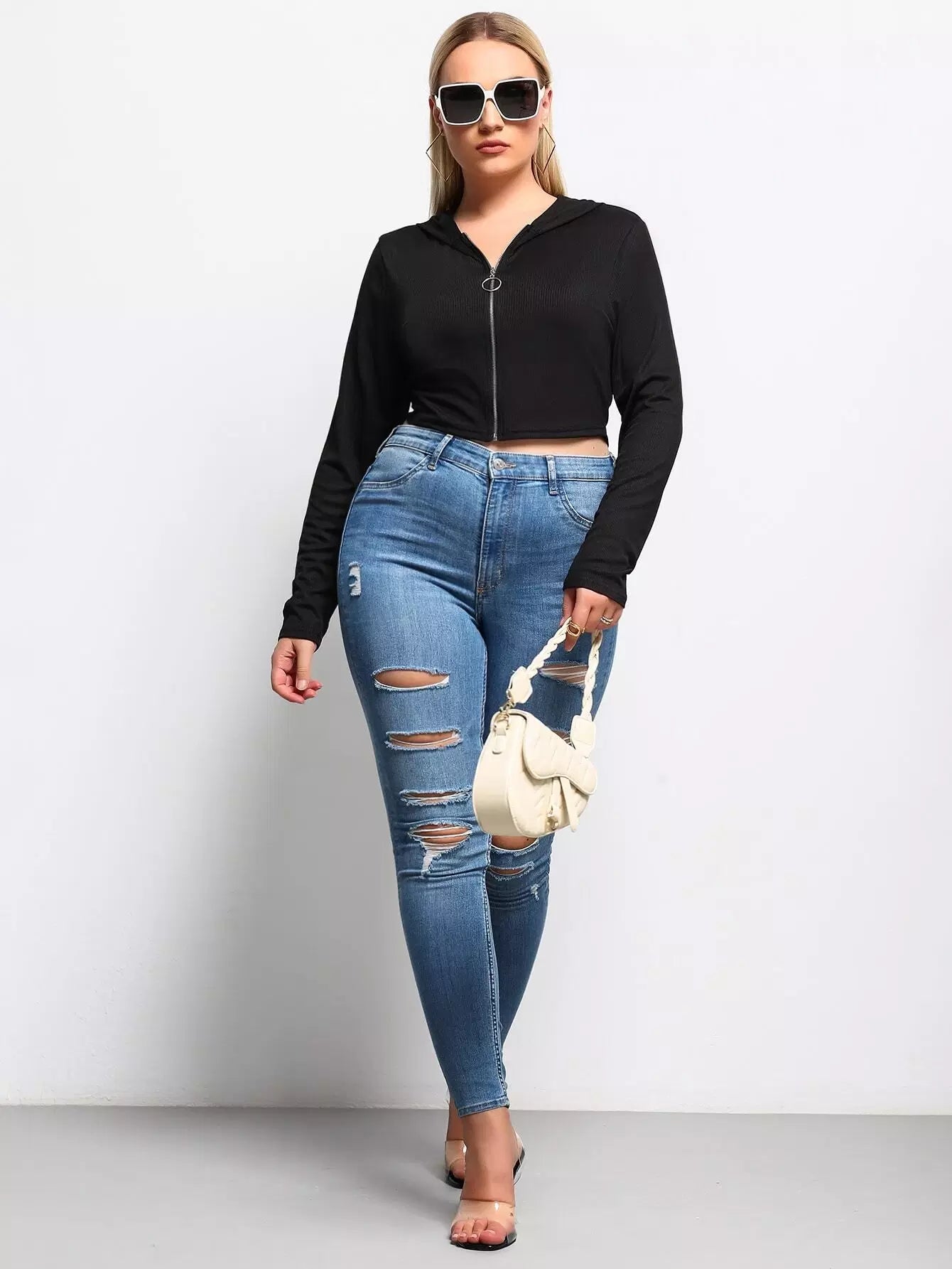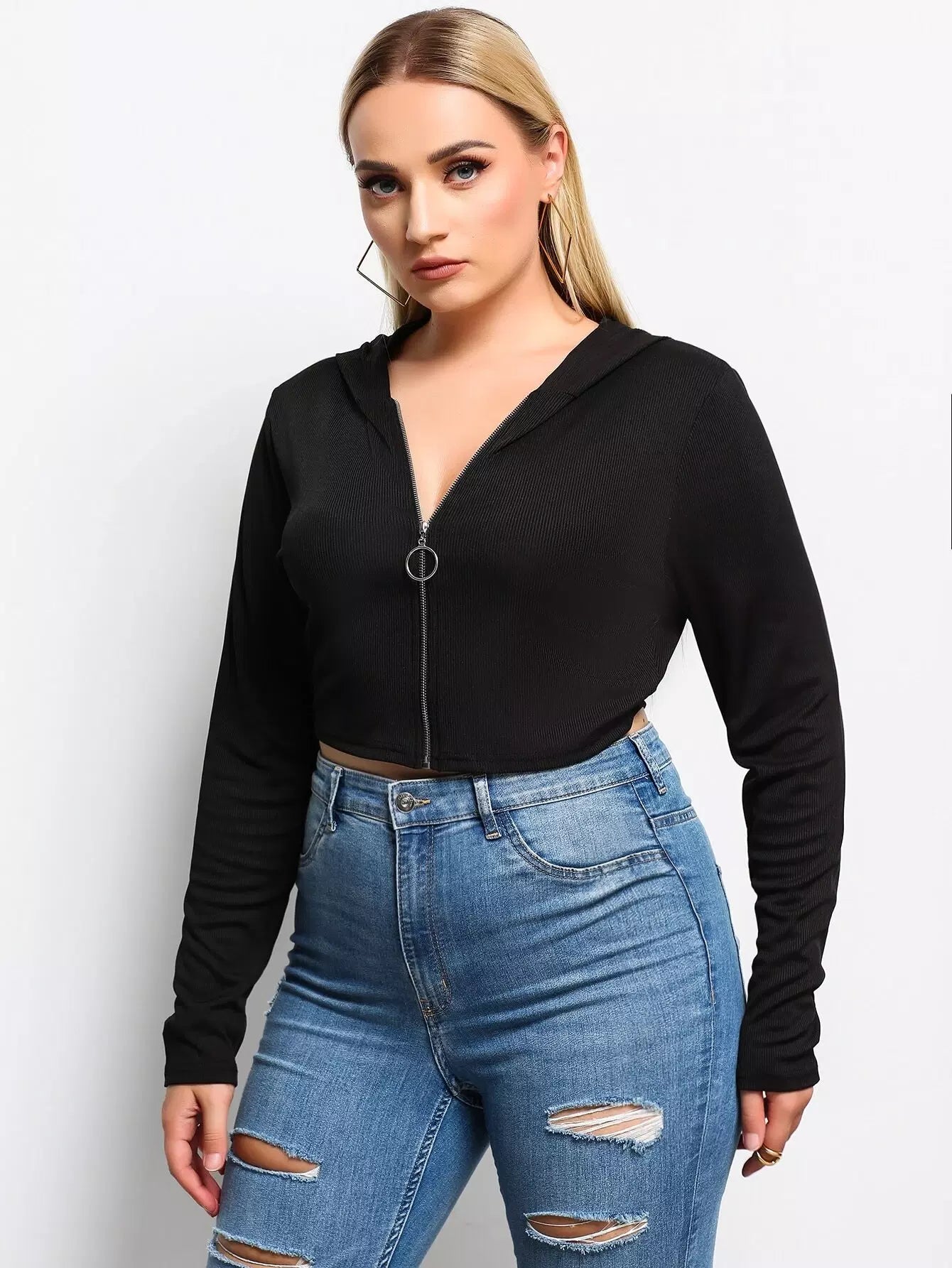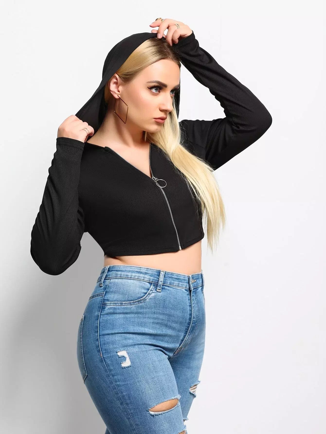 بلوزة بقلنسوة بسحّاب أمامي بلاس