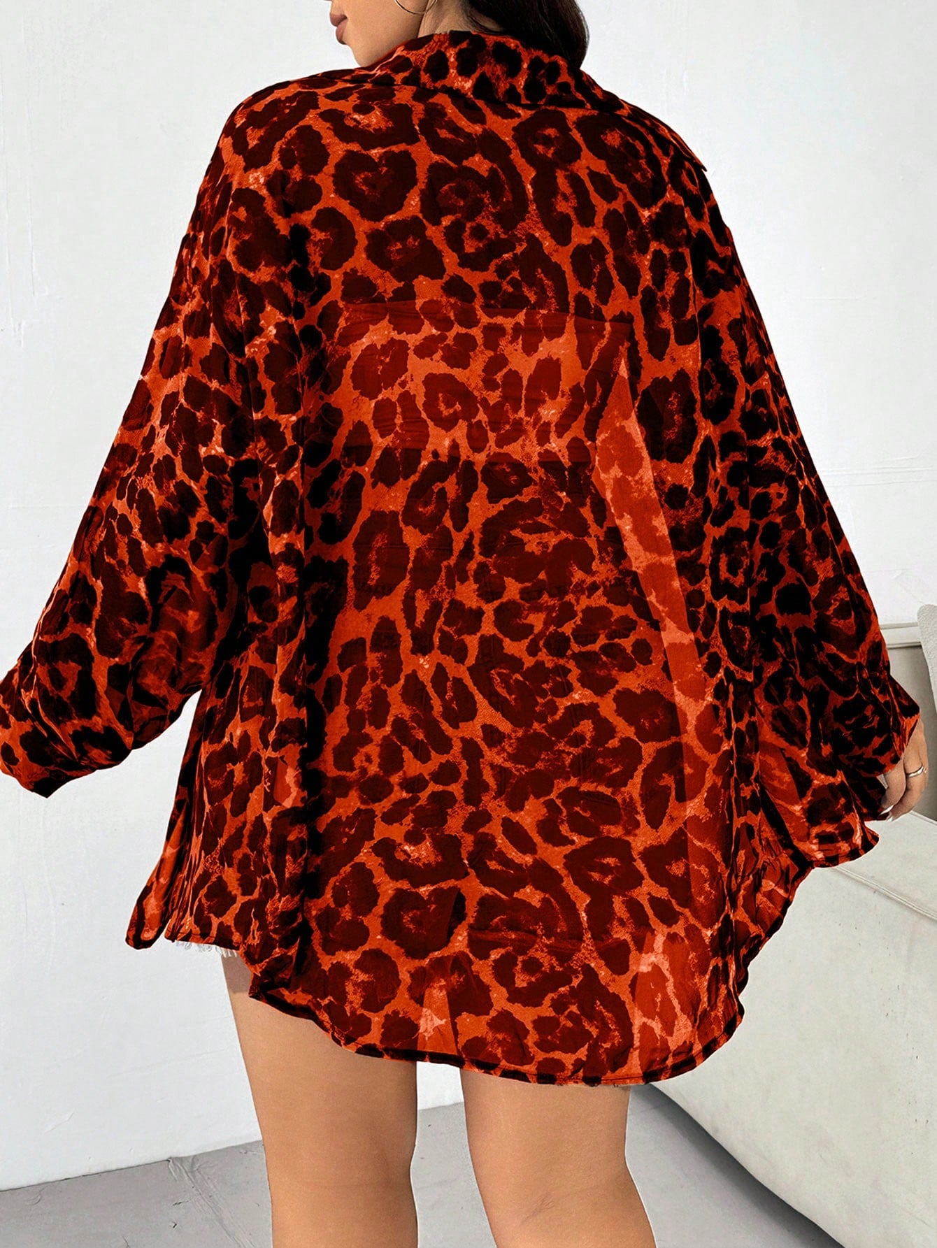 SHEIN EZwear Plus Size Women Leopard Print Long Sleeve Button-Front Loose Casual Shirt, Autumn
