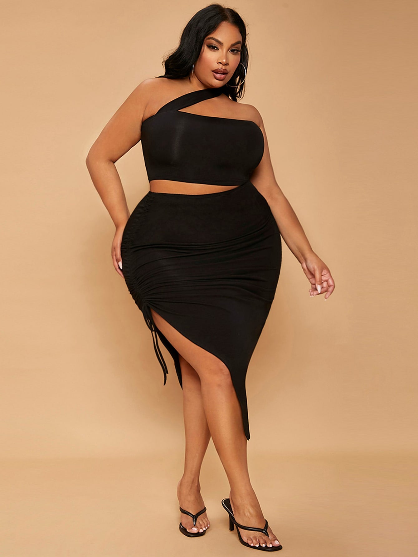 women Alondra & Evelyn X SHEIN Plus Asymmetrical Strap Crop Top