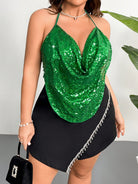 women Firerie Plus Size Sequin Mermaid Neck Spaghetti Strap Cami Tank Top