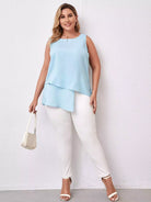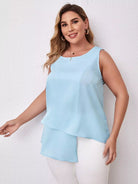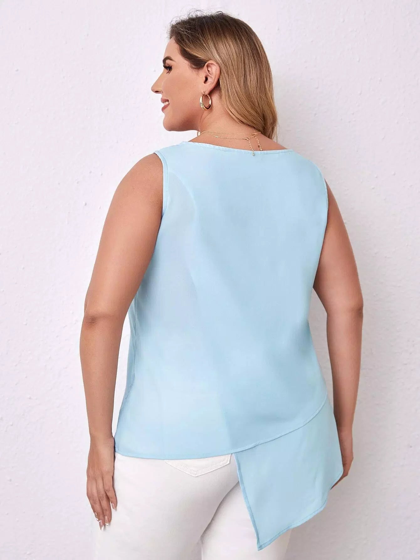 بلوزة بحافة غير متماثلة بحاشية غير متماثلة سادة