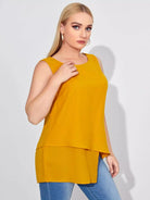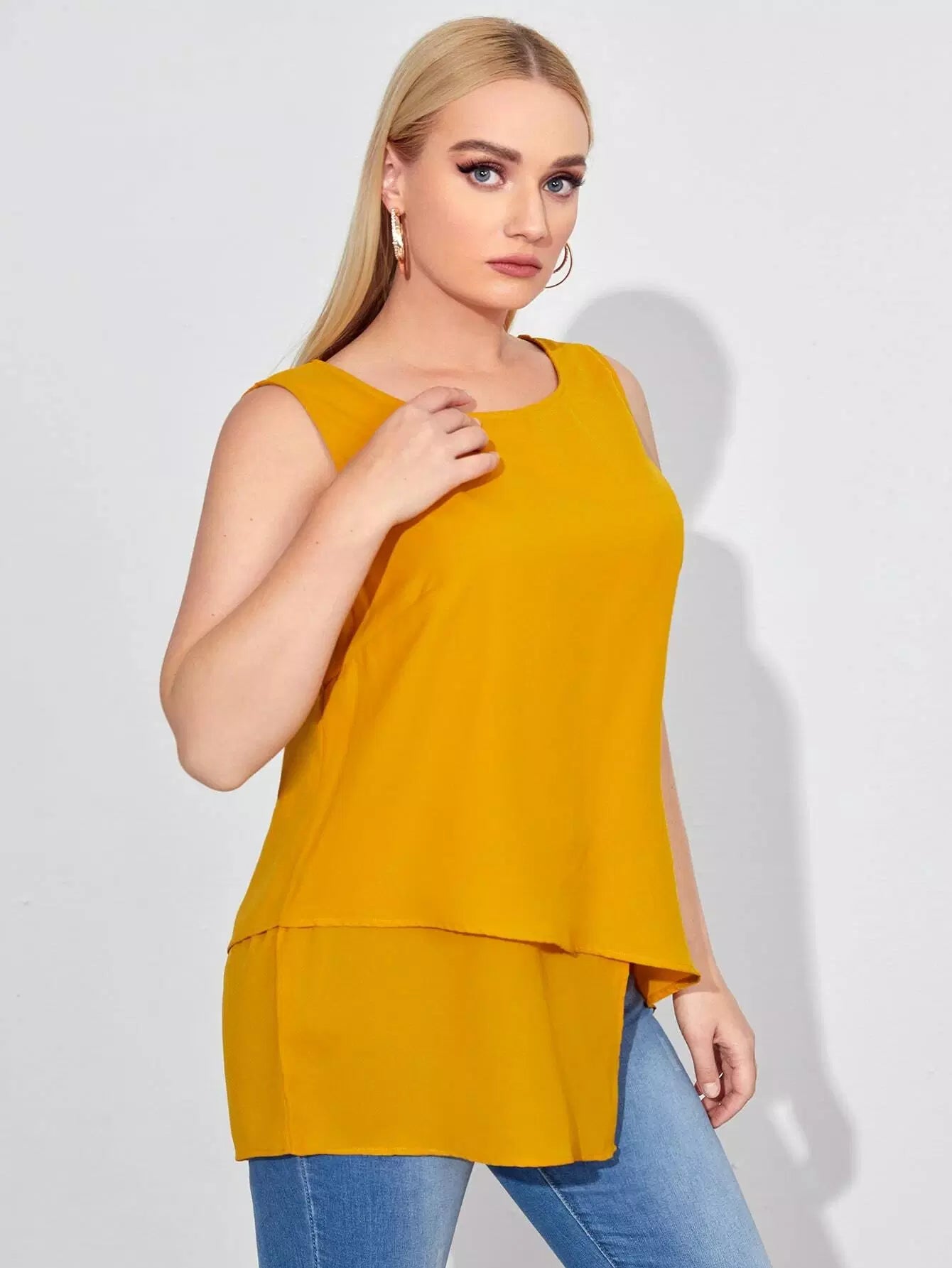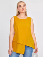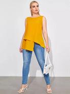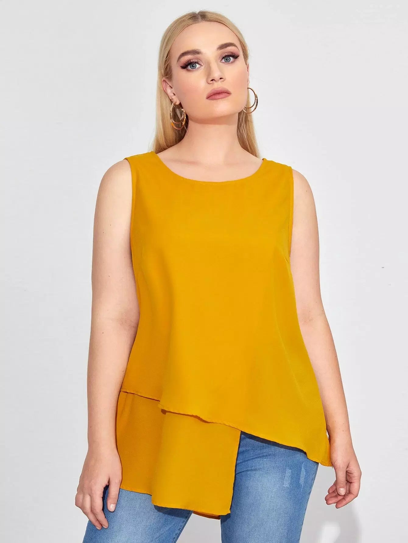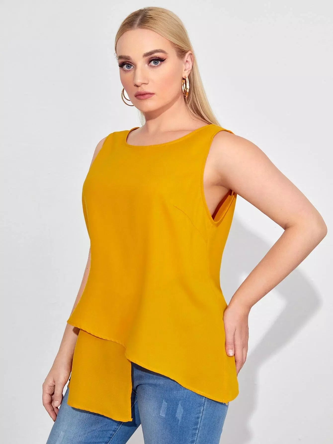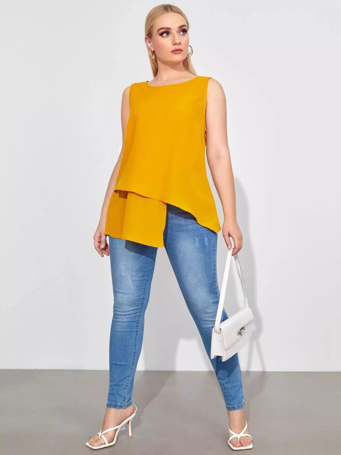 بلوزة بحافة غير متماثلة بحاشية غير متماثلة سادة