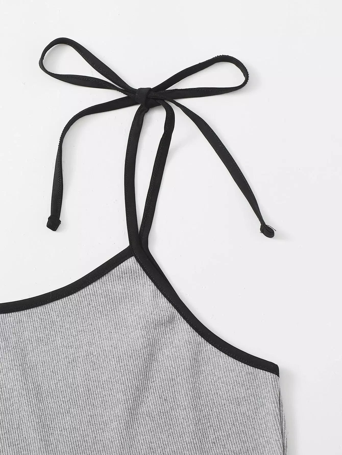 بلوزة برقبة قصيرة بفتحة على شكل عقدة ملزمة
