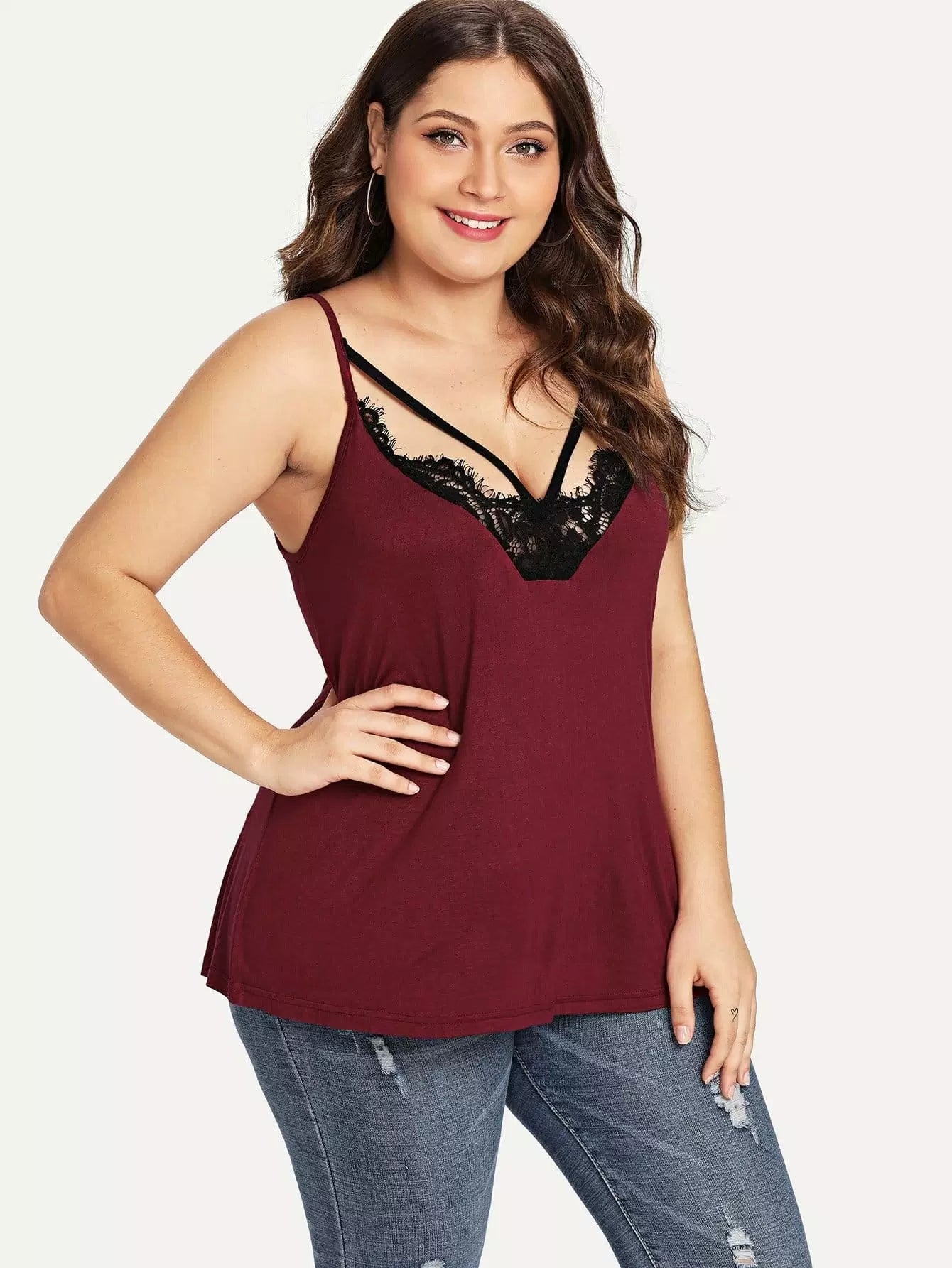 بلوزة دانتيل كاميه بلون مغاير زائد