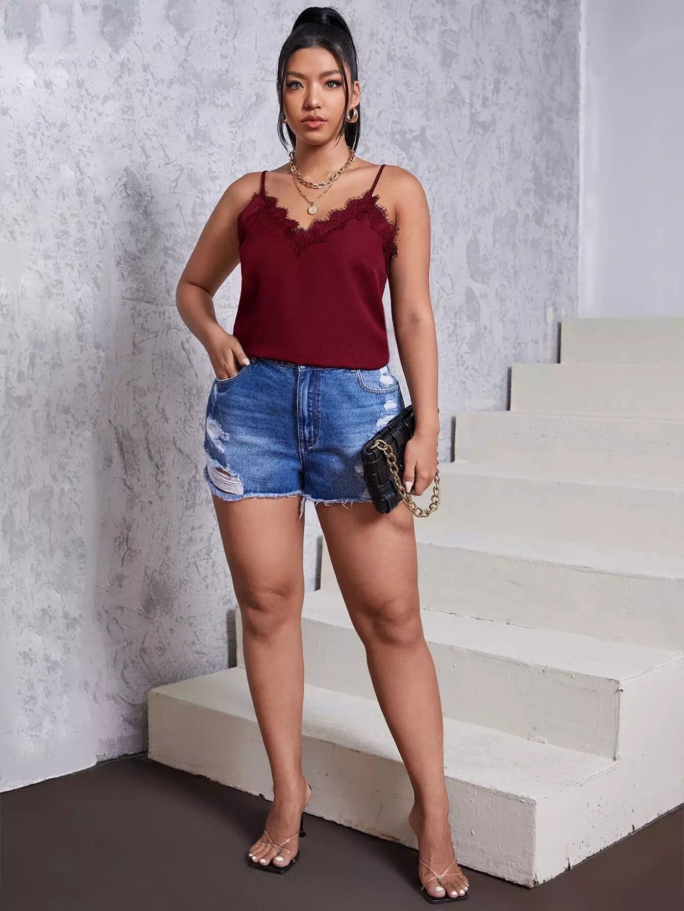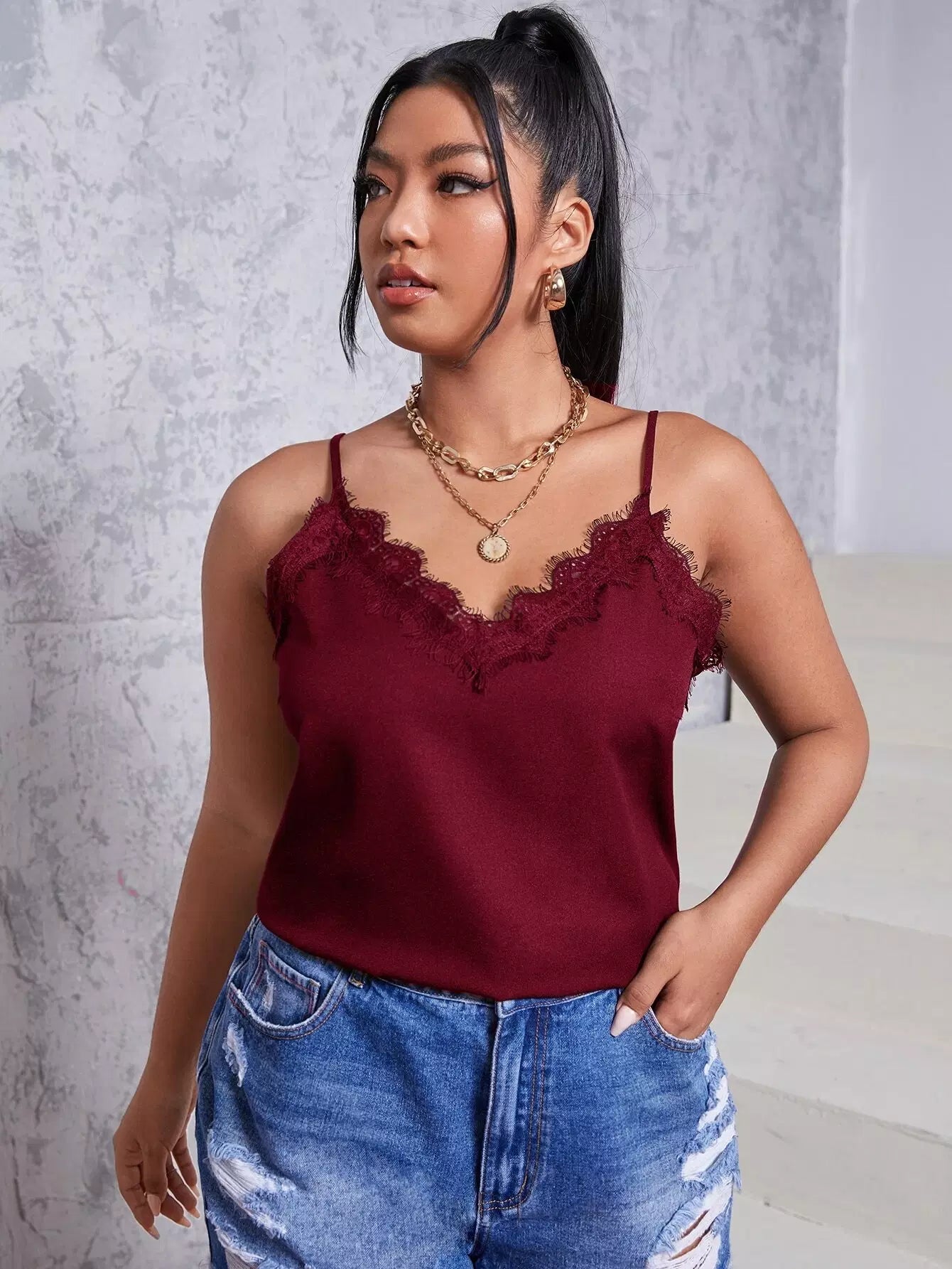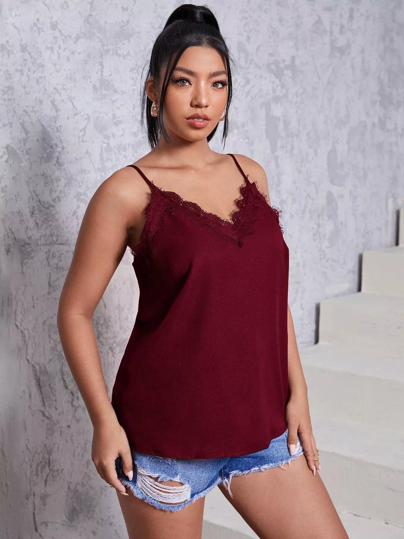 بلوزة بدون أكمام دانتيل سادة بلون مغاير