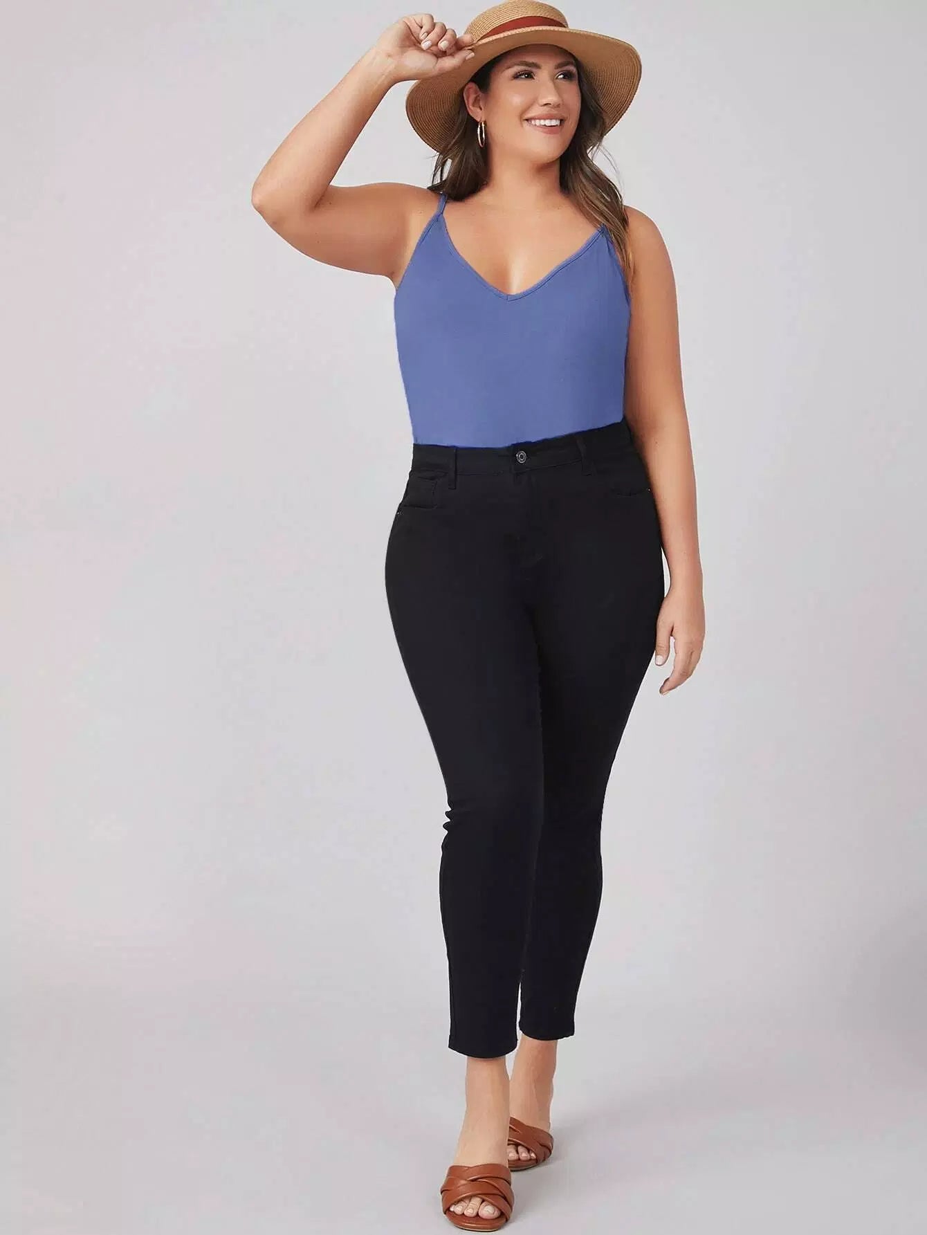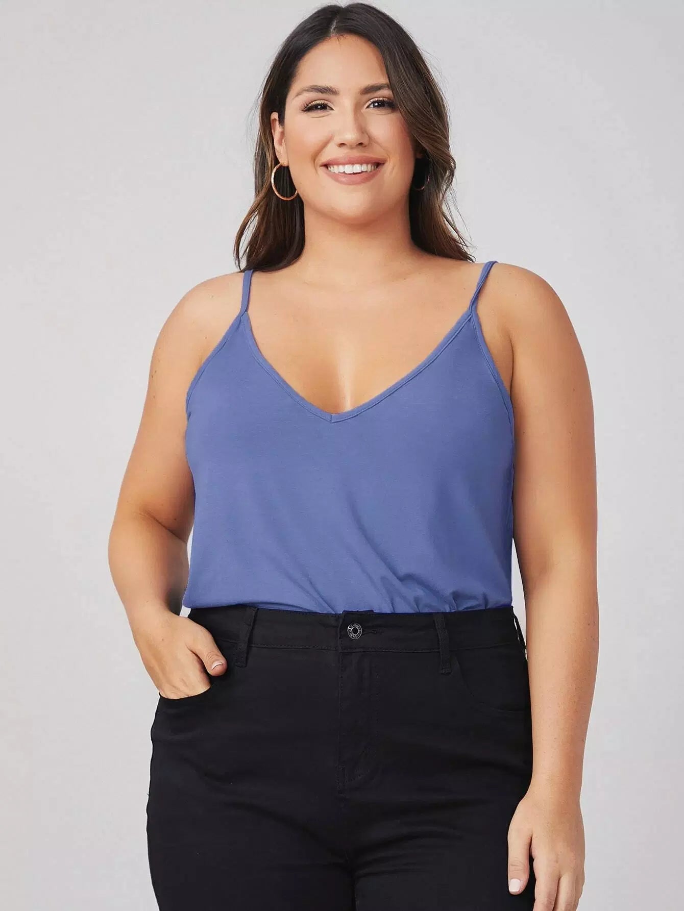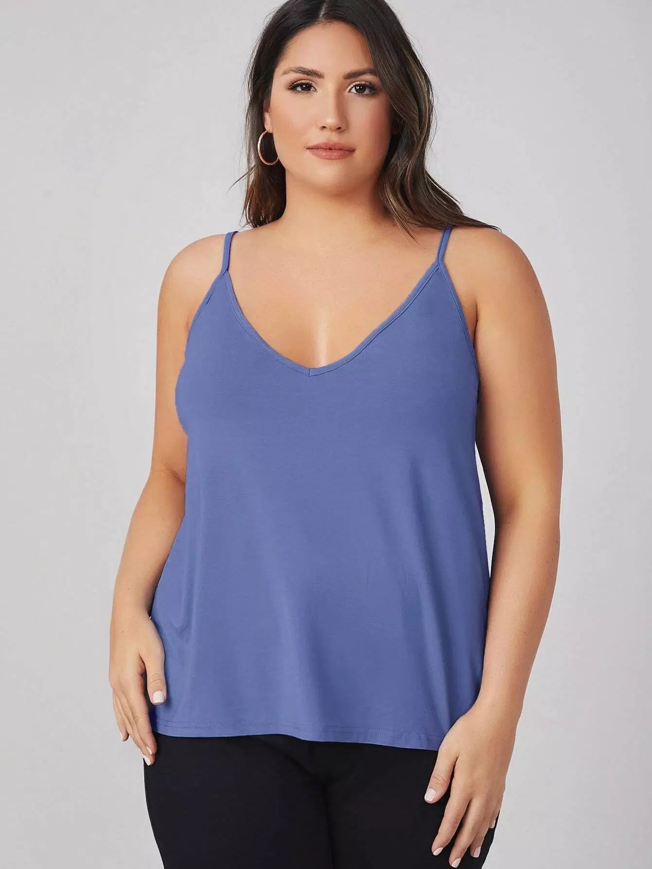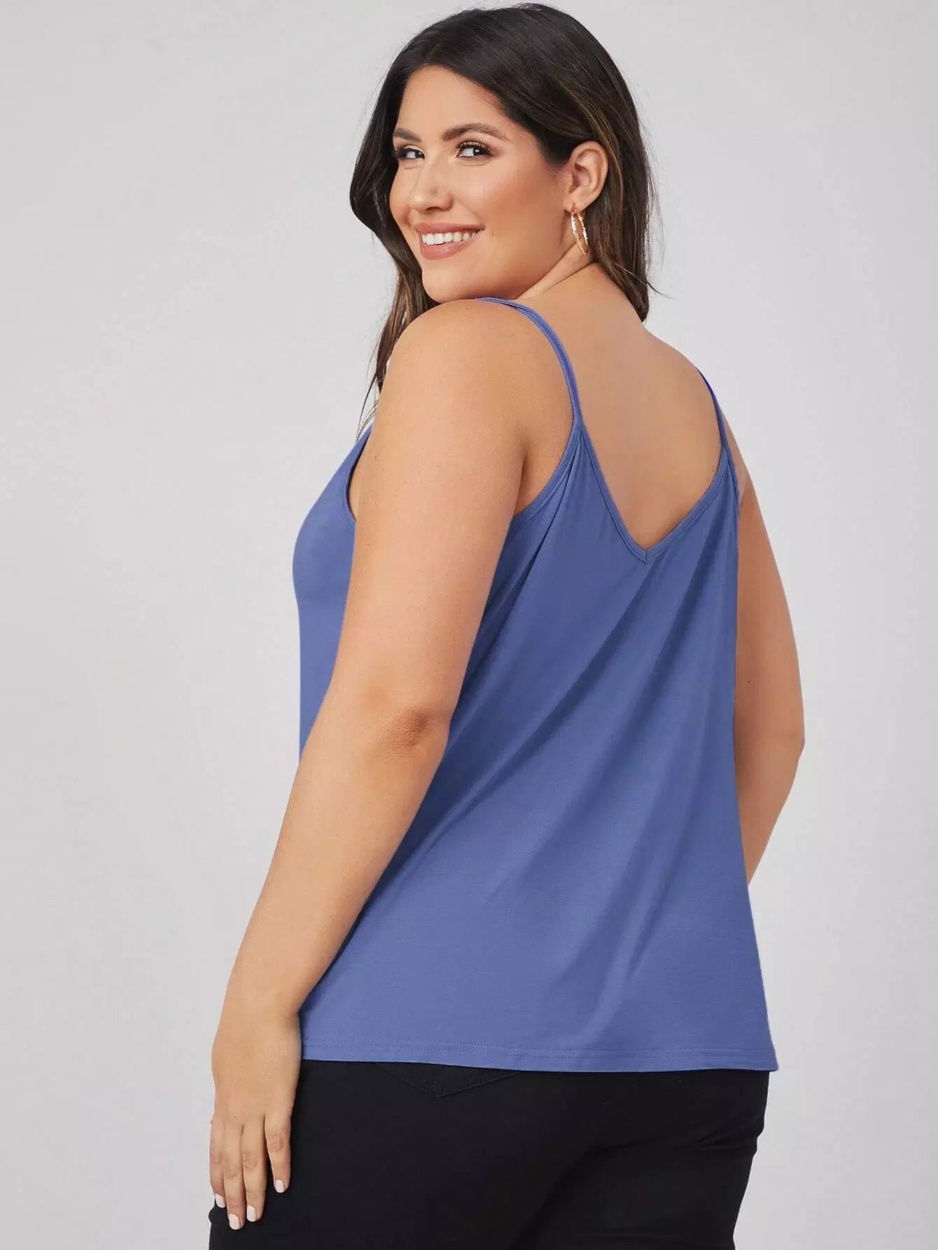 بلوزة قطنية سادة بياقة مزدوجة على شكل V برقبة مزدوجة زائد
