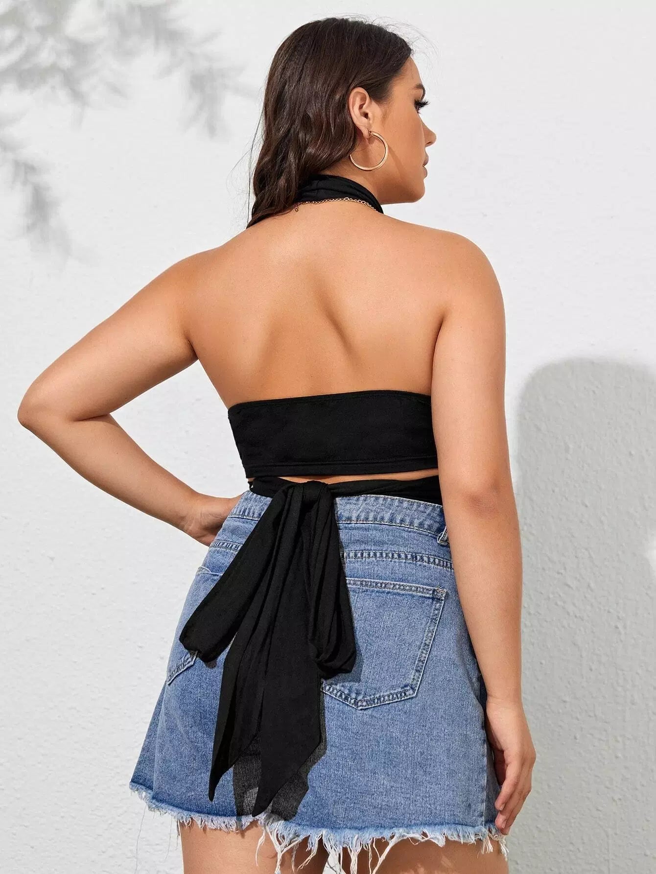 بلوزة بدون رباط ظهر بربطة عنق متقاطعة بلس بلس